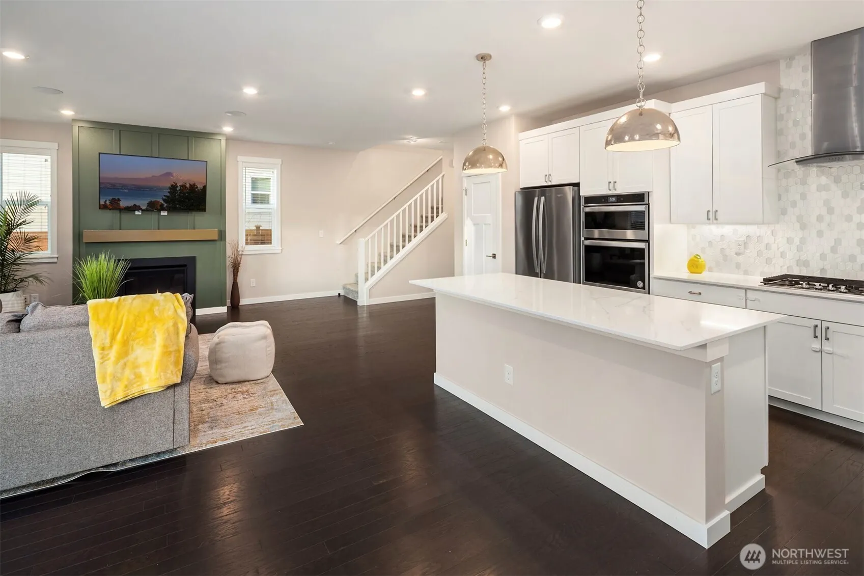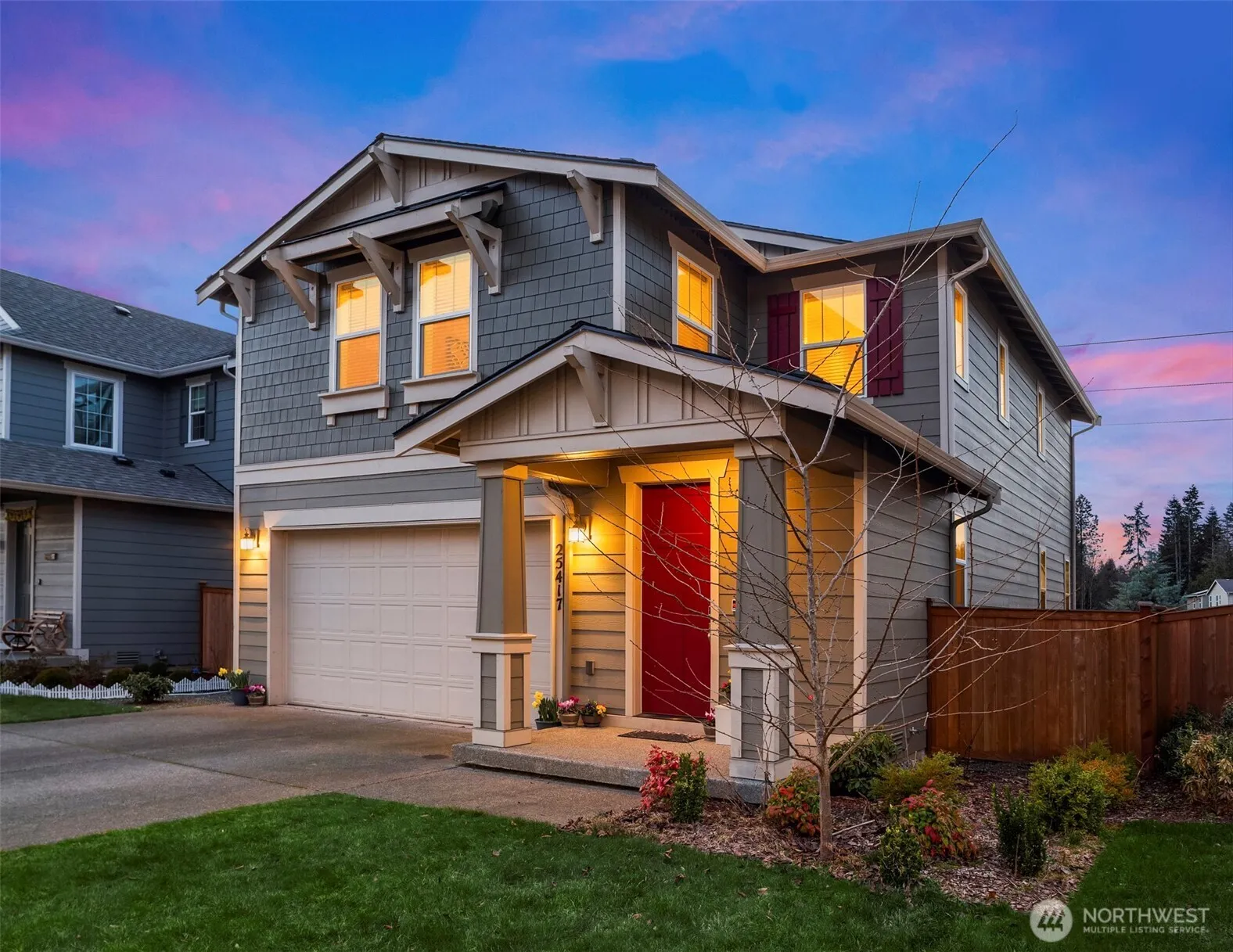 Discover this incredibly beautiful KB home with over 100k in upgrades. The original model home, where luxury and functionality seamlessly combine. The chef-inspired kitchen is a standout, featuring a gas cooktop, wall-mounted microwave/oven, range hood, under-cabinet lighting, and tall cabinets. It flows effortlessly into the family room with a gas fireplace and dining area. Step outside to a west-facing extended covered patio, perfect for sunset views, with charming cafe lights, and manual pull shades for added comfort. Upstairs, the spacious master suite boasts in-ceiling speakers, a soaking tub and a walk-in closet with upgraded closet system. The garage is enhanced with epoxy floors, finished walls and built in racks for convenience.