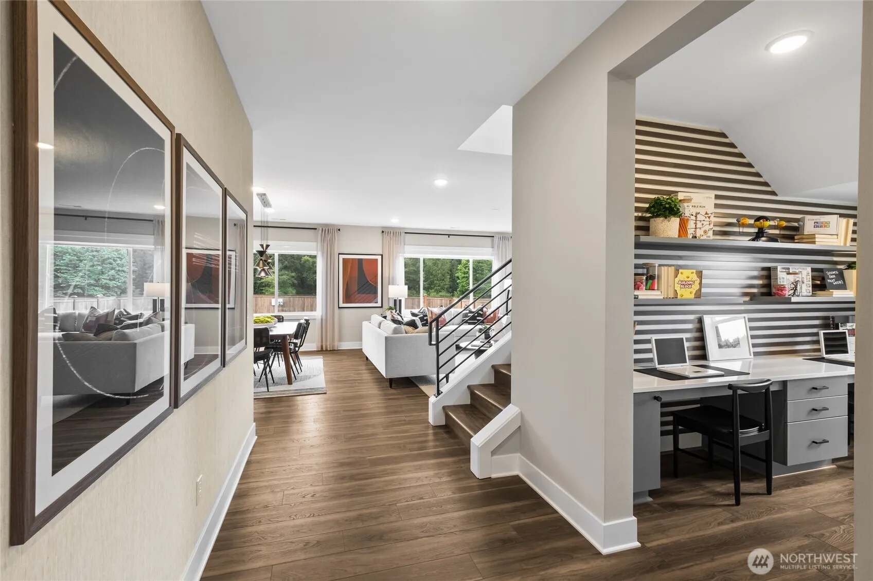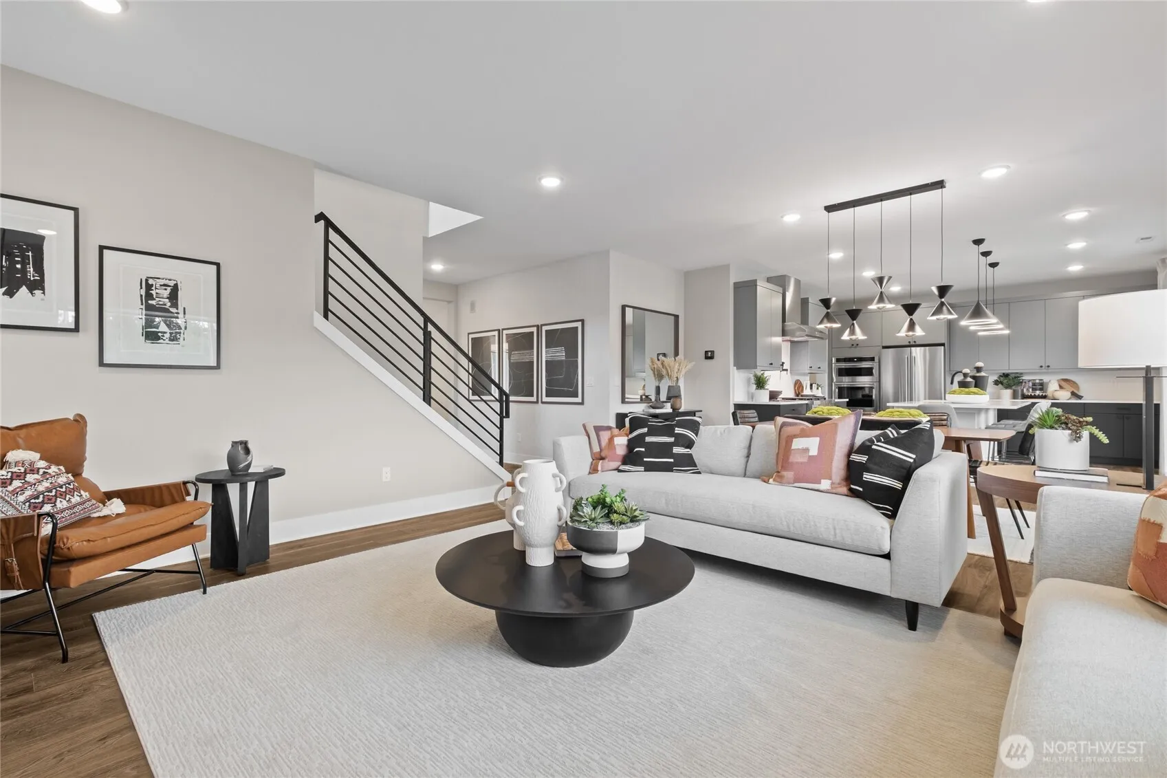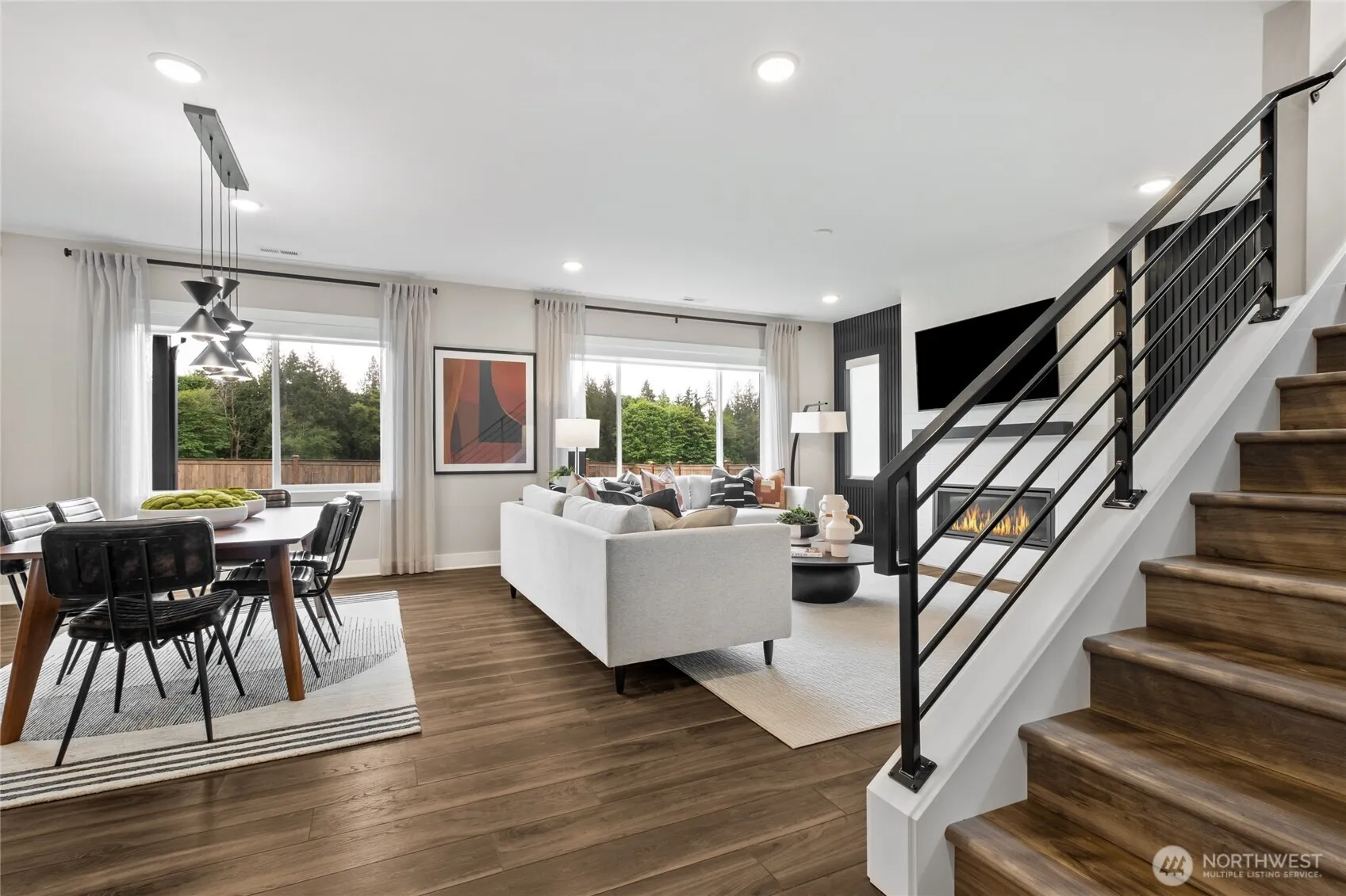 STUNNING MODEL HOME with spacious backyard backing to an open space! Open-concept main floor features an office space & elegant 9′ ceilings, leading to a striking black metal rail staircase. Spacious layout includes 4 bedrooms, & versatile loft. Primary suite boasts a generous walk-in closet, while the kitchen showcases quartz countertops & soft-close cabinets. Fabulous designer features throughout the home that are show stopping! This smart home is equipped with EV charger, smart switches, Ring doorbell, and Eero system, with gorgeous designer lighting throughout. All appliances included, making this home move-in ready! Don’t miss out!*Broker must accompany & personally register buyer at first visit* Home can close in late June.