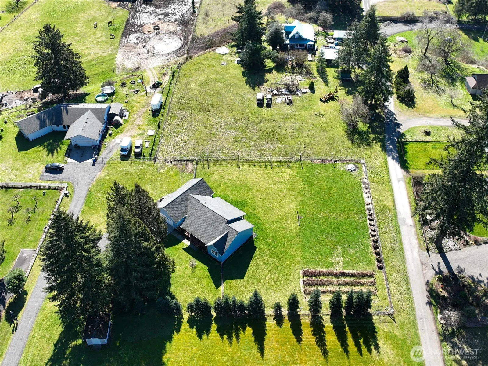 Pristine one level NW Contemporary home on 1.02 acres in a desirable Castle Rock location. Beautiful home boasting 1,880 SF, 3 bedrooms, 2.5 bathrooms, open concept living w/vaulted ceilings, light and bright living room & dining room w/luxury vinyl floors & French Doors to cozy covered deck, spacious kitchen w/oak cabinetry-center island-eating bar-tile countertops, large primary bedroom-ensuite-walk-in closet, large utility room/half bath, mud room, ceiling fans, inviting covered front entry deck, heat pump, vinyl windows and an oversized 600 SF 2 car garage. The level grounds feature RV parking, fenced back yard, abundant blue berry & raspberry bushes, huge fertile garden area, and a new private driveway to be installed before closing.