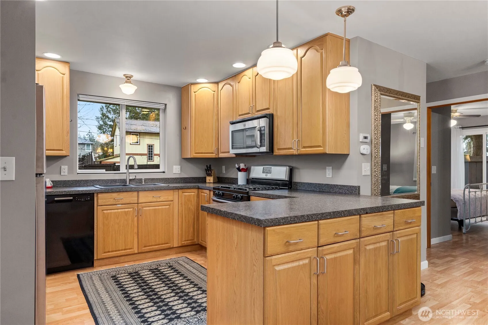 Great 1st home or downsize to one level featuring two bedrooms + one bath, perfect for comfortable living. Well-maintained w/newer appliances and plenty of cabinets, bright open spaces, and stylish laminate flooring throughout. Updated bath w/sun tube and heated floors. Step outside to a spacious, fenced backyard ideal for relaxation or entertaining. Covered parking for convenience, large storage shed and alley/gate access to flat massive yard to store your toys. New sewer hook up + huge level backyard give you potential to expand. While the home’s prime location offers easy access to shopping, dining, grocery stores, and I-405. Experience a tranquil, country feel with all the amenities just minutes away. Come check us out!