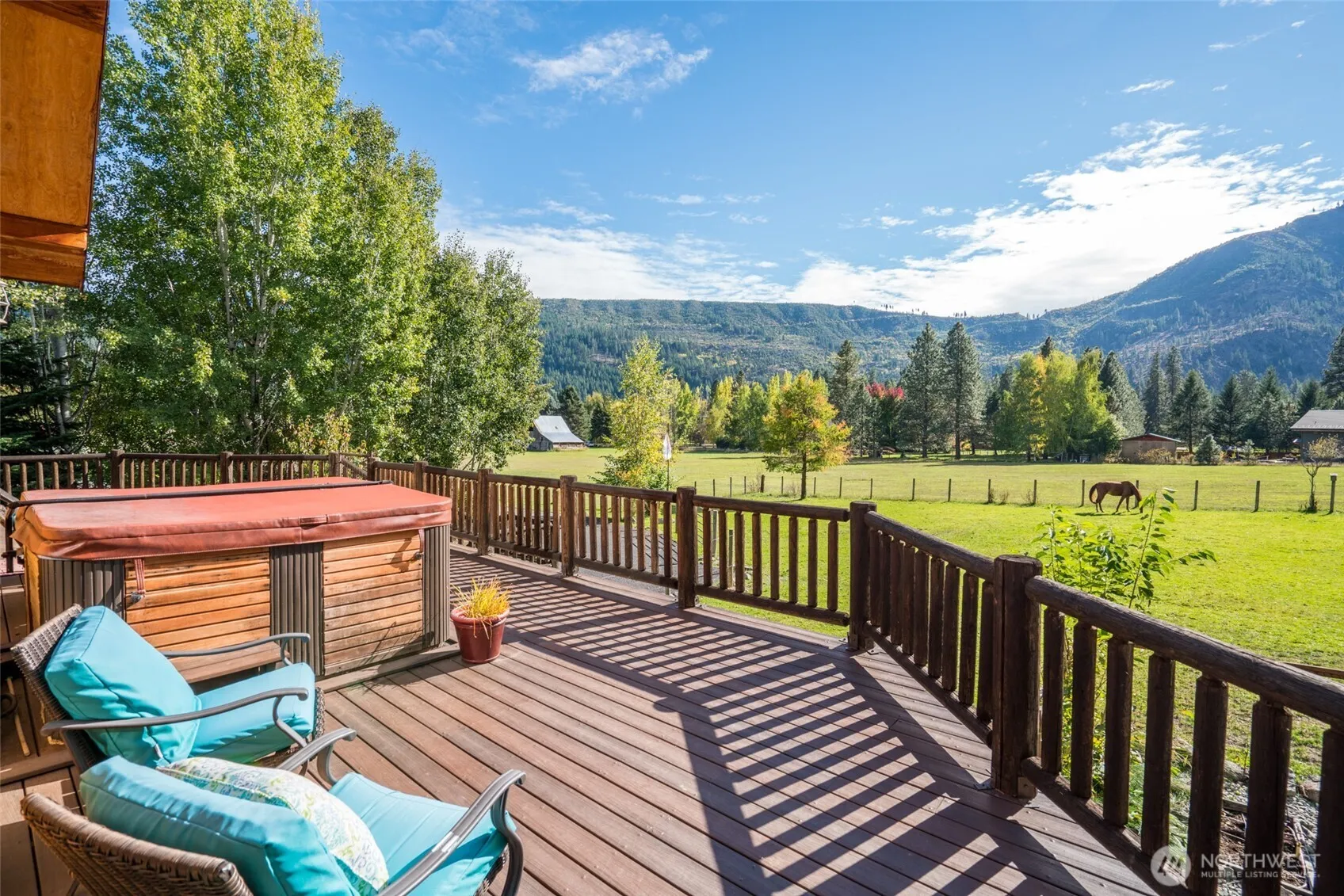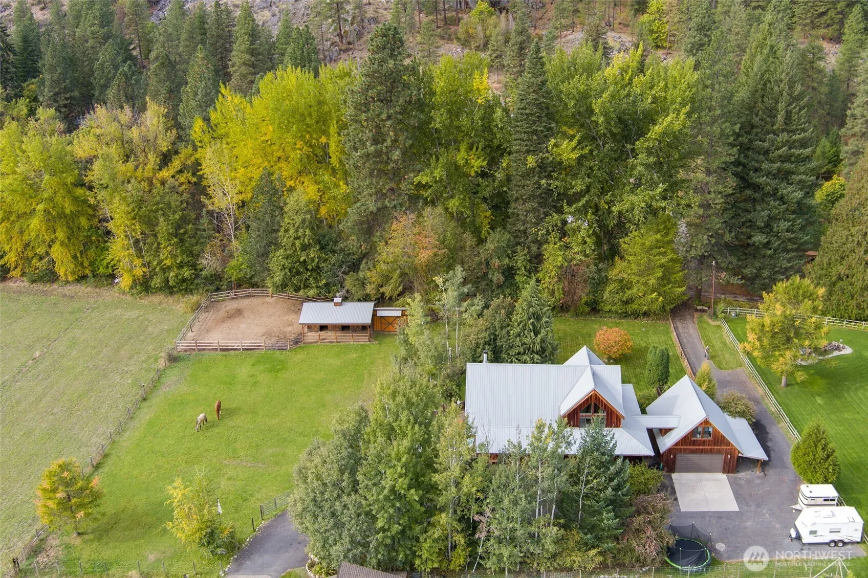 Tucked in a private cul-de-sac at the base of the 2000’ Icicle Ridge, this mountain lodge offers stunning views of Wedge Mnt. and the Enchantments. The property includes Wedge Mountain Suite—a fully equipped guest house with private driveway, currently operating as a vacation rental which allows for strong supplemental income. Walk or ride your horses to Icicle river trail system at the Fish hatchery or stop in at the Sleeping Lady Resort for dining at Kingfisher, O’Grady’s, and The Grotto. Two groomed cross-country ski parks are close by as well. Minutes from Village of Leavenworth yet secluded for peaceful, starry nights, the one-acre property has an equestrian pasture with stables and a spacious yard. Rental figures availble upon request