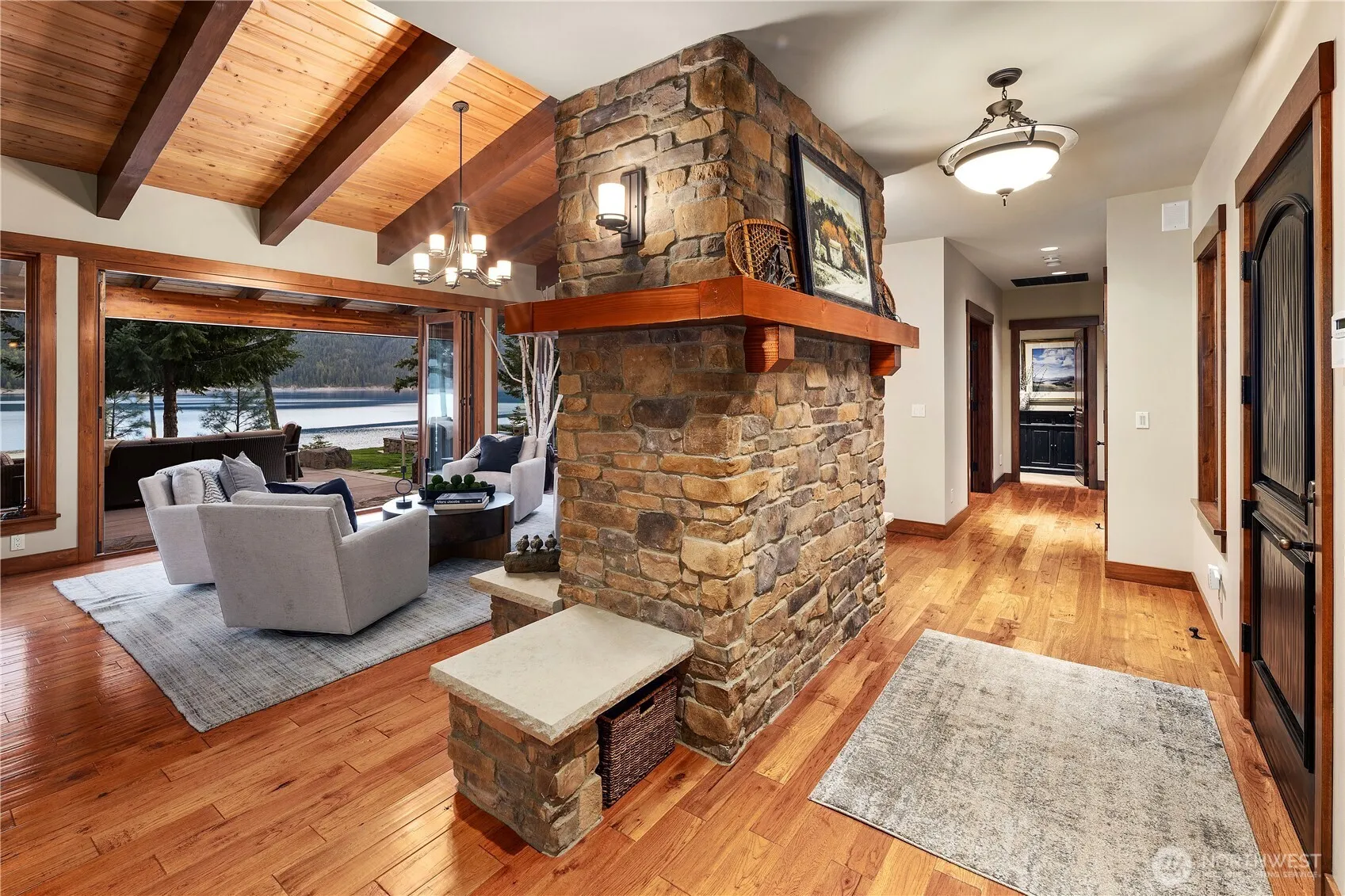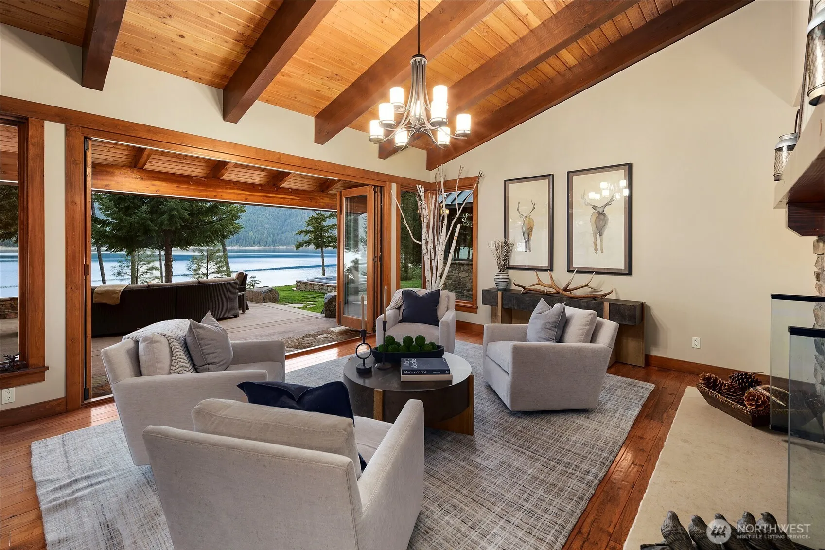Perched on over an acre lot with circular drive, this beautiful custom 3,200sf home sits above Lake Cle Elum on 135ft of waterfront &offers generous living with a luxurious primary suite, spacious office & comfortable living, dining & chef’s kitchen all with easy access to the back patio. Bringing the outdoors in, enjoy the accordion bi-folding doors to the oversized patio complete with gas fire pit, hot tub and bald eagles soaring in the trees. Guests enjoy their private level with stunning lake views, 2-bedrooms and loft upstairs. Adventure awaits the brave, with miles of biking & hiking trails out the front door. Motorboats and seaplanes frequent Lake Cle Elum while fishing and kayaking is strongly encouraged. Dream big in the mtns.