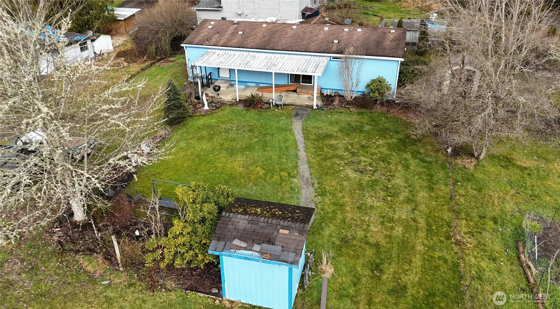 Estate sale! Double wide Manufactured home with 3 other structures on almost 1 full acre of flat, usable land with no HOA restrictions. Award-winning Tahoma School District. The original shop is an early 1940’s build, crafted from bricks in the previous brick-making town of Taylor. The Single Family Residence (Homestead)is in need of restoration, however is built on post and pillar—not to code. Another drive-thru garage (former body shop w/ PIT) sits on this land, ready for your ideas. Fresh well water and pump house. Creek adjacent to driveway. Quick access to HWY-18 and Hobart Store. A quiet, lovely place to live or amazing investment opportunity! As-is sale. Some items will go with seller.