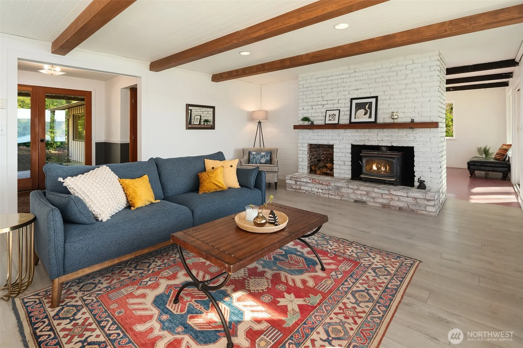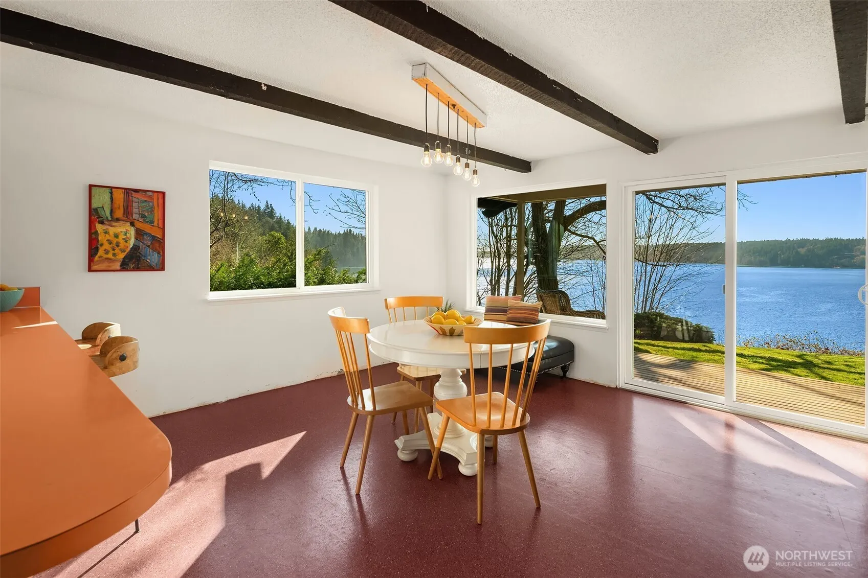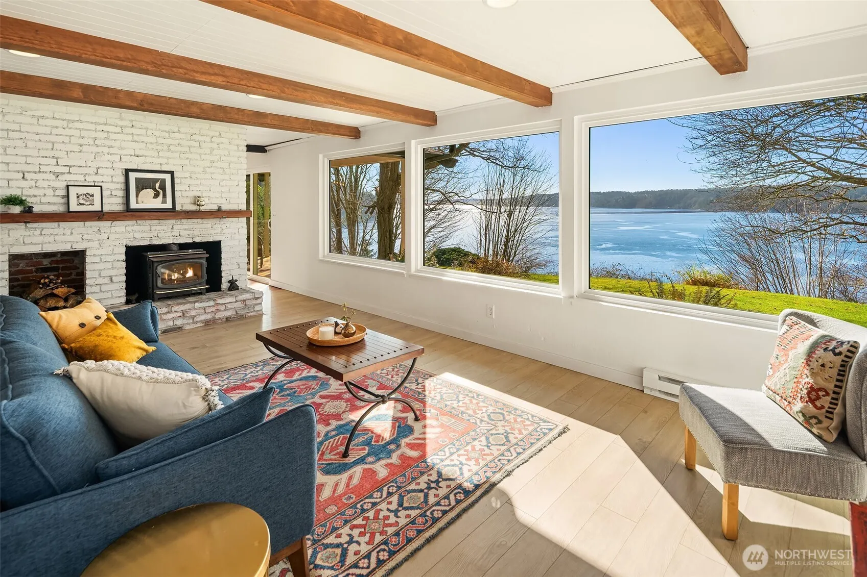 Fantastic Colvos Passage views from this generous mid-century diamond in the rough. Perched above the water, this one-level, light-filled & private 4 bedroom home with 3 baths has room for everyone! The floorplan is perfect for shared living situations or WFH with two separate wings radiating out from the heart of the home with huge eat-in kitchen and big living room with cozy wood stove insert. Fun exposed brick, tons of storage and shelving, fresh carpet, laundry with utility sink. Beach access is just down the street, the views are enchanting, the land is easy-care with lawns and a fenced veggie garden with raised beds. This is going to be an absolute gem in its next phase of life — a not-to-be-missed opportunity.