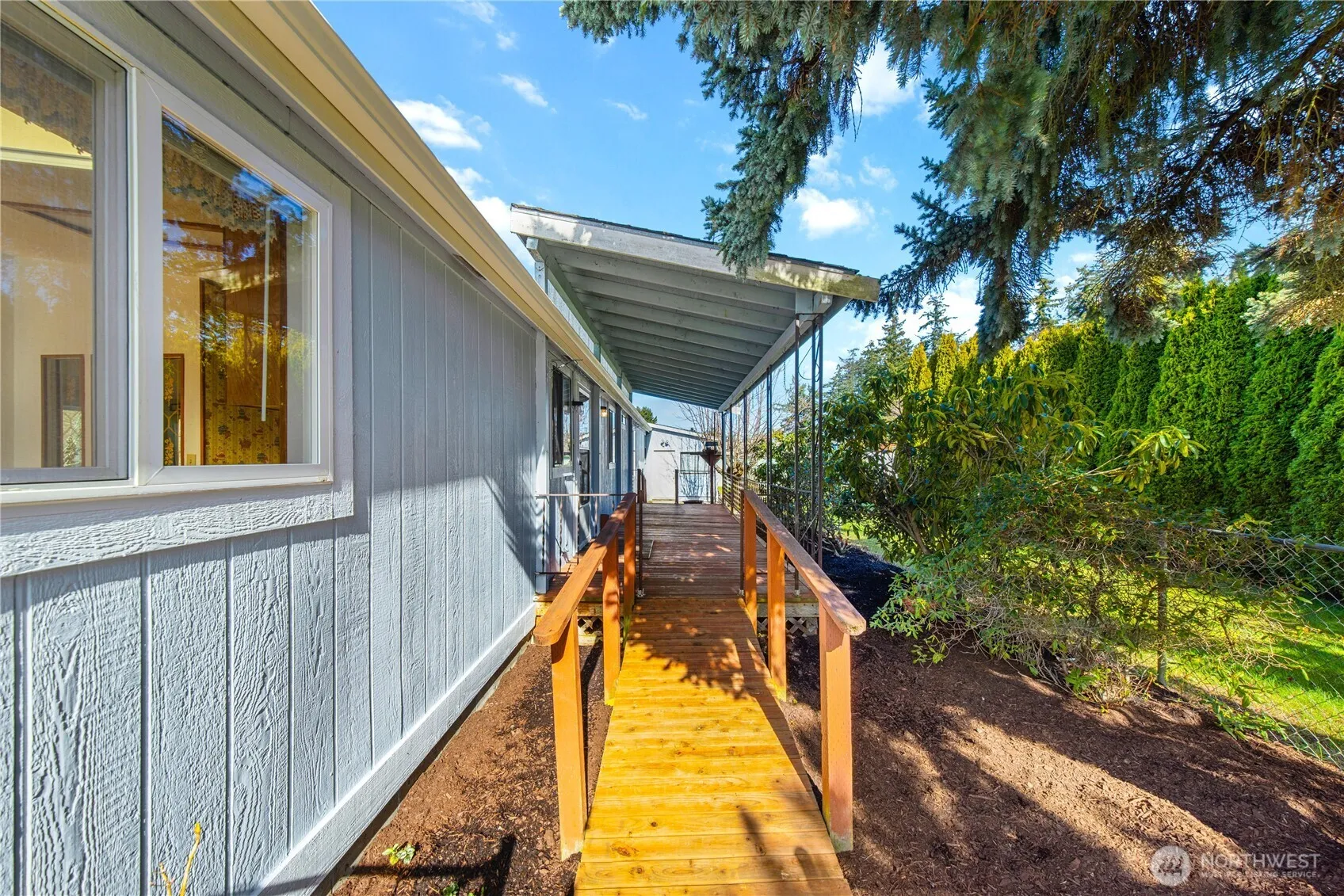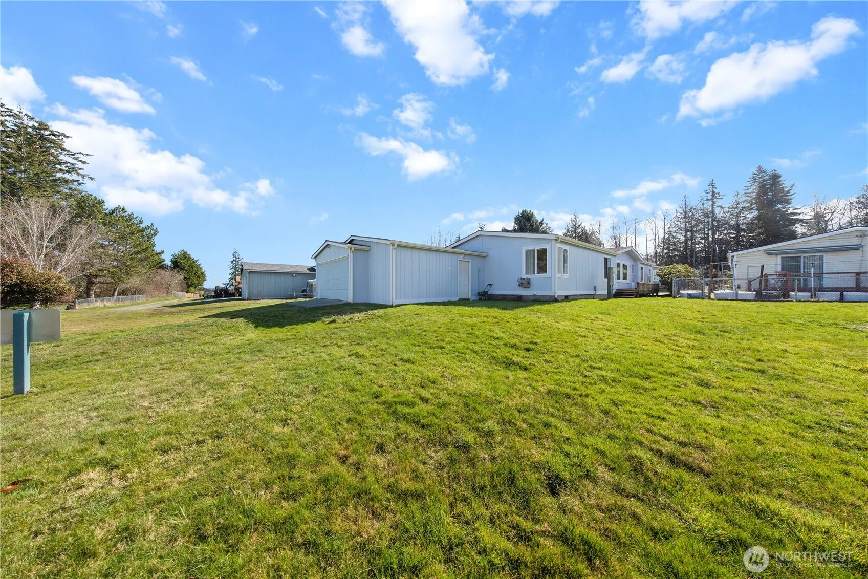 This one level, 1782 SF, 3 BD, 2 BA, manufactured home is in a great 55+ community with all the available amenities of Anacortes. The lot is fee simple meaning you own the land. Enjoy the spacious kitchen with dining area and a wall of windows to let in the light. Vaulted ceilings and hardwood floors are throughout much of the main area. Separate living room with access to a deck on the west side. Large laundry room with storage cabinets. Master bedroom with master bath, including a separate tub and shower. Oversized two car garage off of the alley.