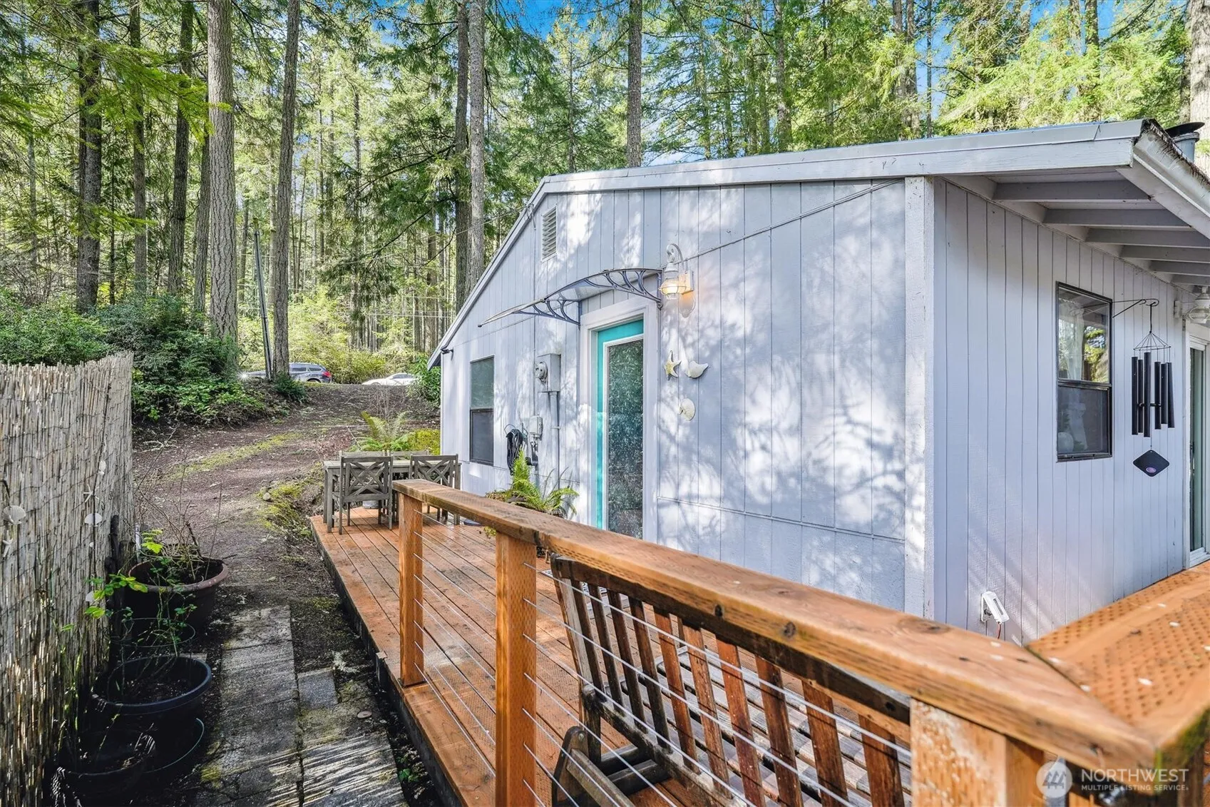 Escape to tranquility in this delightful cottage in the woods! Enjoy unparalleled privacy in this serene location set against the backdrop of a quiet driving range greenbelt. This 2 bd 1 bth home has been lovingly cared for with recent upgrades to electrical, flooring, ext/int paint, lighting, & more. You will appreciate the sturdy wraparound deck from which to take in the abundant wildlife & birdsong & evenings spent around the fire pit. The 10×12 storage shed with new roof is an added bonus! Wanting even more privacy? A second .22 acre parcel with addt’l outbuilding and 1-bed septic system, water & power in place is also available for purchase! Perfect for RV hookups for your guests. Great STR opportunity or full-time retreat: view today!