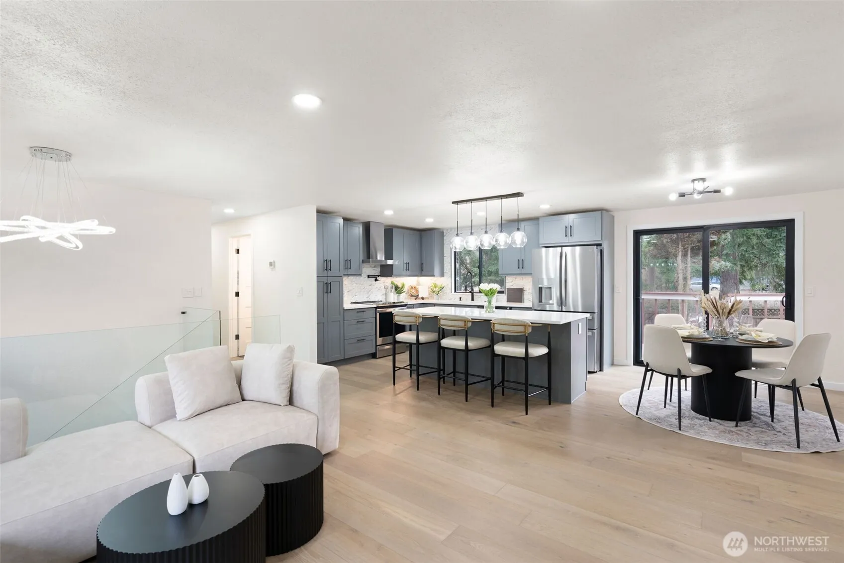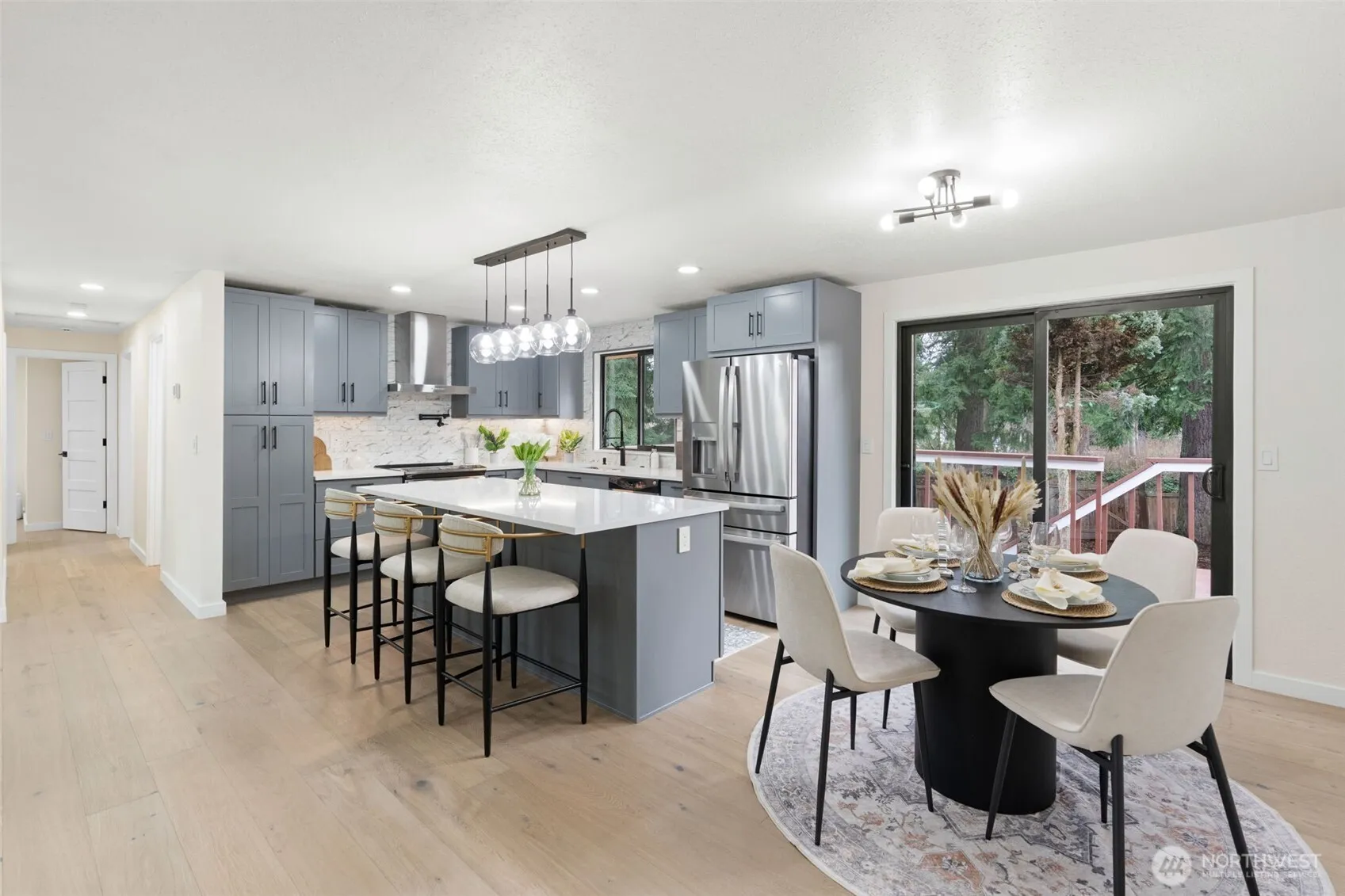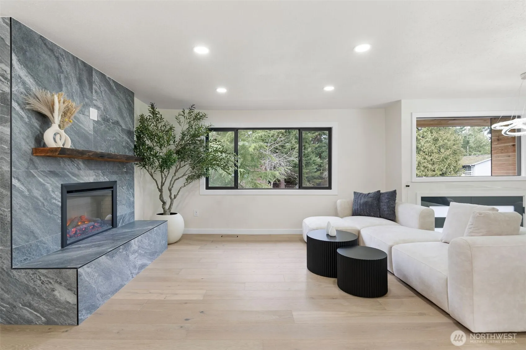 Welcome to this stunning, fully renovated modern home! Featuring sleek contemporary finishes, a brand-new roof, new windows, new SS appliances, and A/C, this 4-bedroom home offers both style and functionality. The open-concept layout includes a beautifully updated modern kitchen with an island, elegant cabinetry, and a dining area that flows seamlessly to a spacious deck—perfect for entertaining. Enjoy cozy evenings with two fireplaces, one on each level. The home also offers plenty of parking, including space for an RV/boat, plus a 2-car garage and a fully fenced backyard. Located in the highly desirable Mukilteo School District, this home is just minutes from Boeing, I-5, Mukilteo Beach, shopping, and dining—all with no HOA!