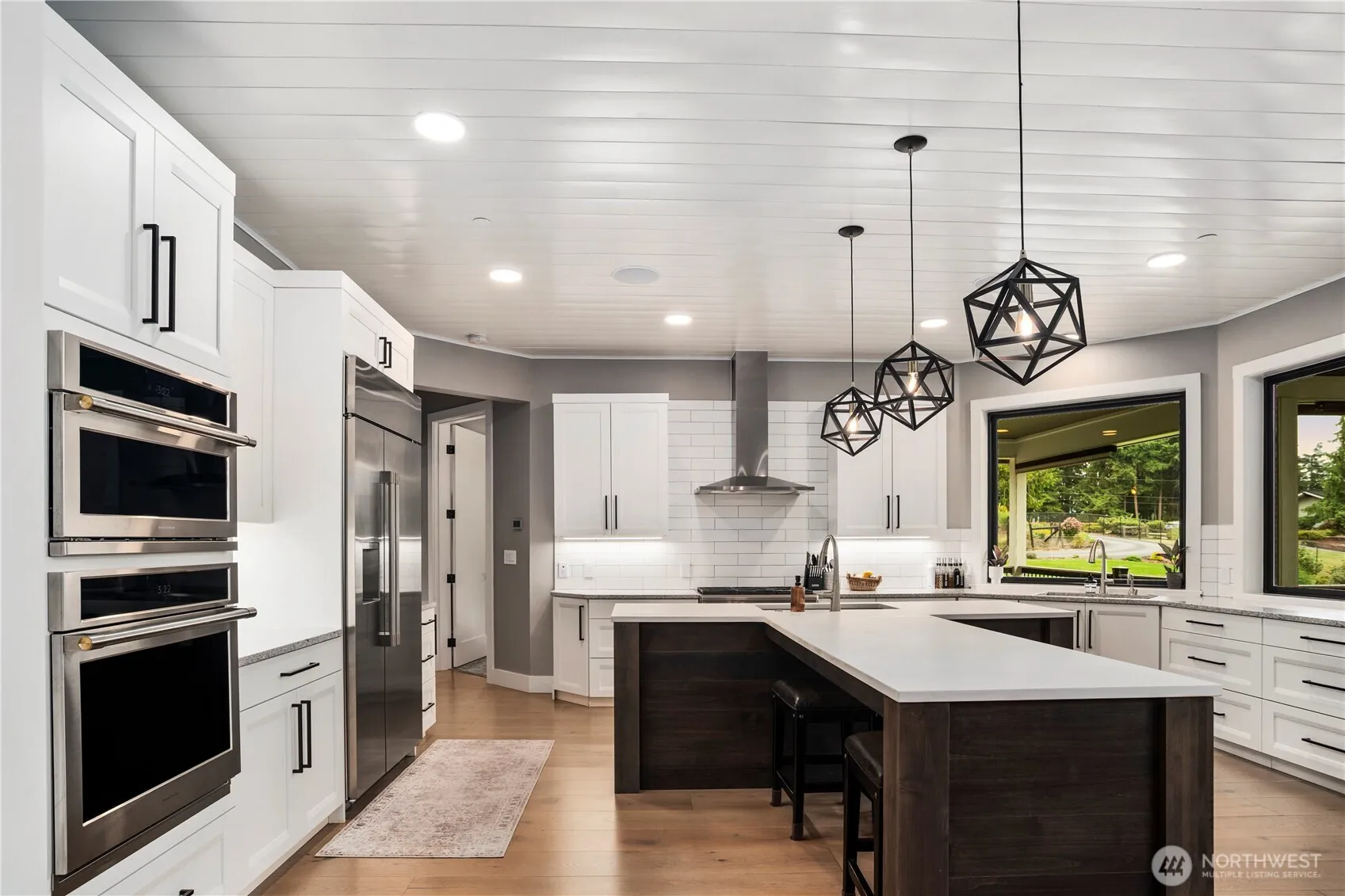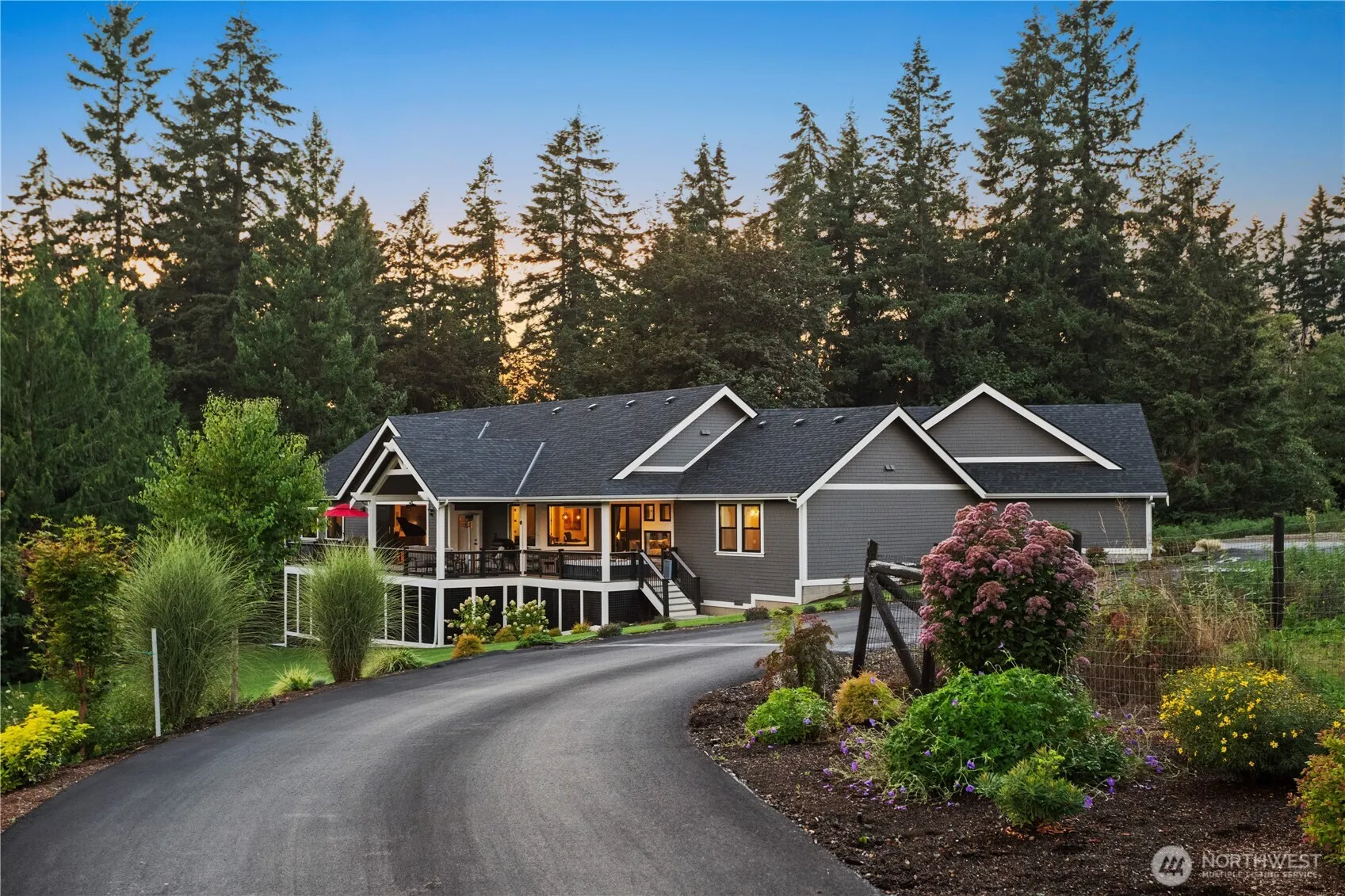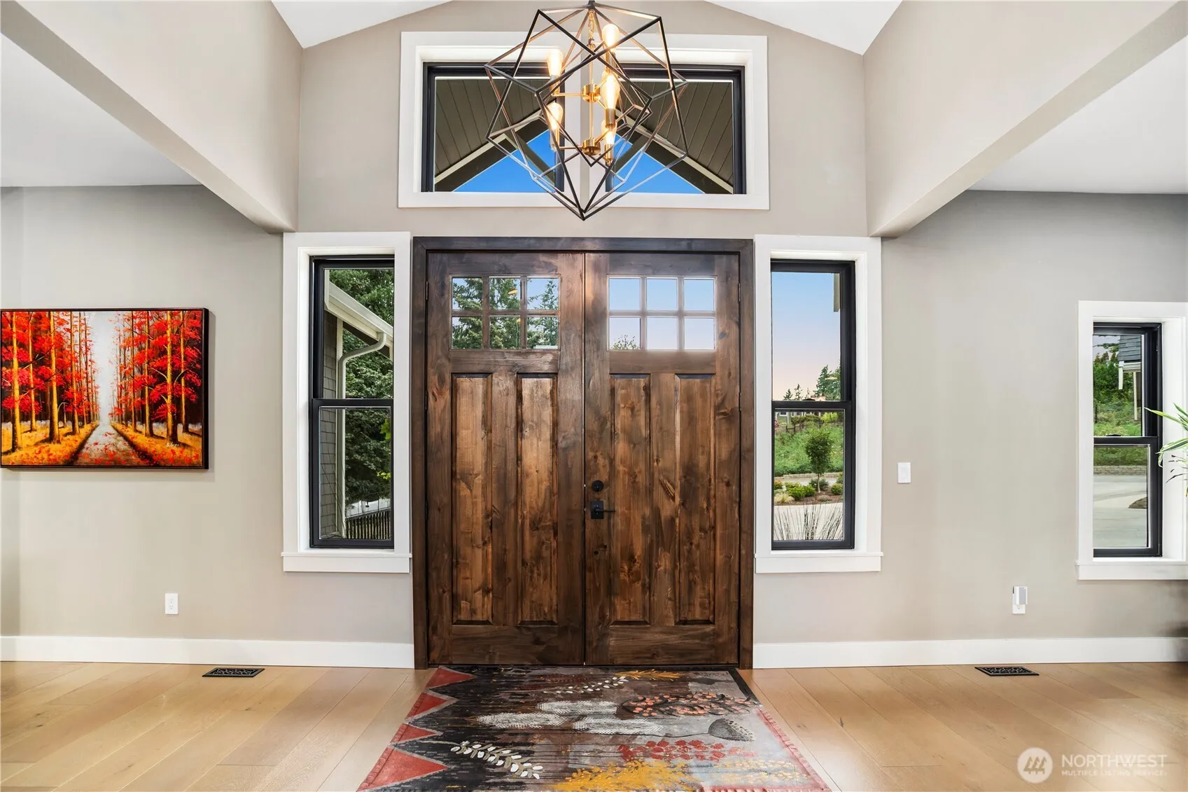 Escape to your private gated estate, where luxury and tranquility meet. Step inside to find vaulted ceilings, engineered hardwood throughout, and expansive windows for an abundance of natural light. The chef’s kitchen boasts quartz countertops, SS appliances, and a sprawling island perfect for gatherings. Cozy up by the gas fireplace or step out onto the composite deck to enjoy your morning coffee—or unwind in the hot tub, with direct access from the primary suite. The stunning 5-piece en-suite bath features a soaking tub with peaceful backyard views. A daylight basement offers a spacious rec room, full bath, and additional bedroom—perfect for guests. Ultimate privacy and thoughtful design make this home everything you’ll ever need!