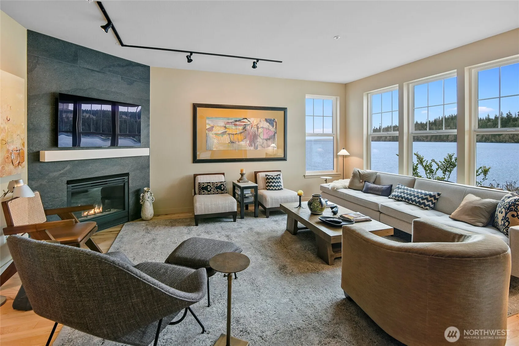 Experience luxury waterfront living, where coastal elegance meets modern sophistication in the heart of Ludlow Bay Village. This 1,970 sq ft low bank WF retreat offers 2 bedrms, 2.5 baths & a versatile water view bonus room reflecting a recent $200k plus whole house update. Enjoy a chefs kitchen with custom cabinetry, high end appliances & quartzite countertops. Relax in the spa inspired primary suite, featuring custom fixtures & exquisite tilework as well as a two sided gas FP. Expansive decks with lush privacy landscaping invite seamless indoor-outdoor living, with breathtaking water & mountain views. Steps from the marina, two pools, pickleball, fine dining & more. This home blends a serene resort lifestyle with modern luxury.
