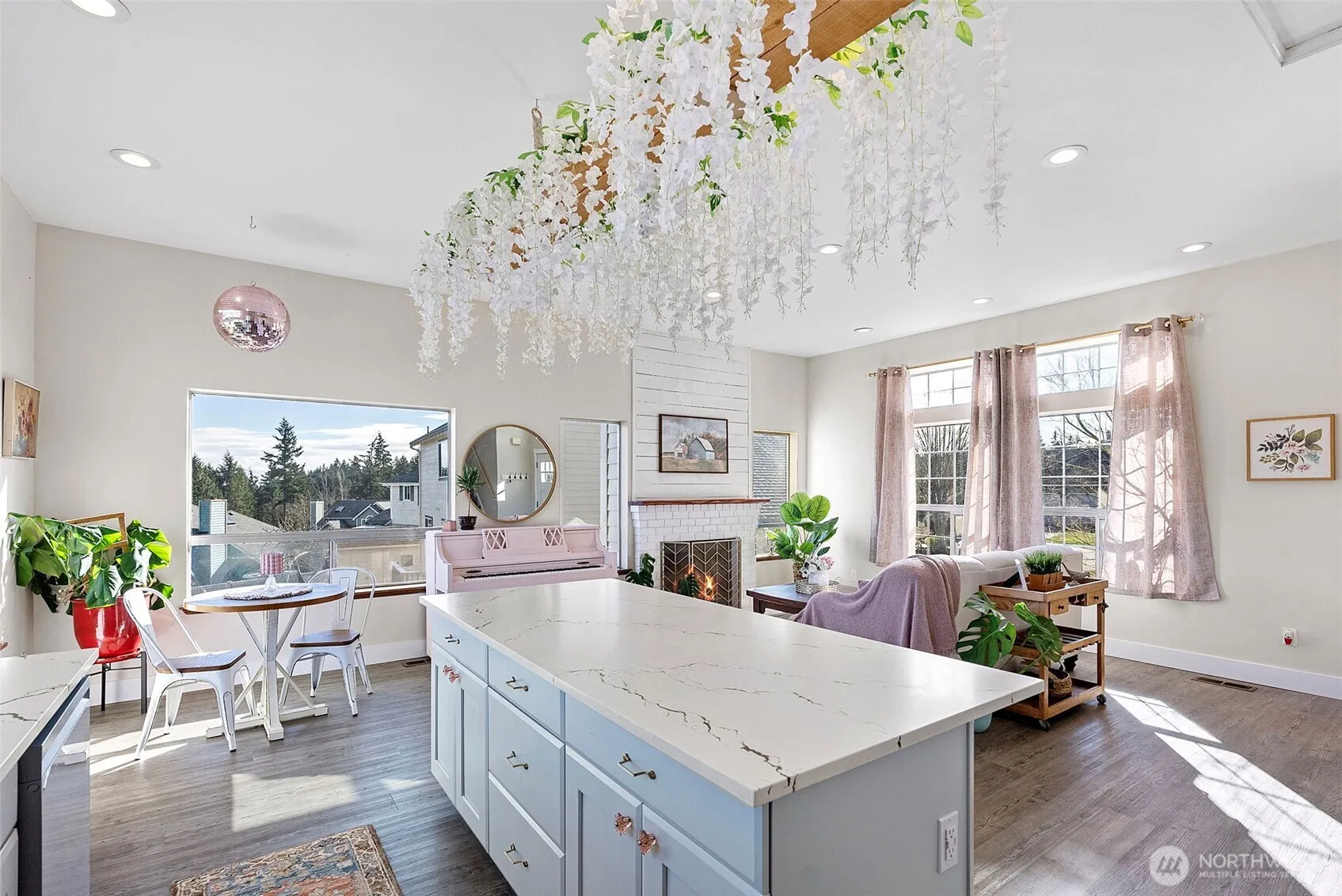 Drenched in natural light, this Beautiful 3-bed/2.5-bath tri-level home in Silverdale offers the perfect blend of style & functionality. The open floorplan & high ceilings create a spacious, inviting atmosphere ideal for everyday living & entertaining. Fabulous remodeled Kitchen boasts new smart appliances, slab counters, white shaker cabinets & big island with breakfast bar. Upgraded flooring & paint throughout add a modern touch. 3 generously sized bedrooms, including a primary suite with a stylishly remodeled ensuite bath. With a Big fenced yard on a quiet cul-de-sac in a great neighborhood just minutes from military bases, shopping, dining, & major highways, and feeding to CK High School, this gem is move-in ready & waiting for you!