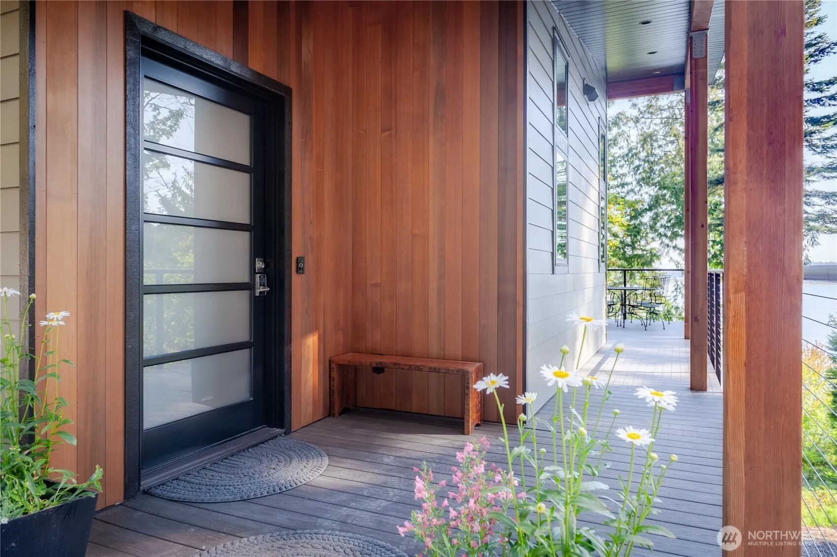 Stunning waterfront estate on 1.85 acres w/ 230’ of shoreline; the epitome of architectural excellence & refined design. Built to the highest standards, it radiates sophistication & impeccable craftsmanship. A welcoming entryway w/ radiant-heated porcelain tiles lead to a chef’s kitchen w/ black walnut sapwood cabinetry, Bosch appliances & sleek Neolith counters. Both living rooms feature basalt fireplaces w/ walnut mantels. The main primary suite offers a custom closet & spa-like shower, while the lower level boasts a wet bar, a second primary suite, & walk-out decks. Top-tier utility systems, inc. a generator w/ an auto transfer switch, ensures seamless comfort. A forested path leads to a serene coved beach—your private retreat awaits!