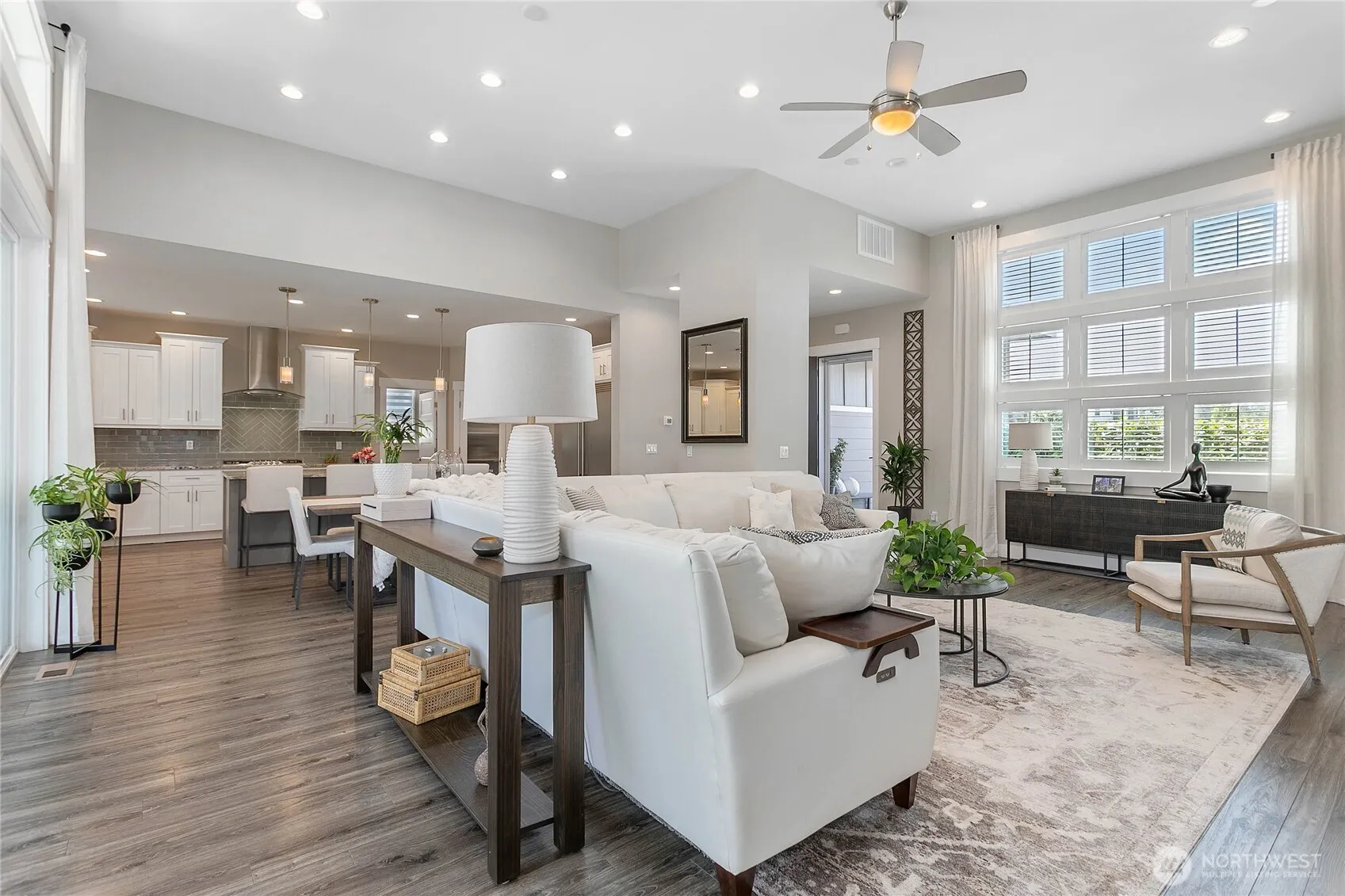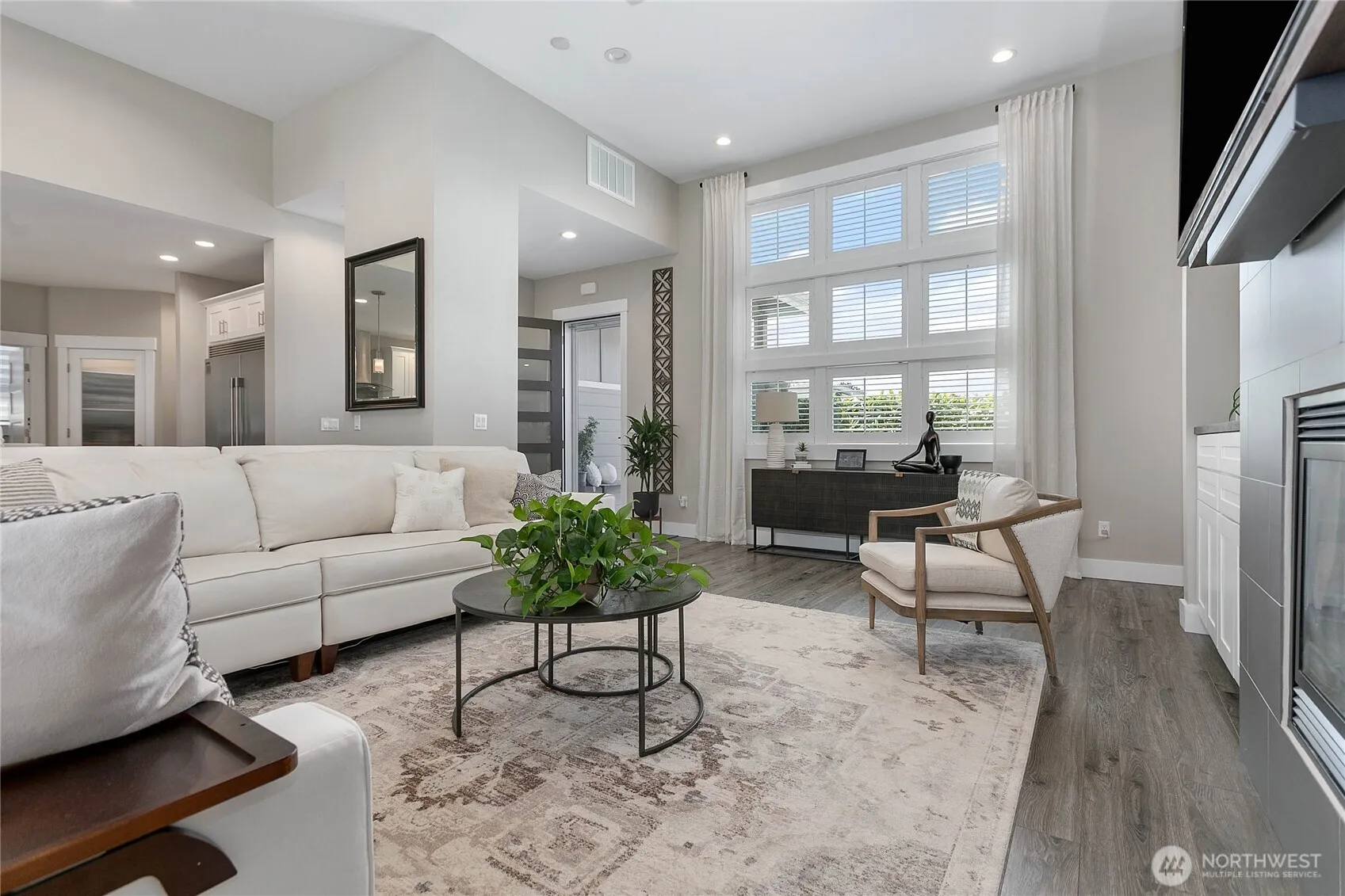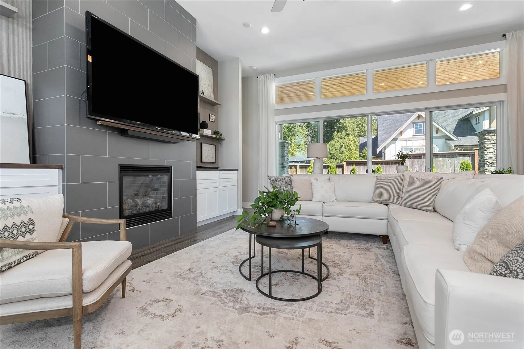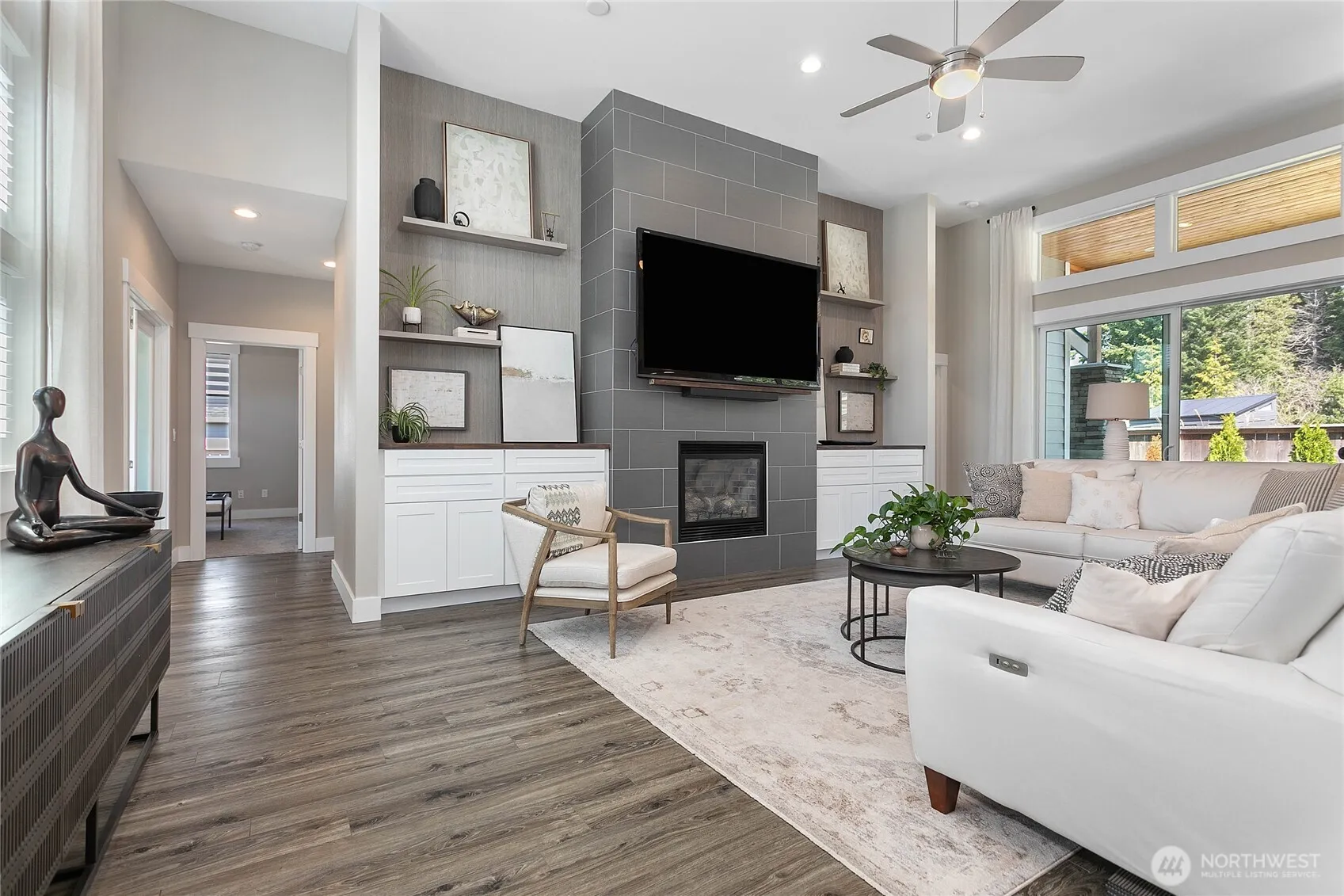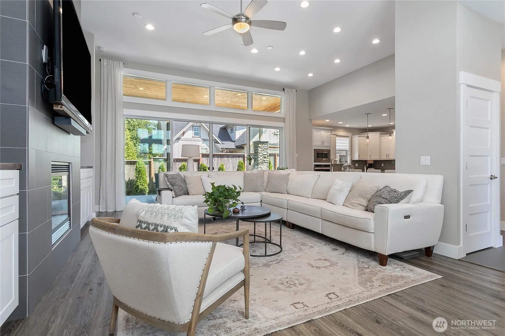 This beautiful home in The Meadows is nestled in one of Ferndale’s most desirable neighborhoods. Step inside and discover a bright, open floor plan that effortlessly combines modern design with luxurious amenities. The gorgeous kitchen is a chef’s delight, complete with quartz countertops, LARGE ISLAND, a side-by-side fridge/freezer and walk-in pantry. Perfect for entertaining. The spacious primary bedroom is a true sanctuary, boasting an ensuite bath with a walk-in shower. Built for comfort and style, showcasing modern aesthetics, soaring 12-ft ceilings and a floor-to-ceiling stone fireplace that adds a touch of elegance. Fenced backyard, complete with a covered deck, is ideal for summer barbecues and year-round relaxation.