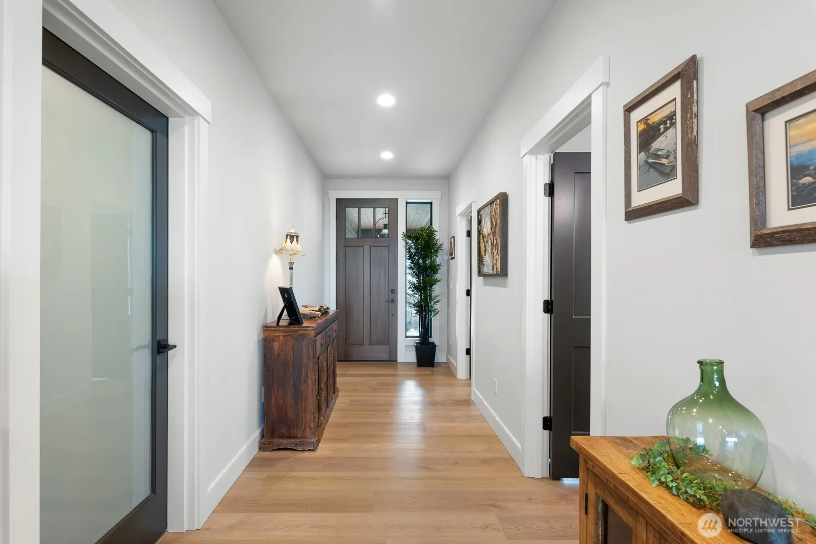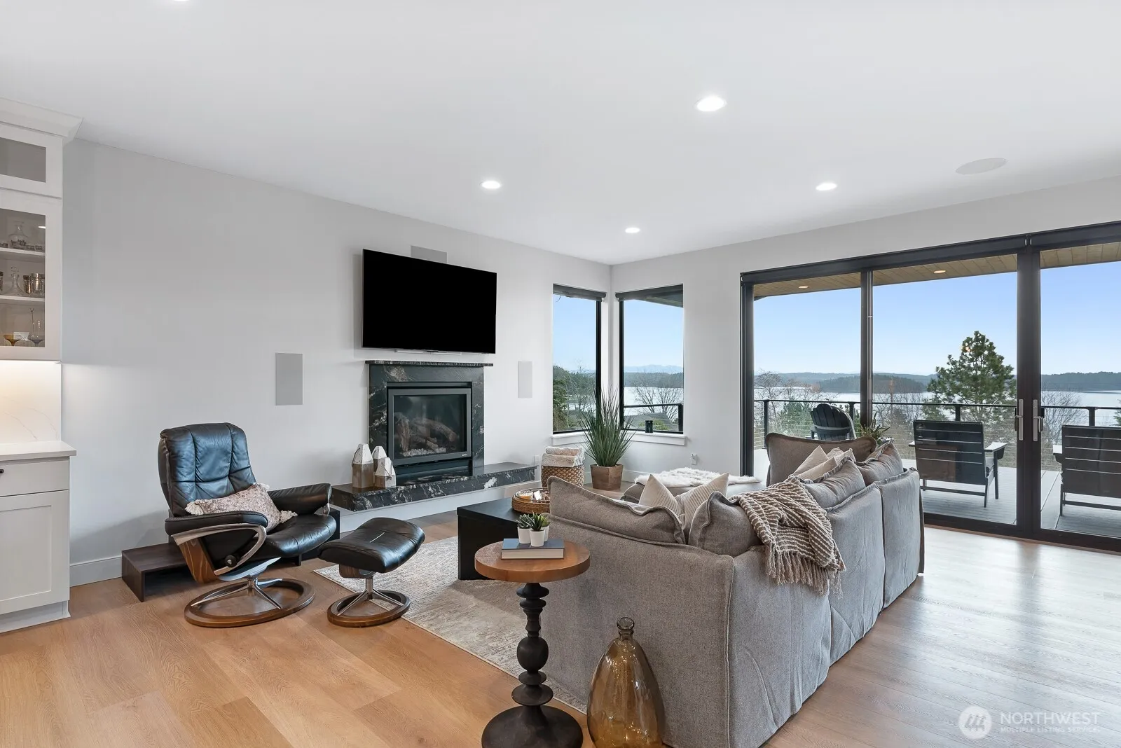 Nestled near Deception Pass this stunning custom home blends contemporary design with Pacific Northwest beauty. Welcomed with gas lantern-lit entry into the open-concept main level featuring immediate water & mountain views from walls of windows out to expansive covered deck, dream kitchen with quartz counters & beautiful cabinetry-flowing seamlessly into living & dining with fireplace. Luxe primary suite with spa-like en-suite & spacious walk-in closet. 2nd bedroom, full bath & laundry/mudrm with dog bath complete the main floor. Upstairs, an office/rec space boasts expansive views. Lower level gives family room with fp & kitchenette, 3rd bdrm, bonus rm & flex rm, addtl laundry plus lower deck, patio & fully fenced yard. Exceptional home!