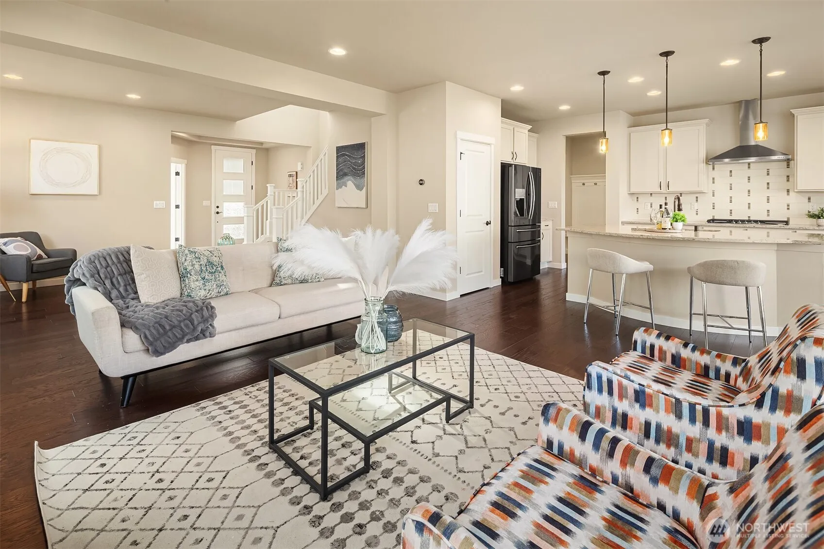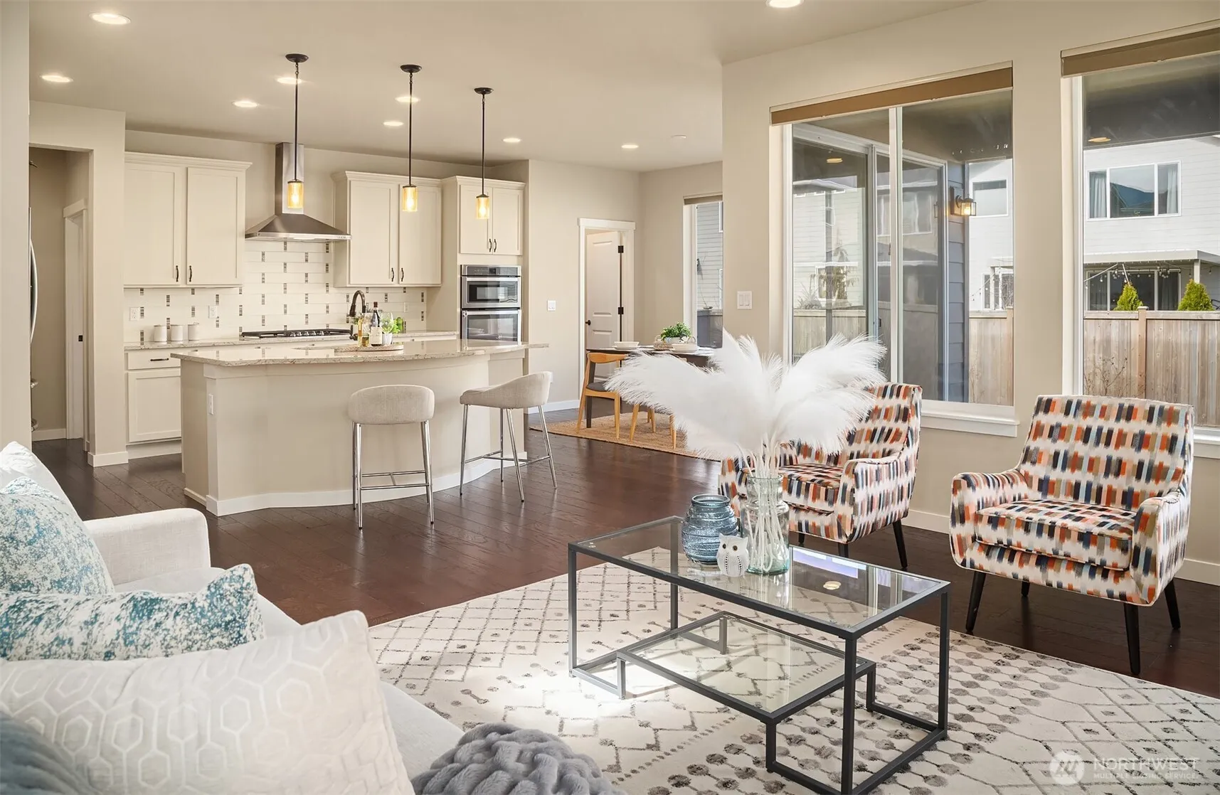 Stunning home in the sought-after River Glen neighborhood at the base of Mt. Si! This beautifully designed home features an open-concept great room, warm hardwood floors, main level den and breathtaking mountain views. Stay comfortable year-round with central AC. The main level includes a private guest suite with a full bath—perfect for multi-generation living. The chef’s kitchen boasts quartz counters, a custom tile backsplash, and high-end appliances. Upstairs, the primary suite offers a spa-like bath and walk-in closet, plus a versatile loft for a media or game room. Enjoy a fully fenced yard with a covered patio, perfect for entertaining. Walk to downtown, trails, and parks. Award winning schools. Pre-inspected for peace of mind.