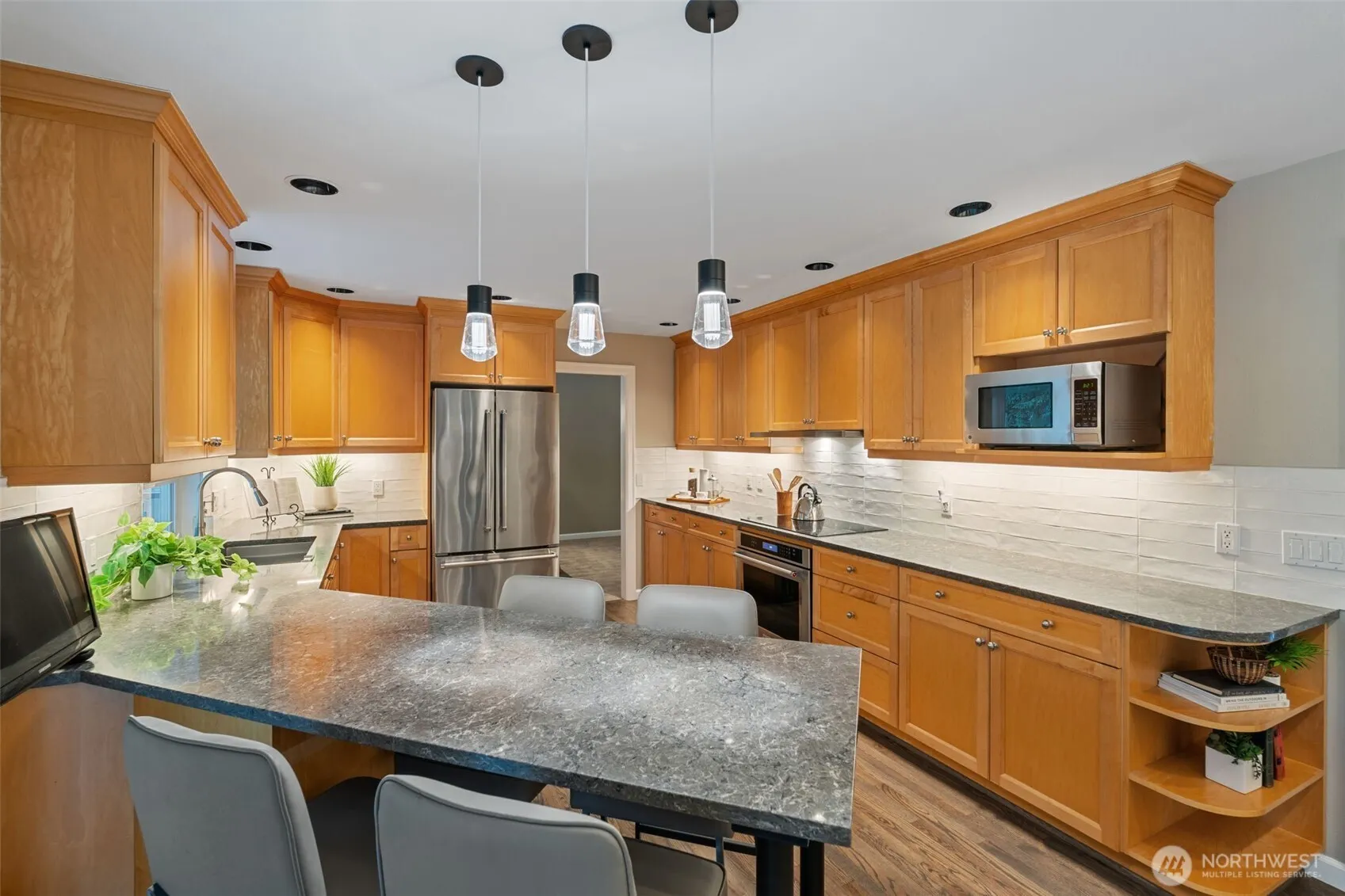 Welcome to 4808 93rd Ave W in University Place, WA a stunning, remodeled retreat on a quiet cul-de-sac. Steps from miles of walking trails, Chamber’s Elementary, a community pool, tennis courts, and Chamber’s Bay golf course with a scenic 3.5-mile trail, this home is perfectly positioned near Trader Joe’s, Whole Foods, Safeway, gyms, and restaurants. Updated in 2015, it offers vinyl windows, recessed lighting, hardwood floors, a SMART Honeywell thermostat, a 2-car garage for extra storage and workbench, natural gas heating/A/C, and an alarm system. Gourmet kitchen (2019) has quartz countertops, stainless appliances, ample pantry, USB ports, & sliders with UV coating to a Trex deck overlooking landscaping, fruit trees and accent lighting!