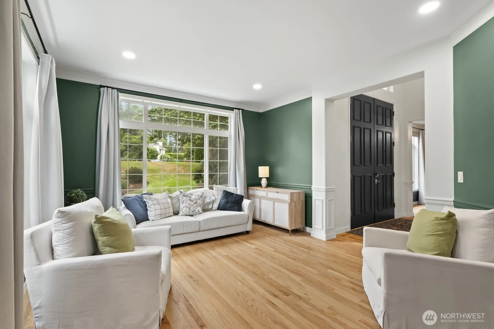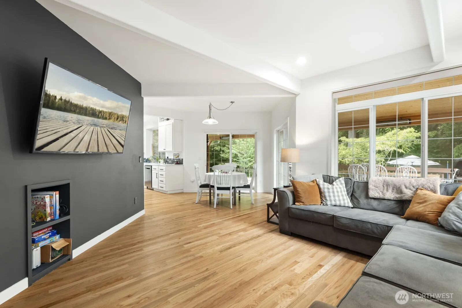 Beautifully updated contemporary home in highly sought-after Lake of the Woods. The ideal floor plan w/4 bedrms, office & bonus rm; hardwood flrs & 9-ft ceilings grace the main floor. Chef’s kitchen w/marble counters, sleek island, walk-in pantry, & Butler’s pantry. Lavish primary suite w/vaulted ceiling, custom wood-accent wall, fireplace & new spa-like bath. Updated hall & powder baths. Private, fully fenced backyard, entertain year-round on the expansive covered deck w/skylights, recessed lighting & heaters w/a serene greenbelt backdrop. Newer 50 yr roof & H2O. Excl Lkw Schls. Turnkey gem in a premier Woodinville enclave!