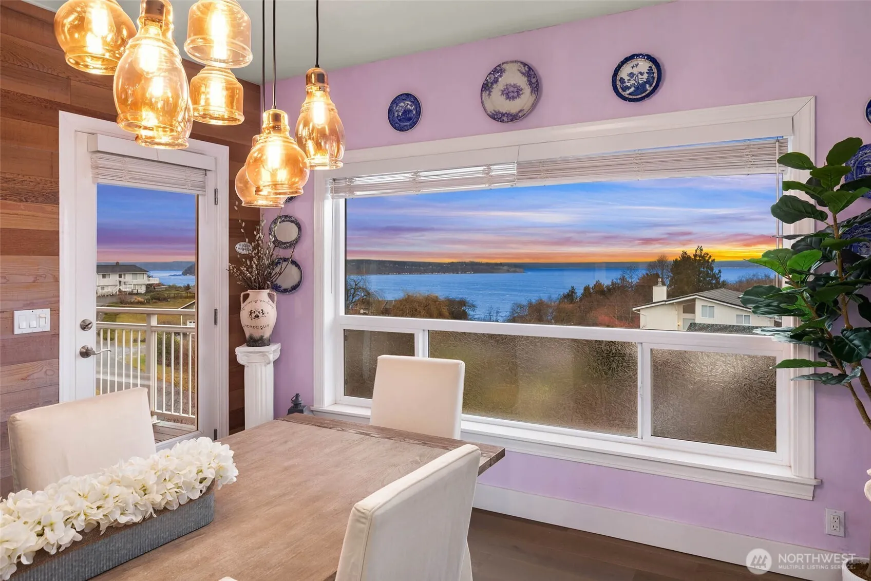 Step into this stunning, custom-built Whidbey Island home with sweeping sound and mountain views. A gallery of windows welcomes you to watch ferry boats by day and city lights by night. Beautifully remodeled, showcasing a gourmet chef’s kitchen perfectly appointed with a Bosch refrigerator, double ovens, warming drawer, 6 burner Wolf range, quartz countertops, and custom copper hood and island. Enjoy indoor-outdoor living from the wrap-around entertaining deck or escape to the primary suite complete with a peaceful office and private deck with panoramic views. Designed for easy low maintenance living, featuring an elevator for the ultimate convenience. Experience the magic of this spectacular property, where every day feels like a retreat.
