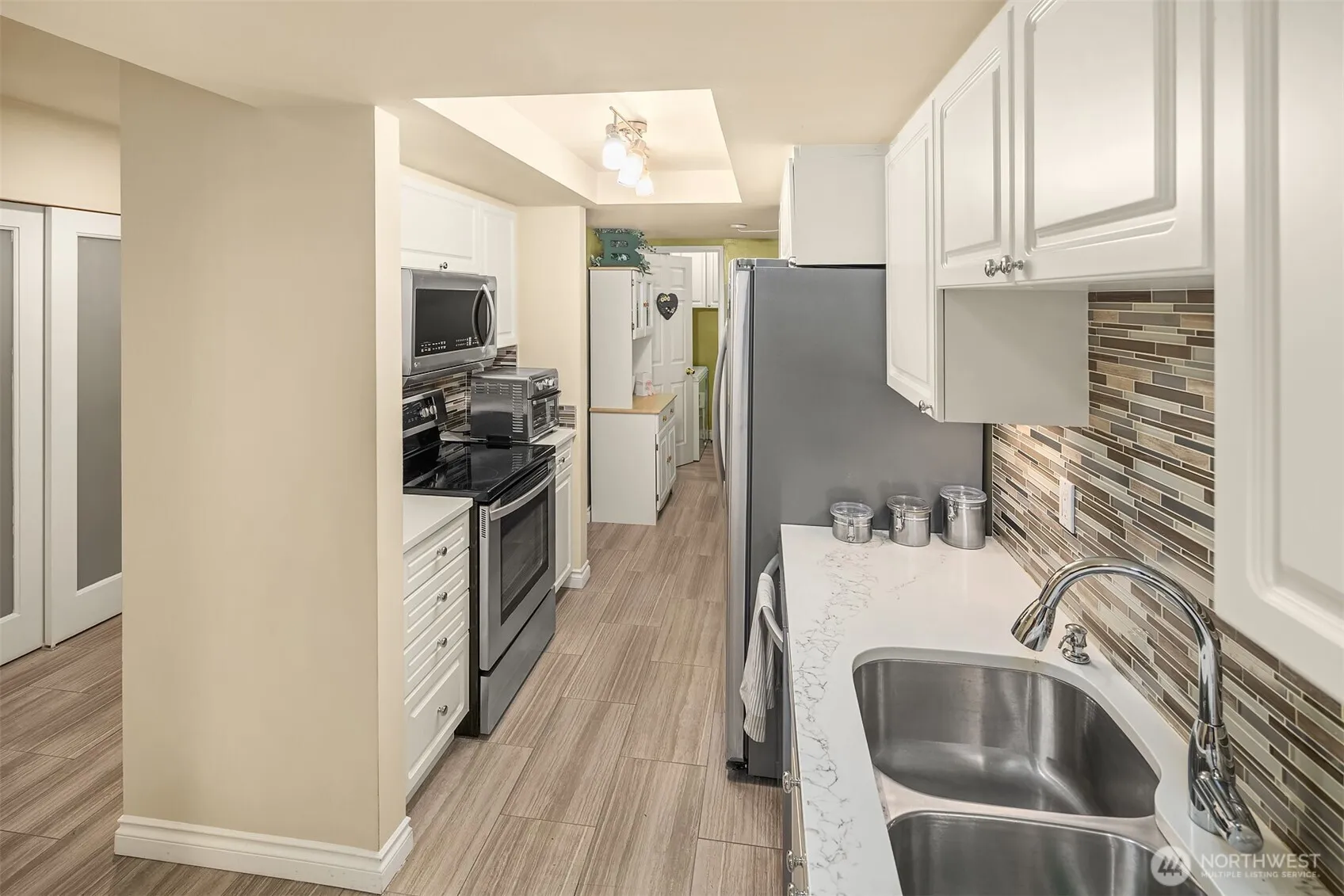 Welcome to your own penthouse in the desirable St. Moritz! This inviting unit features two comfy bedrooms & two bathrooms (plus a bonus rm that could be used as a BR), perfect for relaxation and everyday living. The kitchen is a real highlight, with stylish quartz countertops & stainless steel appliances that make cooking a breeze. Top floor living allows for high, vaulted ceilings, & a balcony with a great view. The primary bedroom comes with a roomy walk-in closet, giving you plenty of storage space. Plus, everything in the home can be included in the sale if you’d like, making it easy to settle right in. Enjoy the convenience of living near golf course, and the laid-back lifestyle of the Mill Creek Country Club.
