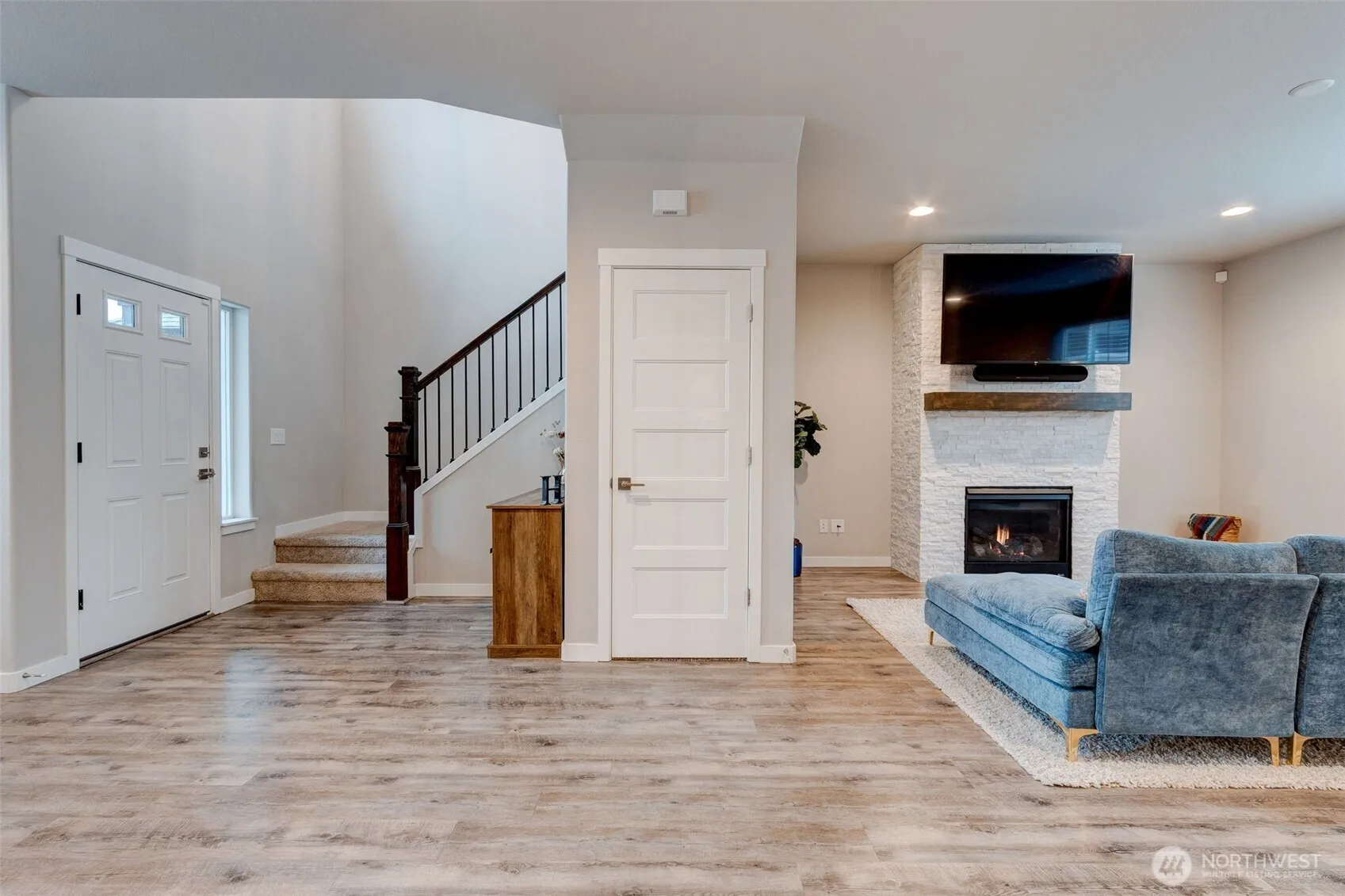 Welcome to this like-new 4-bedroom home in a fabulous Ridgefield neighborhood! Step inside to a bright living space with high ceilings, a cozy gas fireplace, and large windows that fill the home with natural light. The gourmet kitchen boasts stainless steel appliances, quartz countertops, and a large peninsula with bar seating. Upstairs, the primary suite offers a walk-in closet and an ensuite with dual sinks, a shower, and a soaking tub. Three additional bedrooms provide space for guests, an office, or hobbies. The backyard features a covered patio for year-round enjoyment and a freshly landscaped lawn, perfect for gatherings. Backing up to a walking trail leading to a nearby park, this move-in-ready home is a must-see!