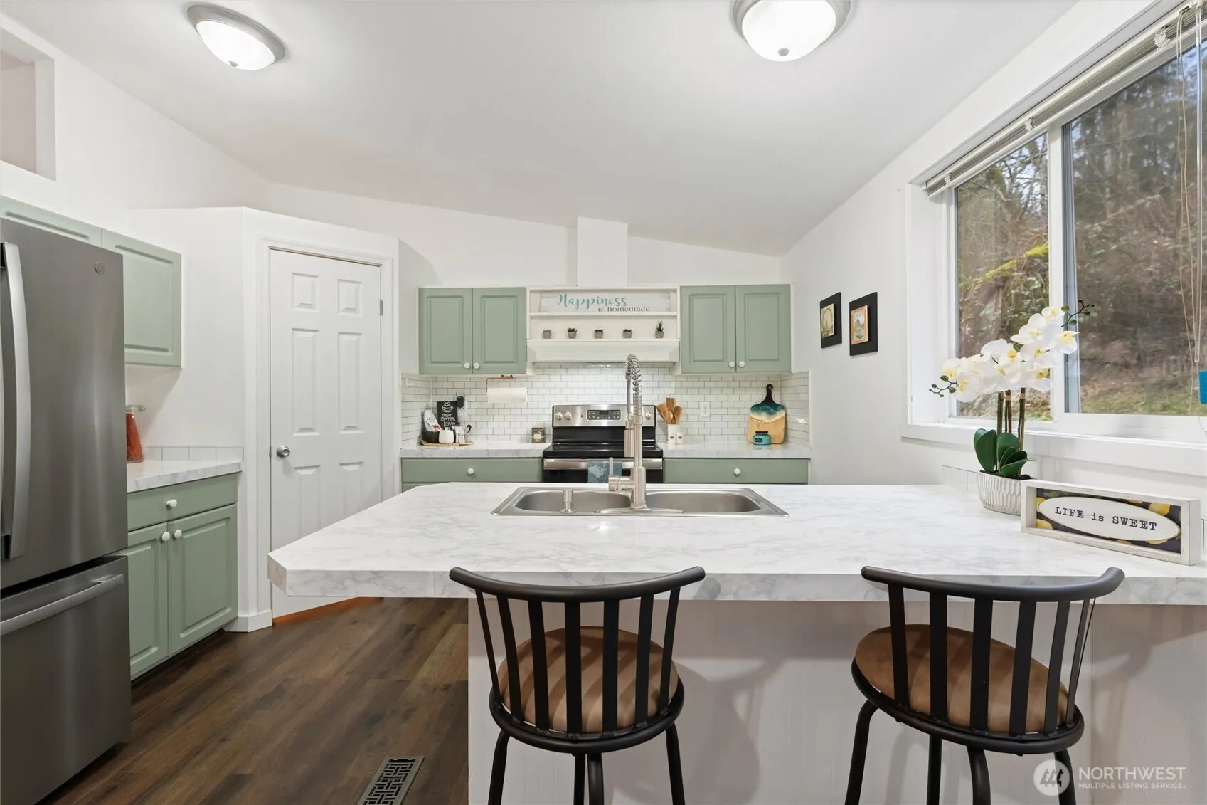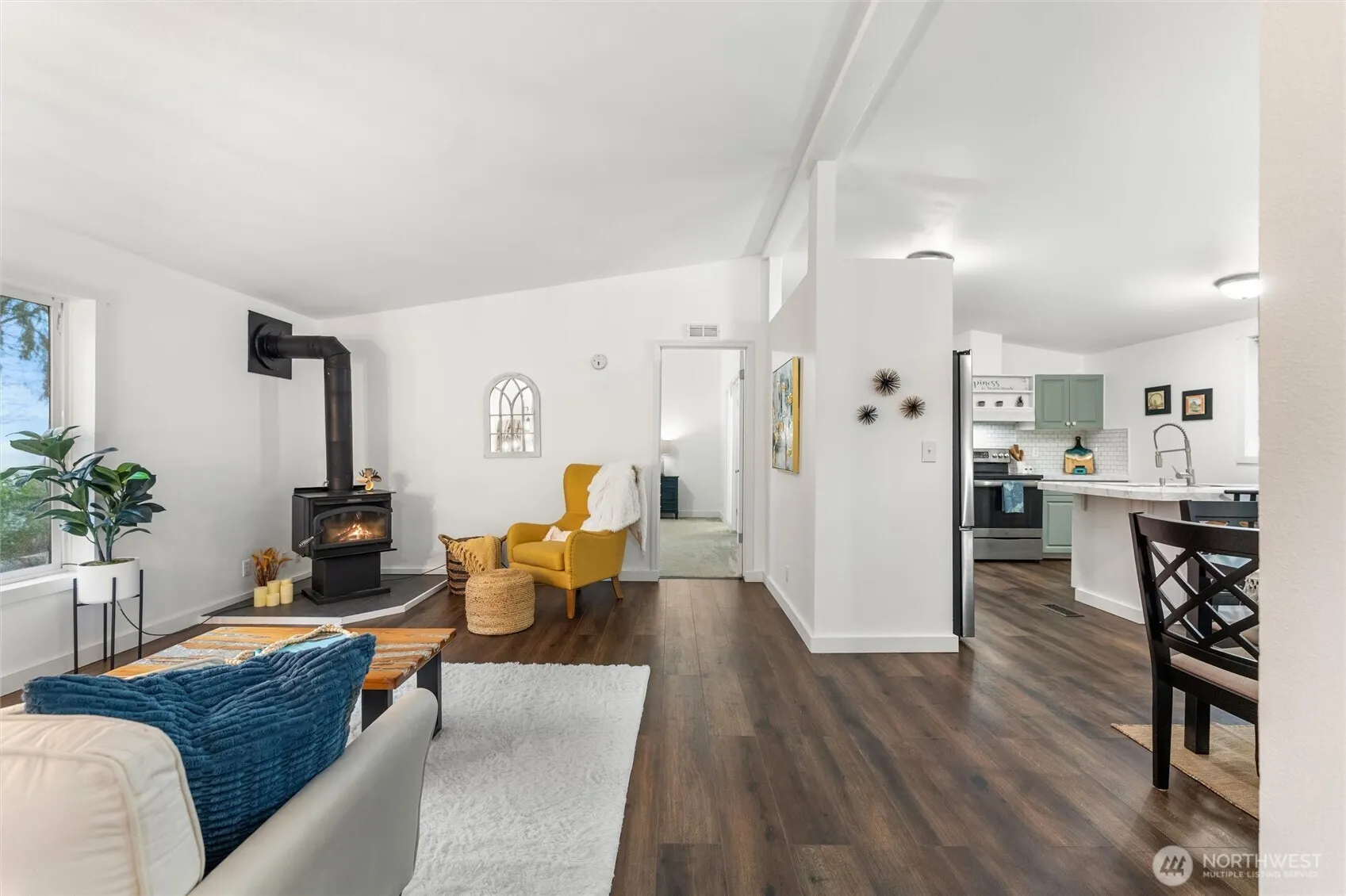 This serene move-in-ready home is the perfect blend of comfort and seclusion. 3 bed, 2 bath nestled on a spacious lot just shy of an acre at the end peaceful cul-de-sac. Fresh paint, updated flooring, and stainless steel appliances ensure effortless living from day one. Vaulted ceilings & a cozy wood stove create a warm, inviting atmosphere, while the oversized laundry room and ample storage add everyday convenience. Step outside to enjoy the natural surroundings, abundant wildlife, gardening, enclosed lean-to and an additional shed with built-in cold storage. Located in the coveted River King Estates with private river access, this home is your escape from the hustle and bustle—yet close to Monroe’s best shopping, dining & recreation.