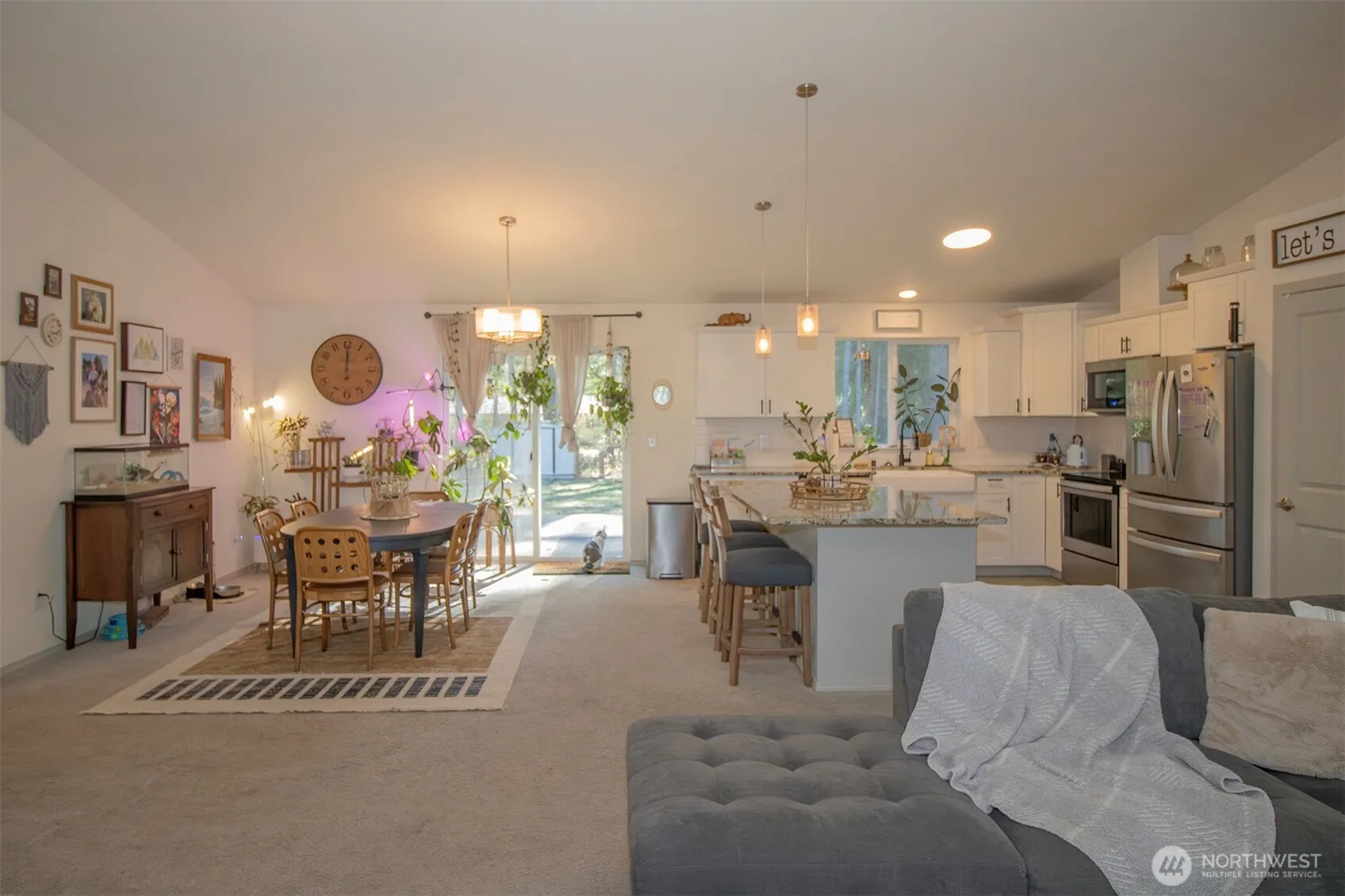 First time on the market, this beautiful 3 bedroom, 1.75 bathroom, 1720 +/- sf home has an ideal split-bedroom floor plan with a central open-living area boasting vaulted ceilings, custom focal wall and a ductless mini split for year-round comfort. Light and bright kitchen with large island, granite counters, farm sink and soft-close cabinets and drawers. Spacious primary bedroom suite with another beautiful focal wall, four piece en-suite and walk-in closet. Two additional bedrooms and full bathroom. Laundry room leads to a two-car garage and plenty of driveway parking. Large back deck and fenced-in backyard with fire pit and storage shed. Outdoor sprinkler system. Rochester School District.