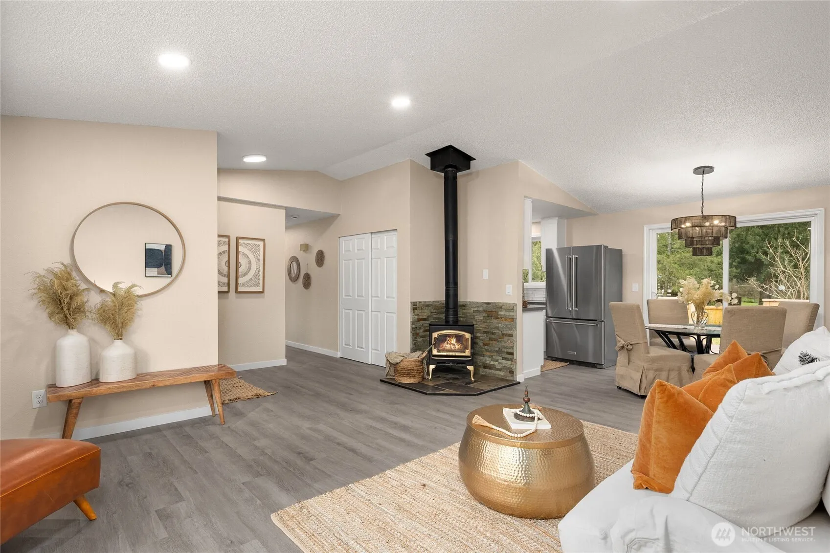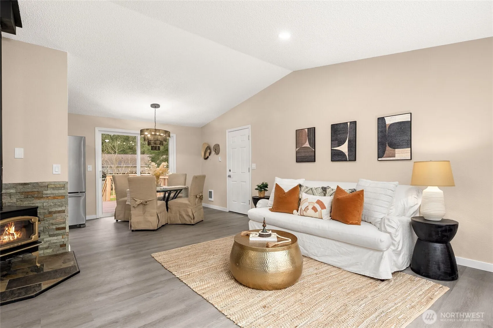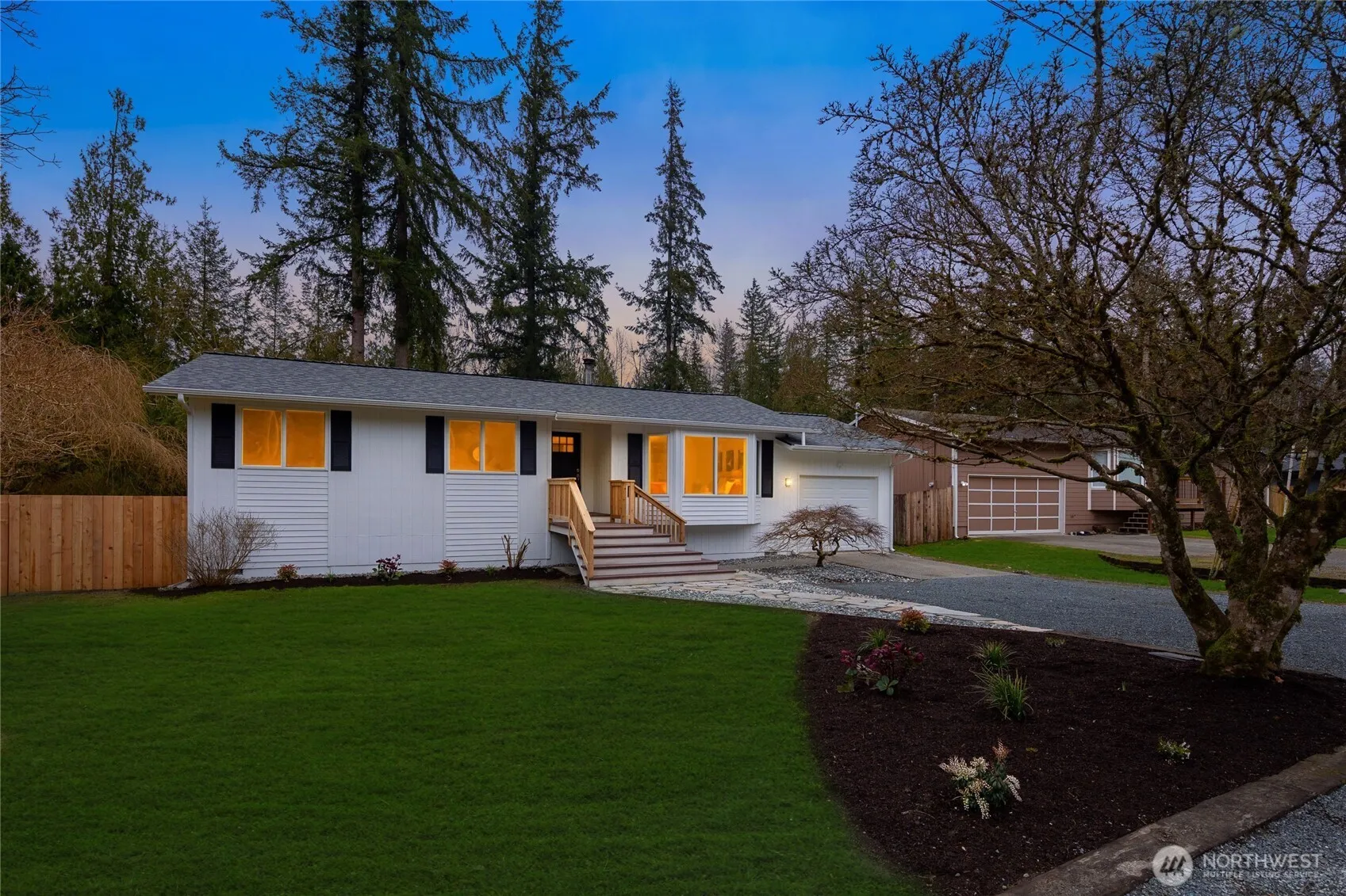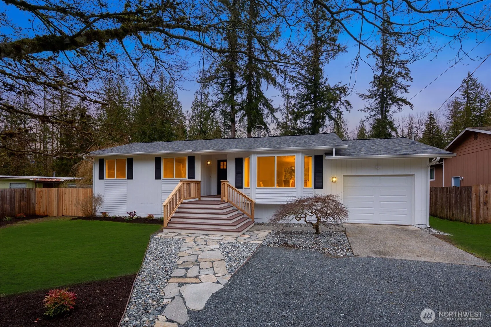 This beautifully renovated home offers everything you’ve been looking for! No detail has been overlooked, from the brand-new roof & garage door to the updated electrical system, exterior lighting, landscaping, & new decks. Inside, you’ll find new modern features like a stunning chandelier, custom trim, new doors throughout, & stylish interior lighting. The kitchen showcases new cabinets, quartz countertops, a chic backsplash, & premium stainless steel appliances. A cozy stone fireplace & updated bathroom elevate the charm. With a pre-inspection complete, this home is ready, allowing you to immediately relax & entertain in the serene, picturesque country backyard—the perfect setting for summer gatherings & peaceful moments. love your home!