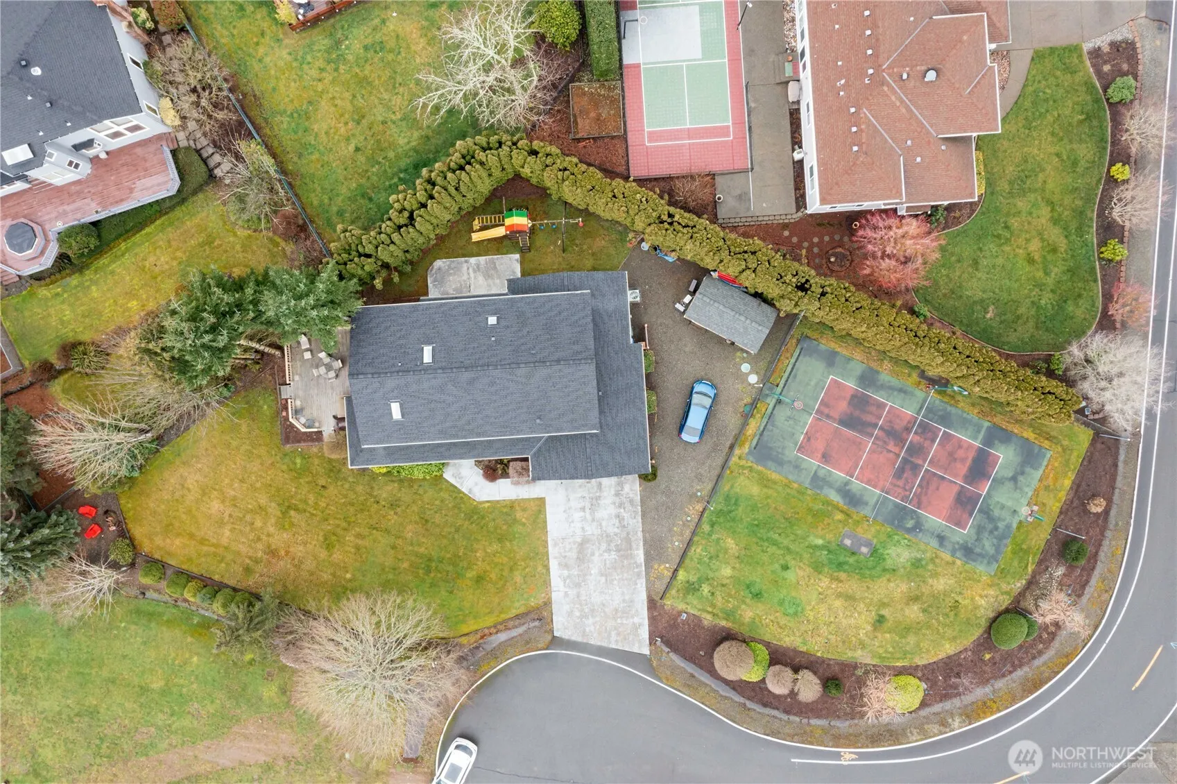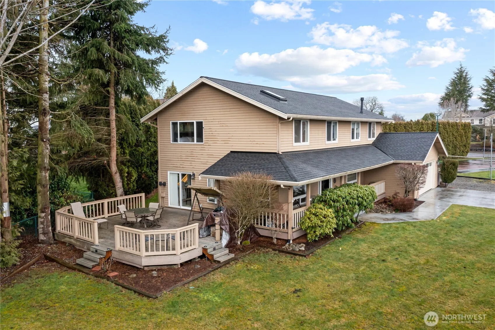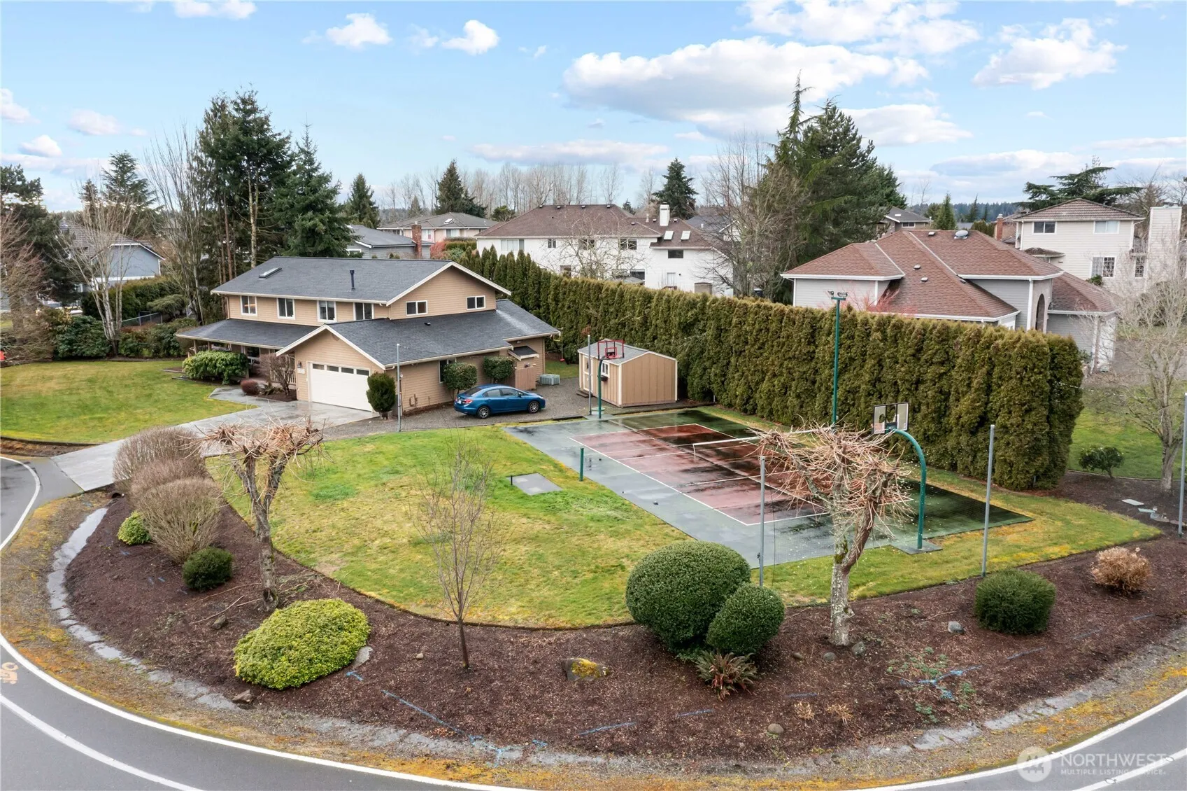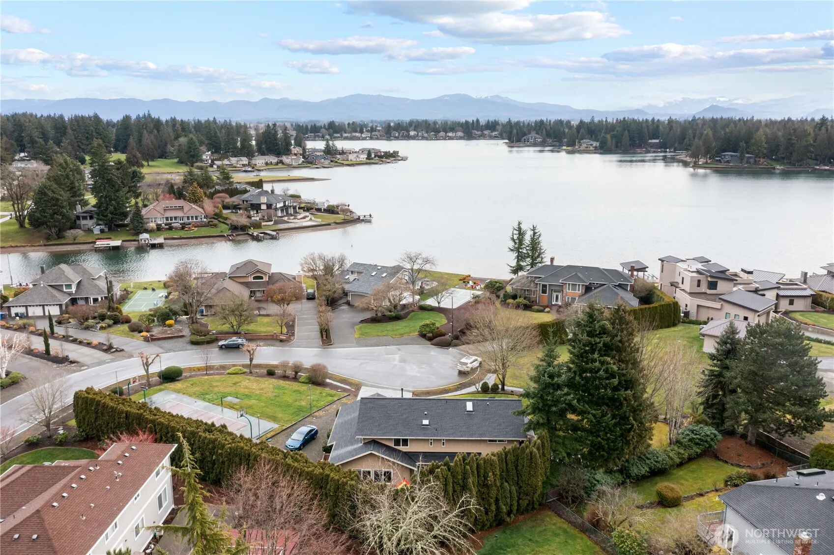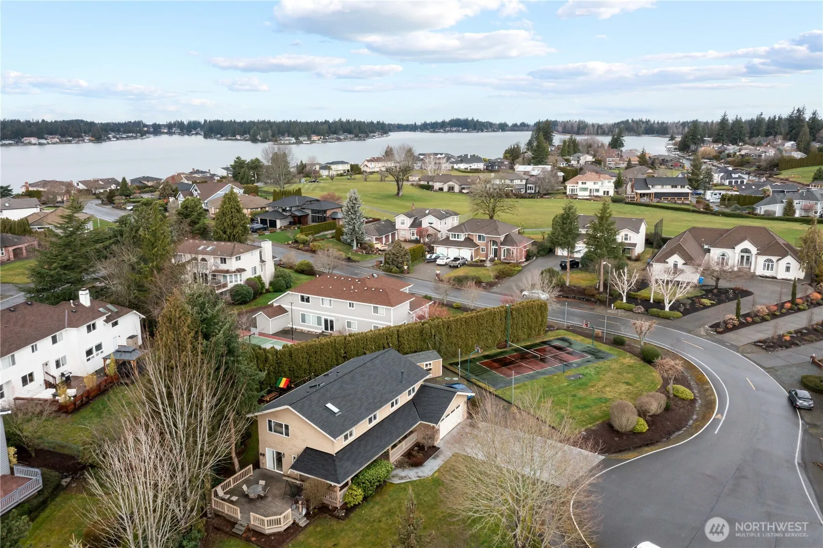 Charming cul-de-sac home on amenity-filled Tapps Island. Nestled on a spacious .43-acre lot, there’s room to roam & enjoy the outdoors with sport court & Mt. Rainier views. New roof & welcoming front porch greet you. Inside, find 5 bedrooms + office on the main. Formal living & dining rooms provide easy access to the deck, offering add’l entertaining. The open & airy great room flows seamlessly into the kitchen & eating areas with wet bar. Updated baths add a modern touch, while the durable Hardi Plank siding and refreshed crawl space ensure long-term quality. A/C. Highly-rated Dieringer School District. Resort living includes private roads, security, pool, beaches, boat launch, tennis & pickleball courts, outer island nature trail +more!