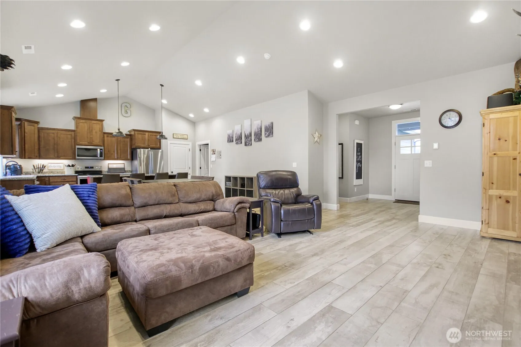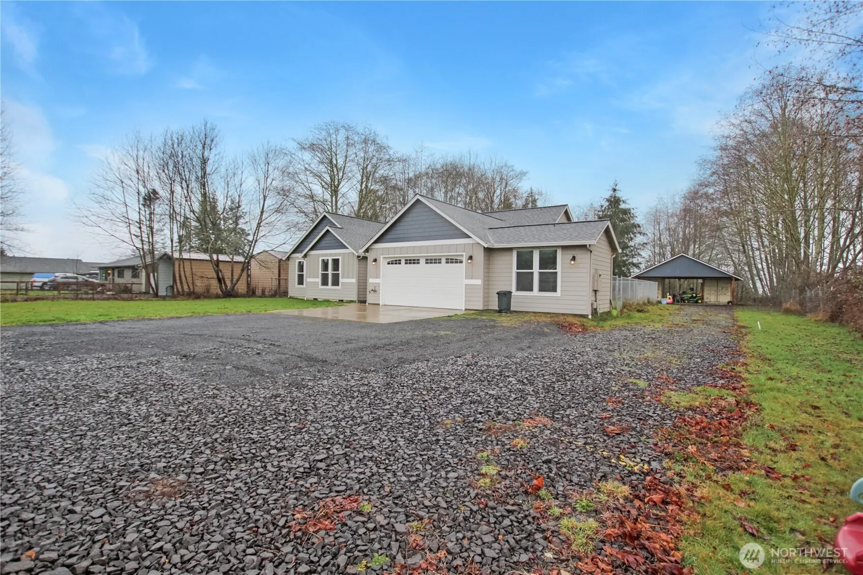 Stunning 3-year-old home with incredible features! This beautiful 4-bedroom, 2.5-bathroom home offers spacious, open-concept living with vaulted ceilings. The gourmet kitchen features custom cabinetry, granite countertops, and a large island. Enjoy a fully fenced backyard with a covered patio, perfect for outdoor entertaining. The large 2-car garage includes bonus storage/workspace. Additional shop space includes two shipping containers under a large, framed roof, set on an even larger poured concrete slab. Beyond the fenced yard, a 1/2 acre of peaceful seclusion with a firepit and trees along the perimeter awaits. This home combines modern luxury with thoughtful design.