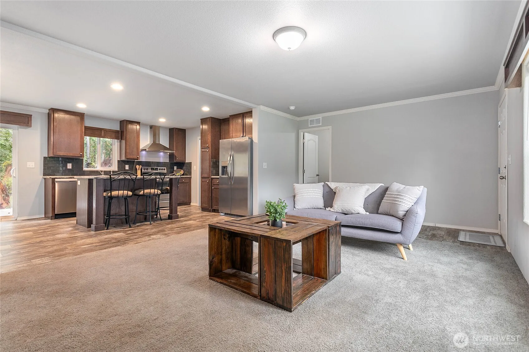 This charming 3-bedroom, 2-bathroom home sits on a spacious 5-acre lot, offering privacy and plenty of room to roam. The open floor plan features a bright living area, a well-equipped kitchen with ample cabinetry, and a cozy dining space. The primary suite includes a private bathroom, while two additional bedrooms provide flexibility for guests or a home office. Outside, enjoy serene country views, mature trees, and endless possibilities for gardening in your fenced back yard. Conveniently located with easy access to Bellingham and Burlington, this property is perfect for those seeking a peaceful rural lifestyle with modern comforts.