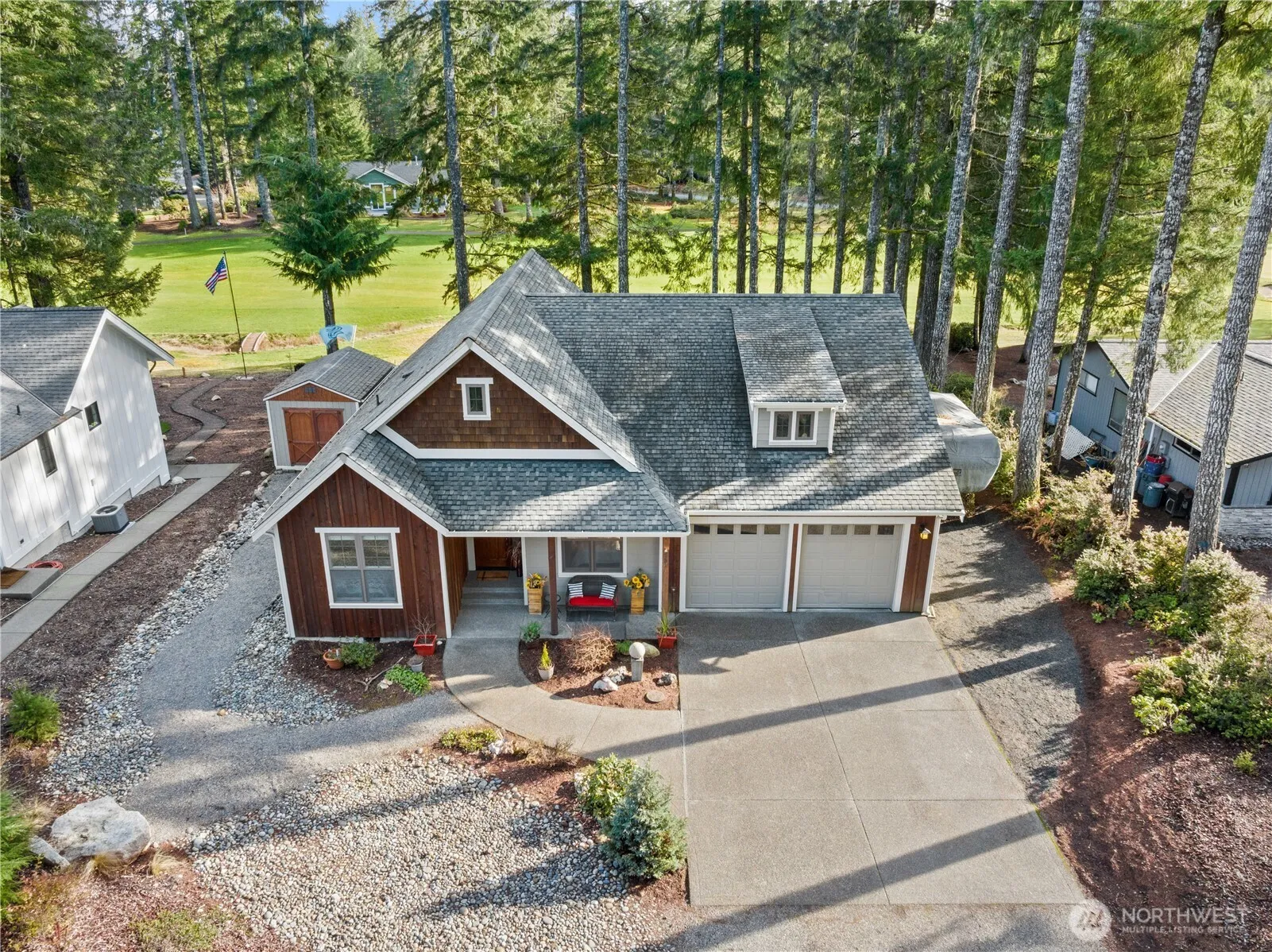 One of the Last Opportunities at Alderbrook Golf & Yacht Club for a custom-built, one-level home perfectly situated on the 2nd Fairway & only a short stroll to the clubhouse & pro shop. Offering a perfect blend of comfort, style & leisure, boasting breathtaking views of the lush golf course. Charming front porch welcomes you into the spacious great room w/expansive windows inviting stunning views inside. Kitchen w/sleek stainless steel appl’s, stylish cabinetry, & eat-in island. Primary bedrm w/ WIC & ensuite bath, plus 2 more bedrms! Enjoy year-round outdoor living w/covered rear porch to take in all four seasons. Active community w/ UNLIMITED golf, hiking trails, tennis & just down the hill to the world class Alderbrook Resort & Marina!