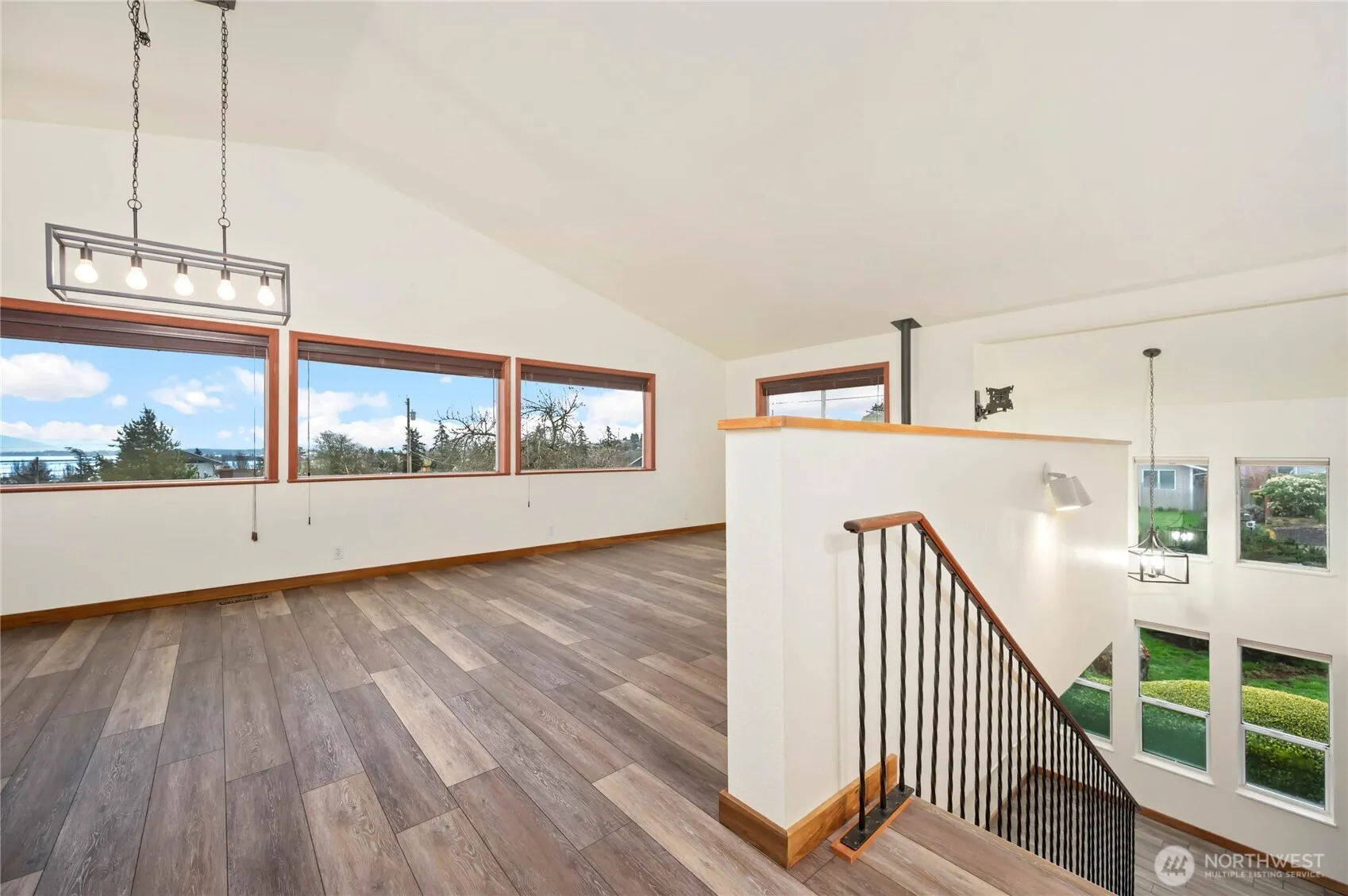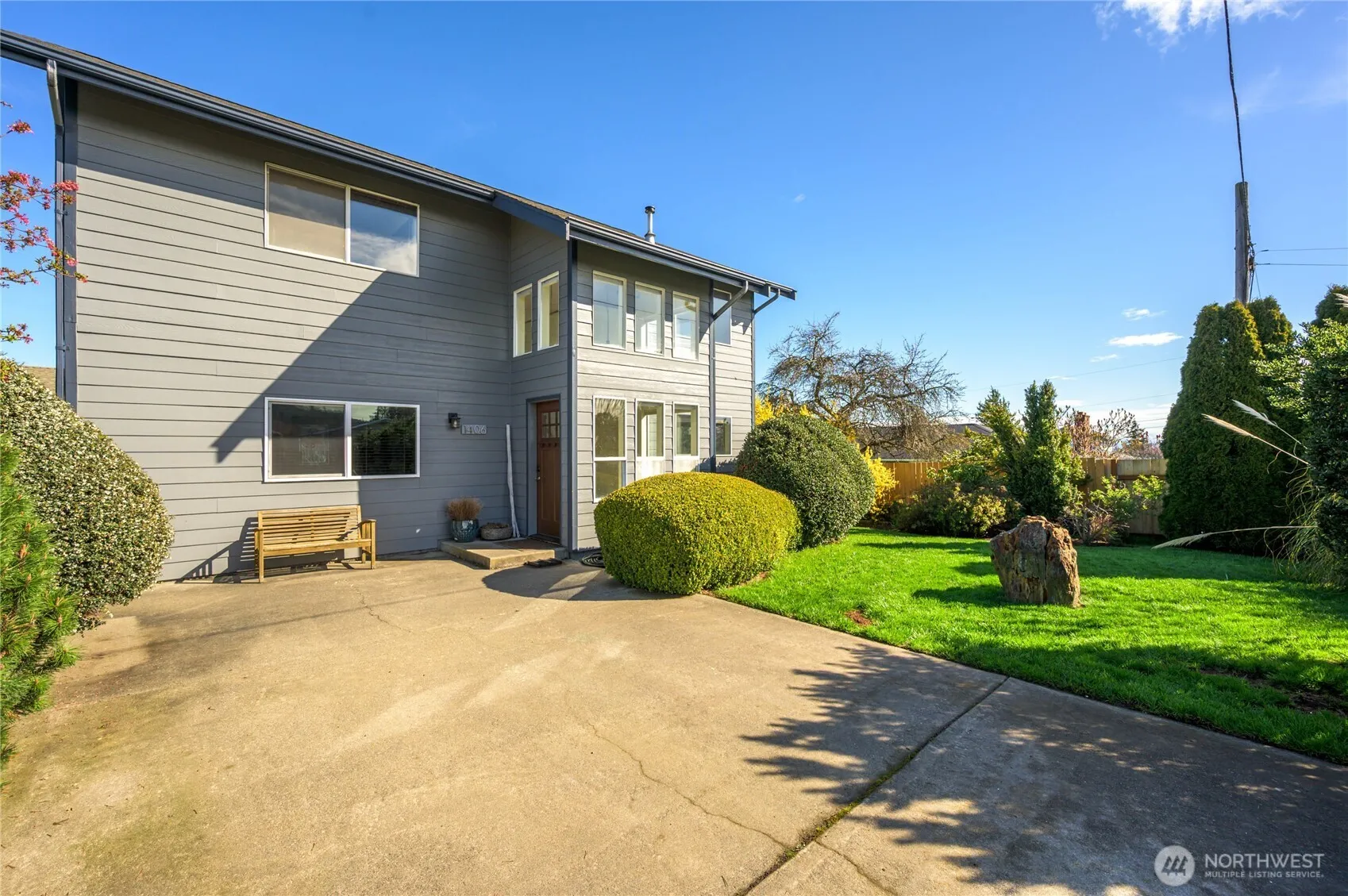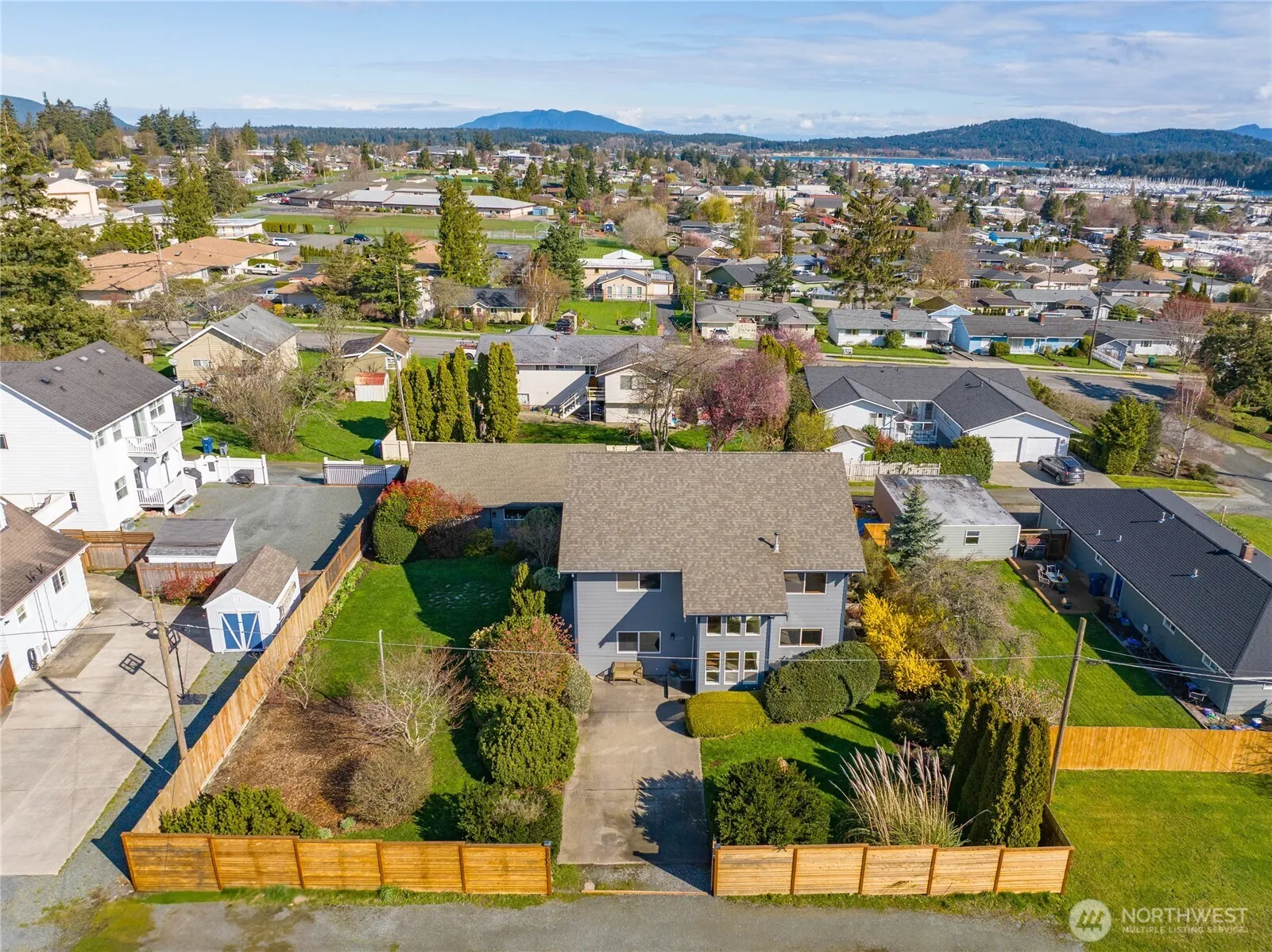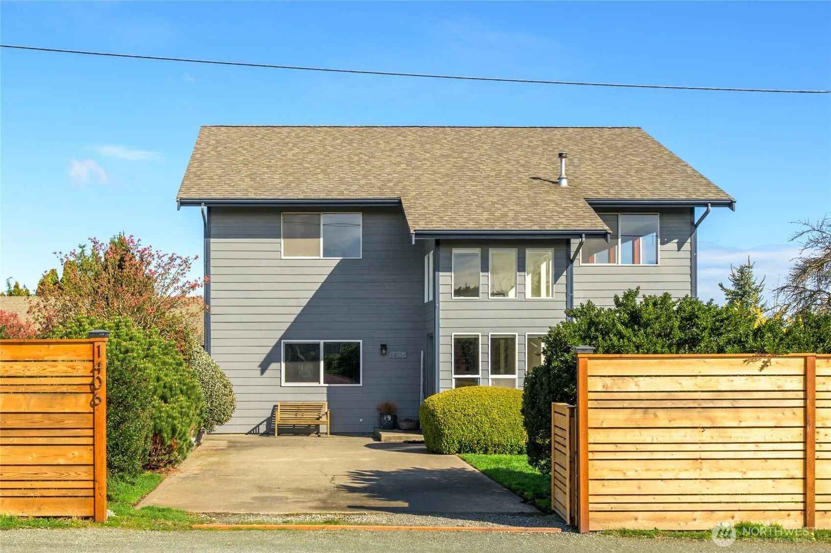 Centrally located in Anacortes and surrounded by mature landscaping, this home offers stunning views of Fidalgo Bay and Mt. Baker from a 9,000+ sqft lot. The 3bd/2ba main home features vaulted ceilings and abundant natural light creating an open and inviting atmosphere. Additional amenities include an expansive primary suite, updated kitchen and baths, granite countertops and poplar millwork throughout, ceramic tile and LVP flooring, radiant heat in select areas, a tankless water heater, and Hardie siding. A fully finished studio ADU with a private entrance and in-unit laundry adds flexibility for guests or rental income, all with ample parking. The detached garage includes power, water, and approved permits for a second ADU conversion.