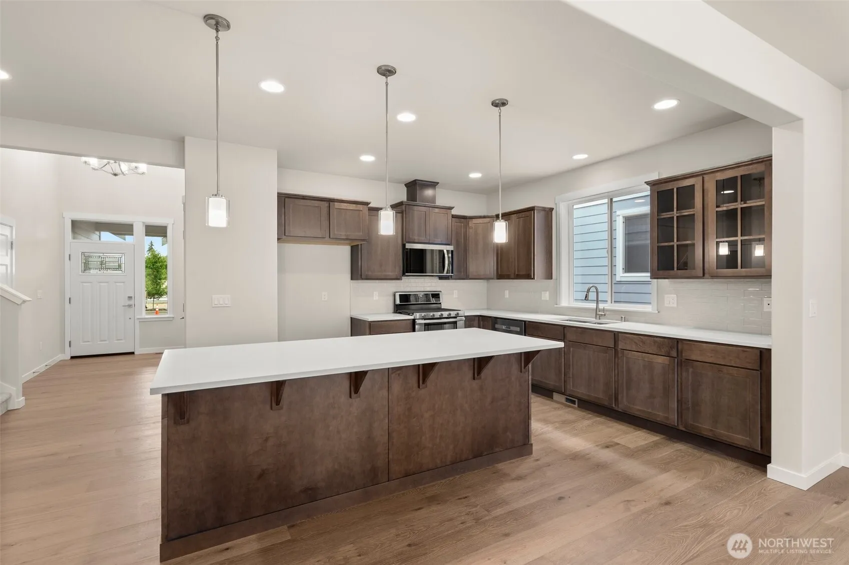 Rob Rice Homes presents the Pine Plan in Skyview Estates! The main level offers the primary suite, two add’l bedrooms, and a full bath, while the upper level boasts a versatile secondary suite with a bedroom, bonus room, and full bath. The kitchen impresses with quartz countertops, a full tile backsplash, “Cocoa” Maple shaker cabinets, and a gas range with double oven. Highlights include quartz counters throughout the home and engineered hardwood in the entry, kitchen, and dining area. Enjoy the covered patio, privacy fenced yard, & fully landscaped. Energy-saving features include solar panels, a heat pump, & an electric hybrid water heater. Prime Tumwater location, close to schools & shopping.