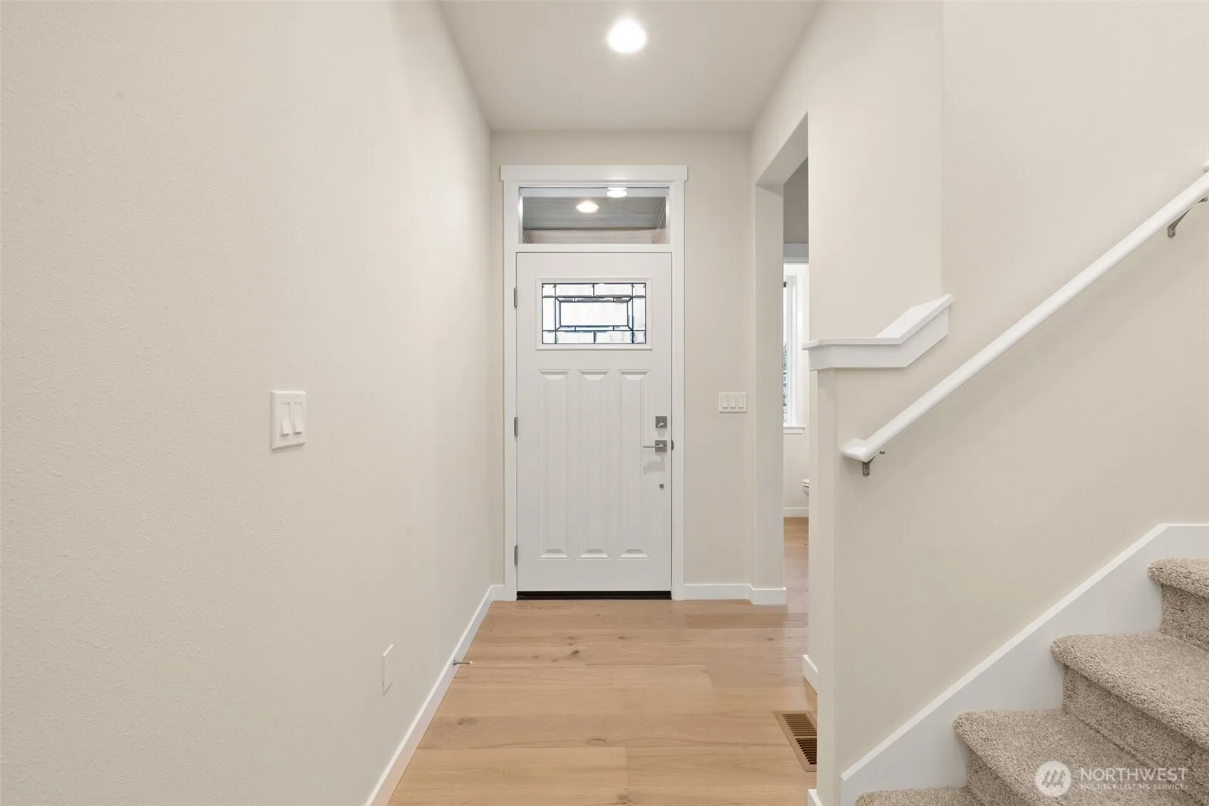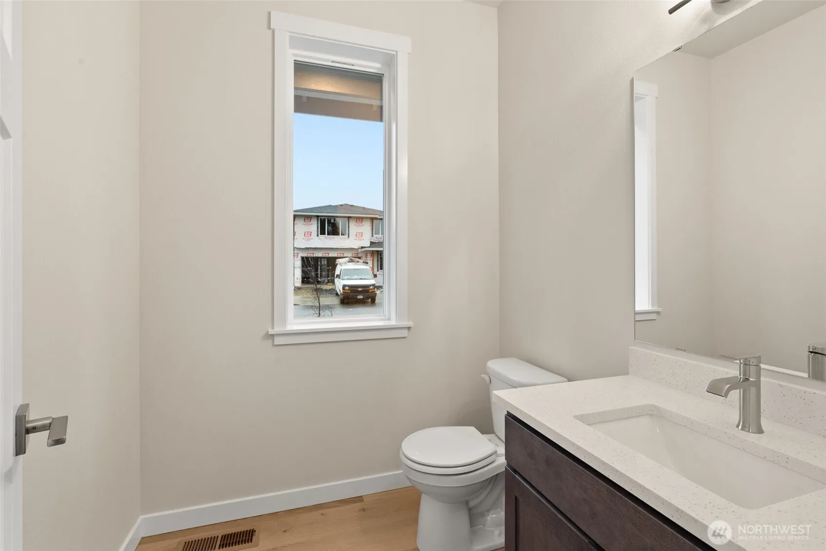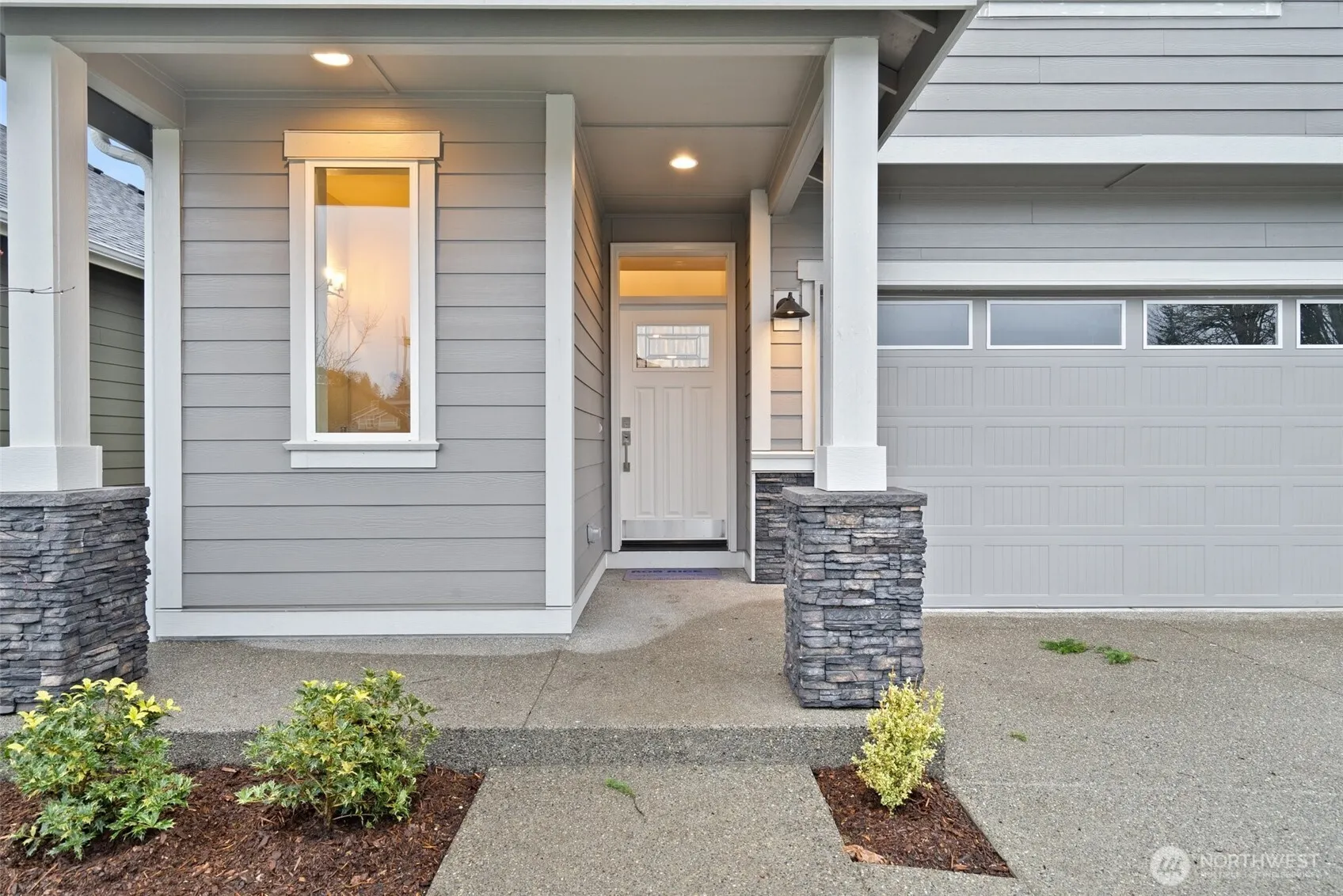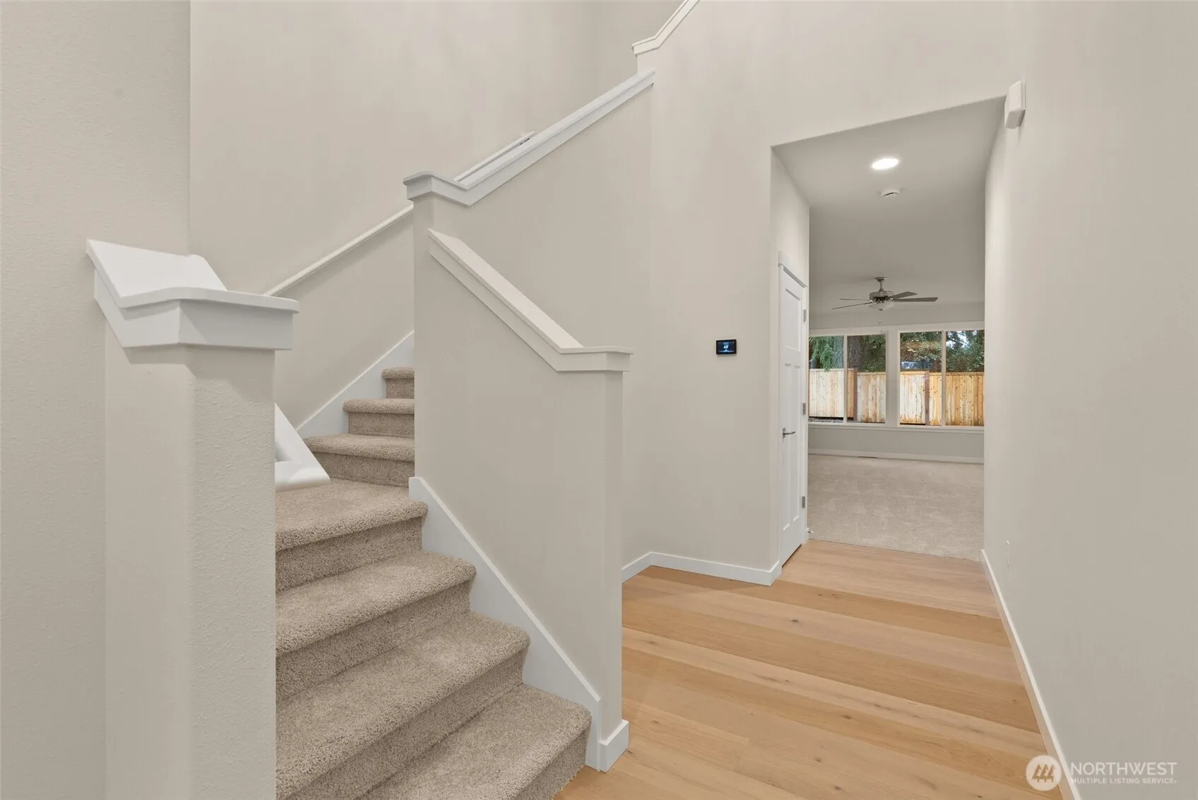 Skyview Estates in Tumwater by local builder Rob Rice Homes. The two-story Birch plan spans 2,432 sq. ft., featuring four upper-level bedrooms—including an oversized one ideal as a bonus room—and 2.5 baths. The stylish kitchen showcases quartz countertops, Graphite Maple shaker cabinets, a gas range/double oven. Hardwood floors extend through the entry, kitchen, and dining area, complemented by crisp white trim and modern finishes. Quartz surfaces throughout. Covered patio and a fully landscaped yard with privacy fencing. Designed for energy efficiency, this home includes solar panels, a heat pump for year-round comfort, and an electric hot water heat pump. Conveniently located near Schools, Costco, and I-5 access!