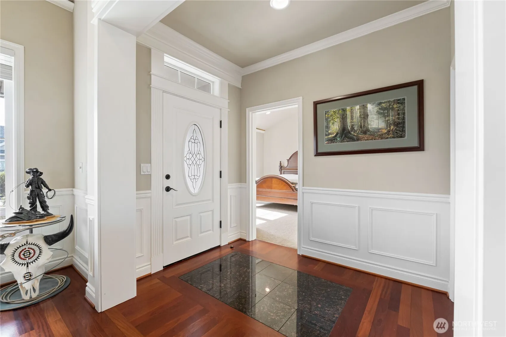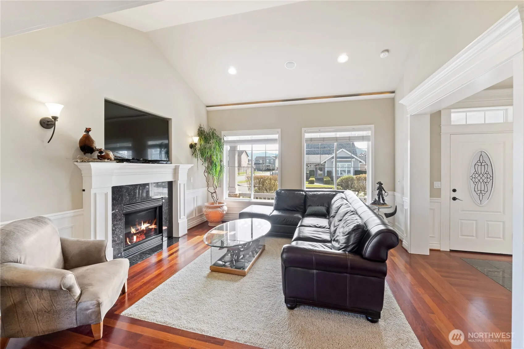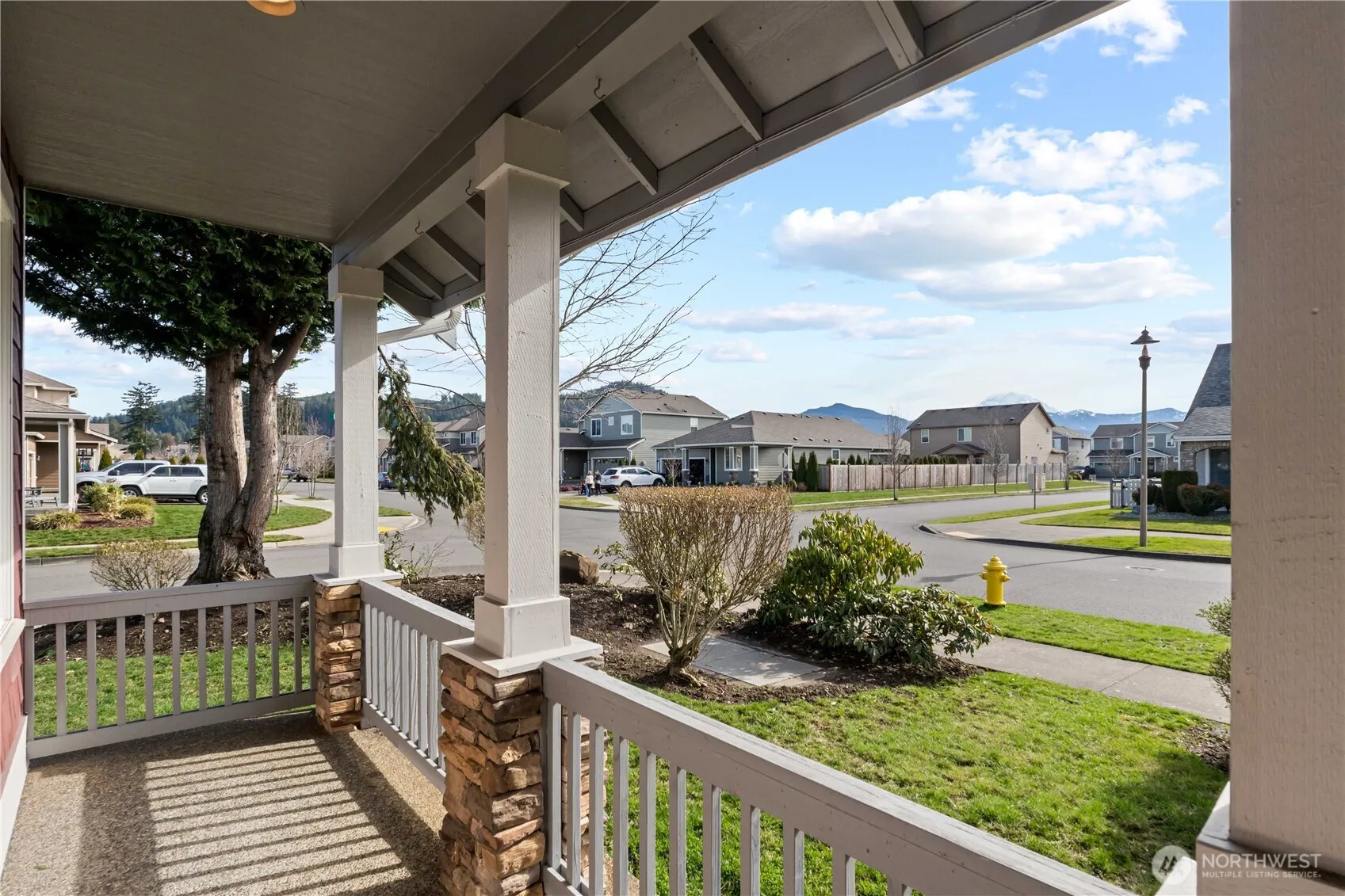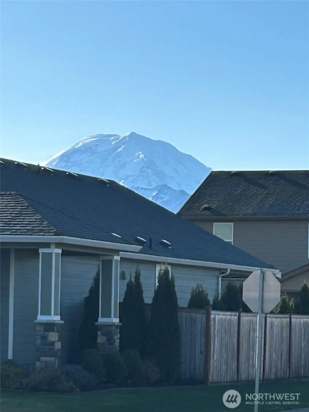 Well maintained 2,480SF, 4 bed, 3 bath home w/ Mt Rainier & territorial views. Forward thinking floor plan w/ primary suite & 2 additional bedrooms on the main plus a lg. bonus room and Jr. suite upstairs w/ private full bath & kitchenette. Open concept kitchen w/ stainless steel appliances, slab granite countertops, gas cooktop, island bar seating & walk-in pantry. Owner’s suite w/ vaulted ceiling, private 5pc bath, dual sink vanity & walk-in closet. Utility room w/ mud sink & cabinets. Nicely appointed finishes w/ hardwood & tile floors and extensive trim package throughout. 2-car attached garage w/ additional concrete off-street parking. Forced air gas furnace w/ newer AC unit. Fresh exterior paint in 2023.