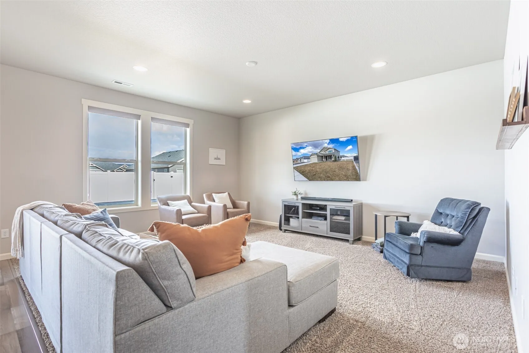 Welcome to this beautiful 4 bedroom, 2.5 bathroom home in a friendly neighborhood, offering an open-concept design for modern living. House has many updated features including: quartz countertops in kitchen and bathrooms, added recessed lighting in multiple rooms, 9 ft ceilings on first floor, fully landscaped with underground sprinklers and curbing, extended back patio with sun shades for entertaining, fully fenced, and attached two-car garage complete with epoxy floor and built in storage shelves. Home also has parking for an RV and outdoor storage shed.