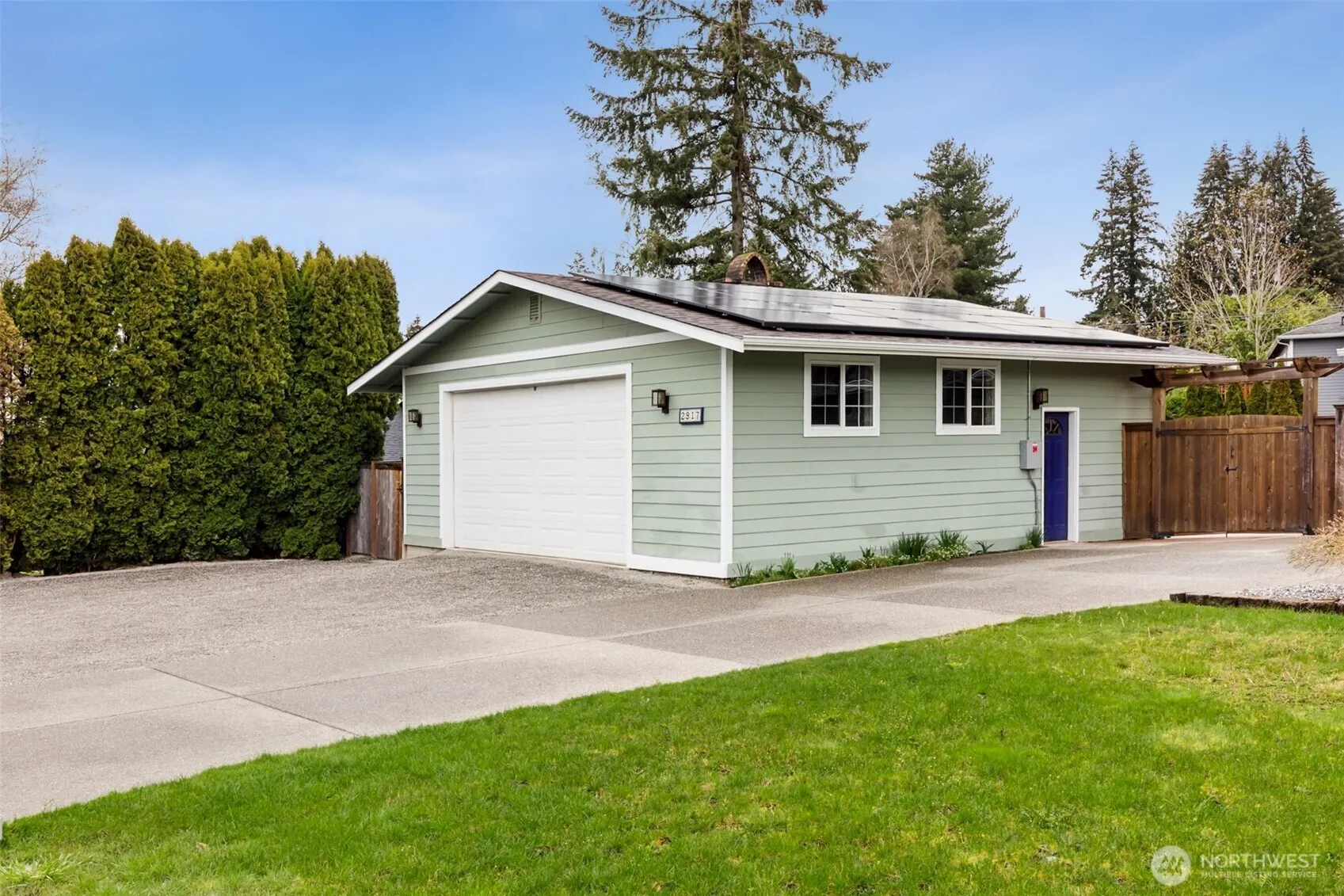 Alluring, Pristine, Inspiring home with primary bedroom on main floor in desirable University Place’s award-winning school district. This meticulously cared for home has at least $400k in professional upgrades! Gourmet Kitchen with custom cabinets, Café series appliances, built-in seat with storage, farm sink, & more is complimented by the gleaming pre-finished hardwood floors, and open concept that is perfect of entertaining and everyday living. Brand New $54k Solar Panel system sits upon recently installed roof, and the exceptional grounds offers plentiful parking along with 2 garages, one of which is 900 SF with separate panel & 240V for compressor, etc. The finished, insulated shed with power, heat & A/C overlooks mature landscaping.