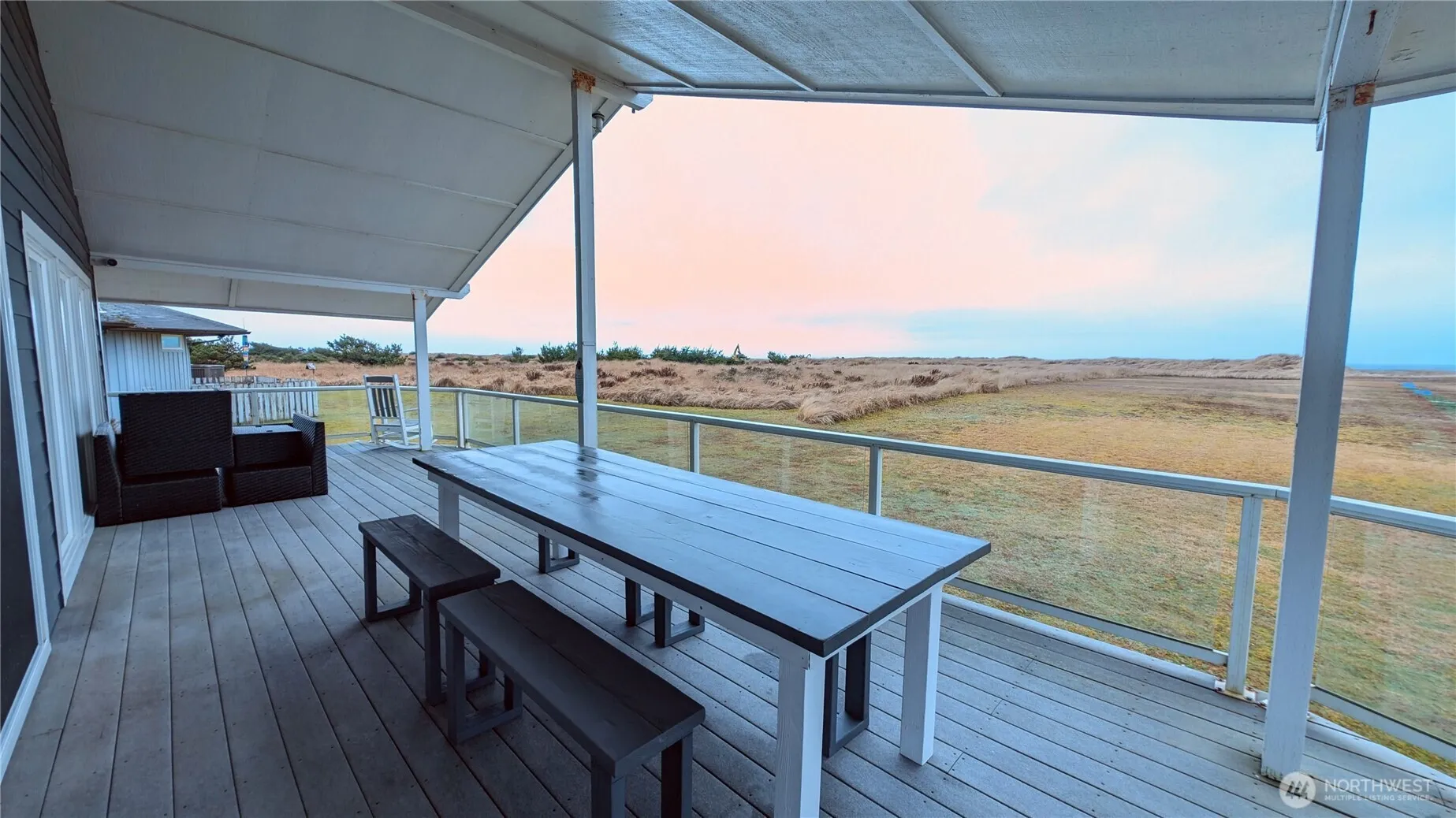 Welcome to coastal luxury! This oceanfront (WUB) gem offers breathtaking ocean views and an open concept floor plan. The great room features vaulted ceilings and an expansive wall of windows, showcasing dramatic views of the sunset, dunes and ocean, creating an awe-inspiring backdrop to everyday living. Sliding glass doors lead to the large covered trex deck, ideal for entertaining and soaking in the fresh ocean breeze. This incredible beach home has 3+ BR/1.75 BA, private deck off the primary bedroom, a large eat-in kitchen, dining/living room, a separate family room, 2 fireplaces, laundry room w/ sink, 2 car garage w/ partially fenced yard. Low HOA fee covers water & garbage. A true coastal gem just waiting for you!