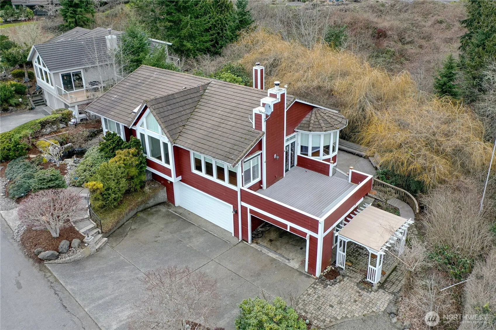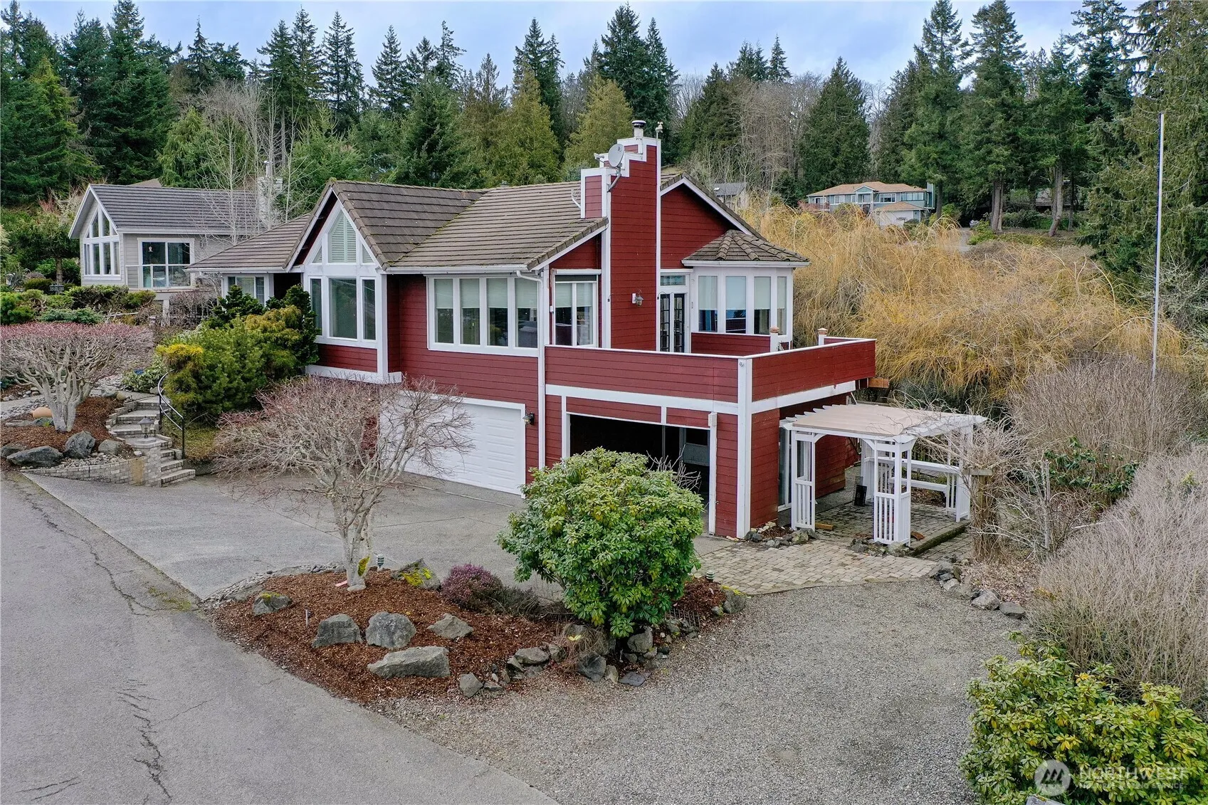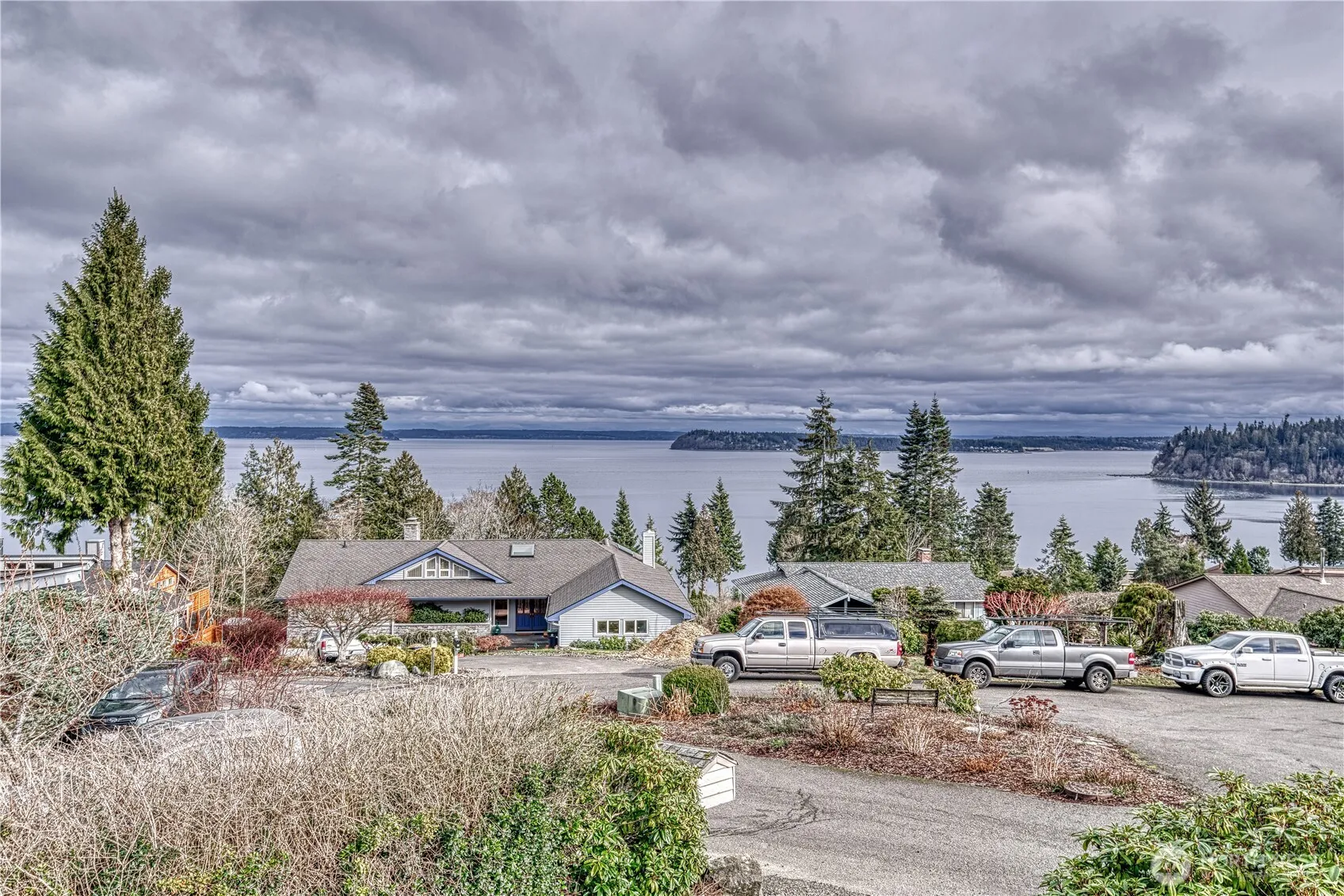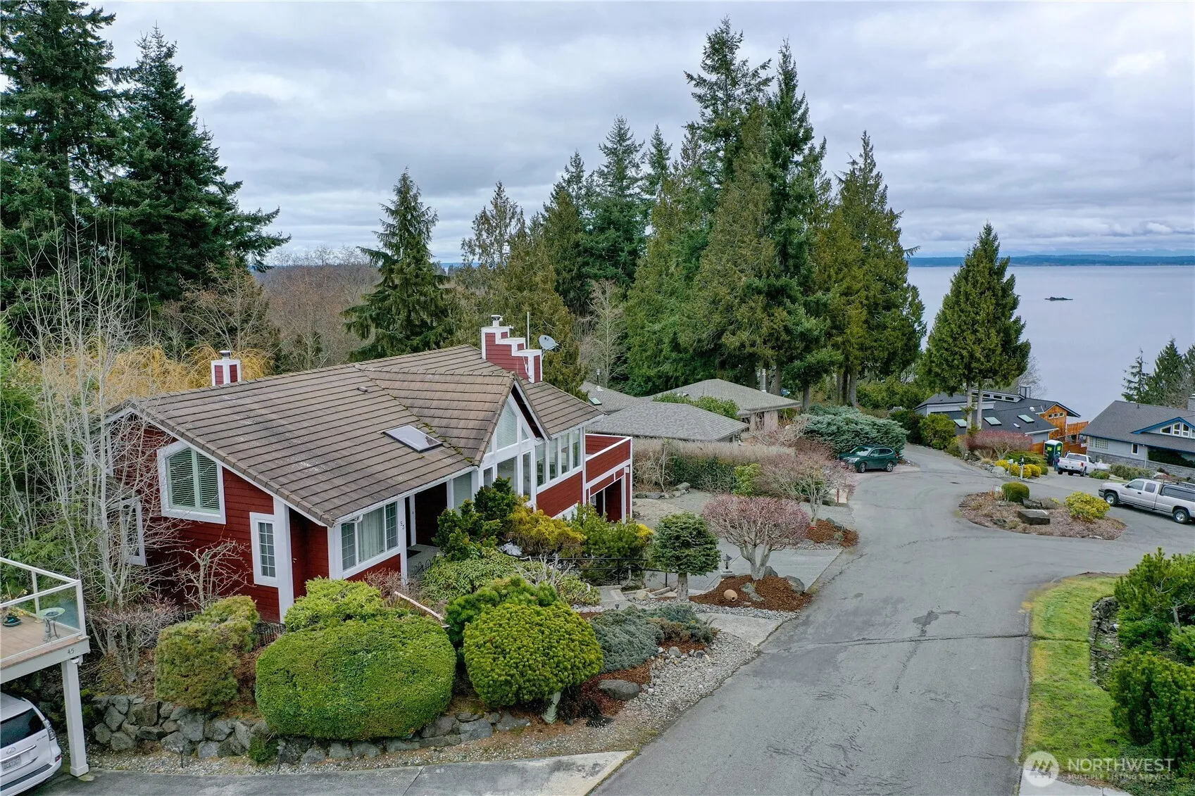 Beautifully upgraded home located on a cul-de-sac with spectacular panoramic views of Puget Sound and Whidbey Island. Privately situated on an oversized lot, this charming home includes modern upgrades: detailed trim and woodwork, coffered/vaulted ceilings, quartz countertops, energy-saving geothermal furnace, central AC, motorized blinds and new carpet throughout. The oversized master bedroom includes a bay window and a cedar-lined walk-in closet. Spacious kitchen with breakfast nook and pass-thru to formal dining. Bonus room could be used as office or a cozy sunroom. Downstairs has two large bedrooms (one Murphy bed), an oversized laundry room/kitchenette with a door to the back patio – generational living at its best.