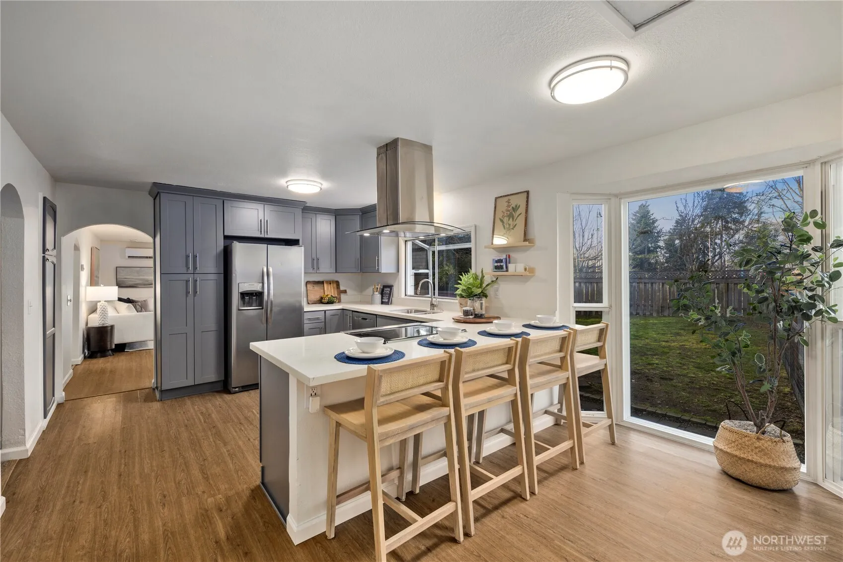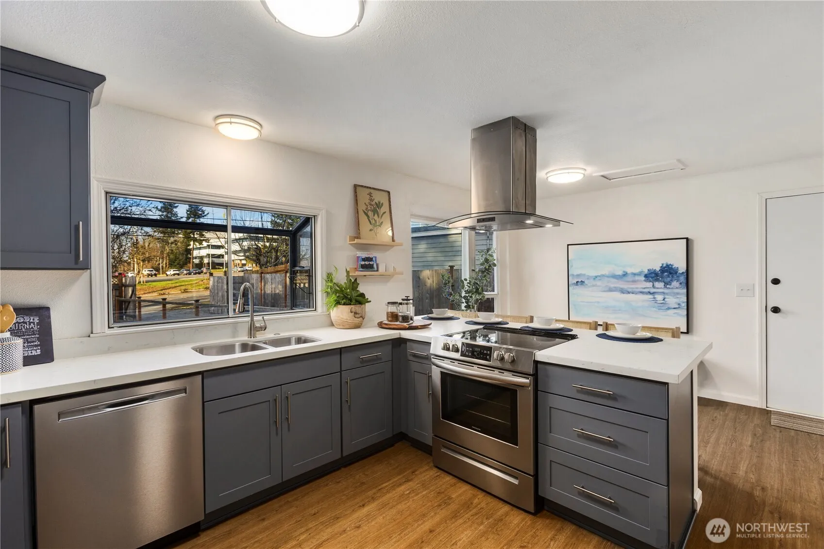 Welcome to an adorable little gem w/big fenced yard & front deck. Wonderful garden space in backyard. A newly built firepit provides a great place to watch the stars. Raised garden beds offer the urban farmer homegrown vegetables. Updated interior has a remodeled kitchen w/quartz countertops & stainless appliances. The generous living room has fireplace insert wood burning stove. Two large well appointed bedrooms. One can be used for guests or office. Many updates including new roof, gutters, upgraded electrical, new attic insulation, ductless mini-splits w/AC & newly painted interior & exterior. New fence, storage shed, ample driveway parking plus carport. Minutes to park, light rail, waterfront and retail. Perfection!