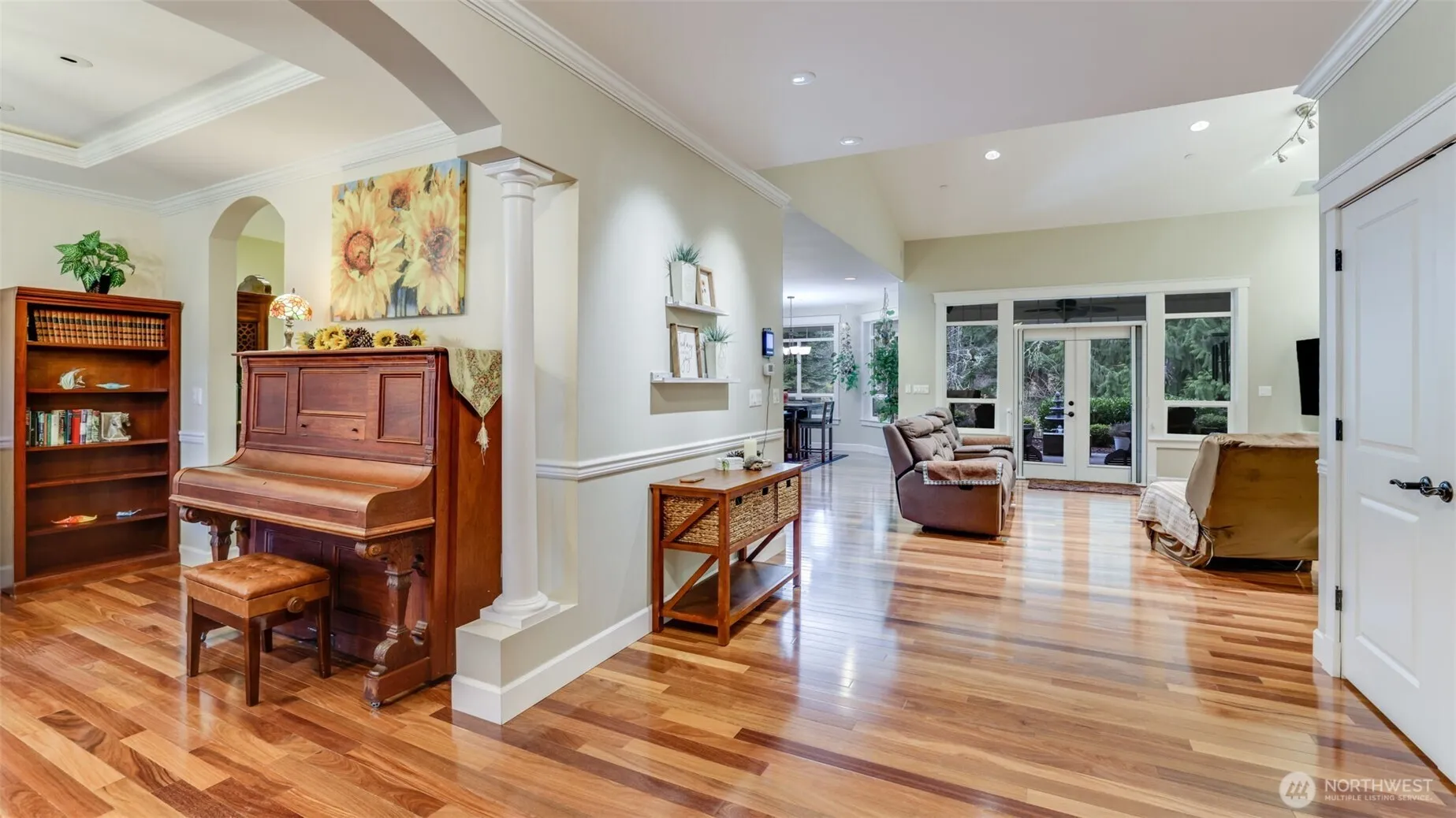 Five acres of land with a custom single-story home, a five-stall barn and detached garage. 3 bedrooms plus bonus, 2.5 bath home, living room with14ft ceilings, and covered front and back porch. Double doors welcome you into a bright foyer with beautiful hardwood floors throughout. An open floor concept with flowing layout. French doors with retractable screens that lead to your fenced backyard. Large primary suite and French doors to the porch. A primary bath with walk-in shower and large jetted tub. Heated floors and bidet seats. Attached garage with EVSE. The barn features a heated tack room, water heater for the horse wash, a loft and 4 pastures. Shop with two garage doors and two finished rooms. Peaceful country living with city access!