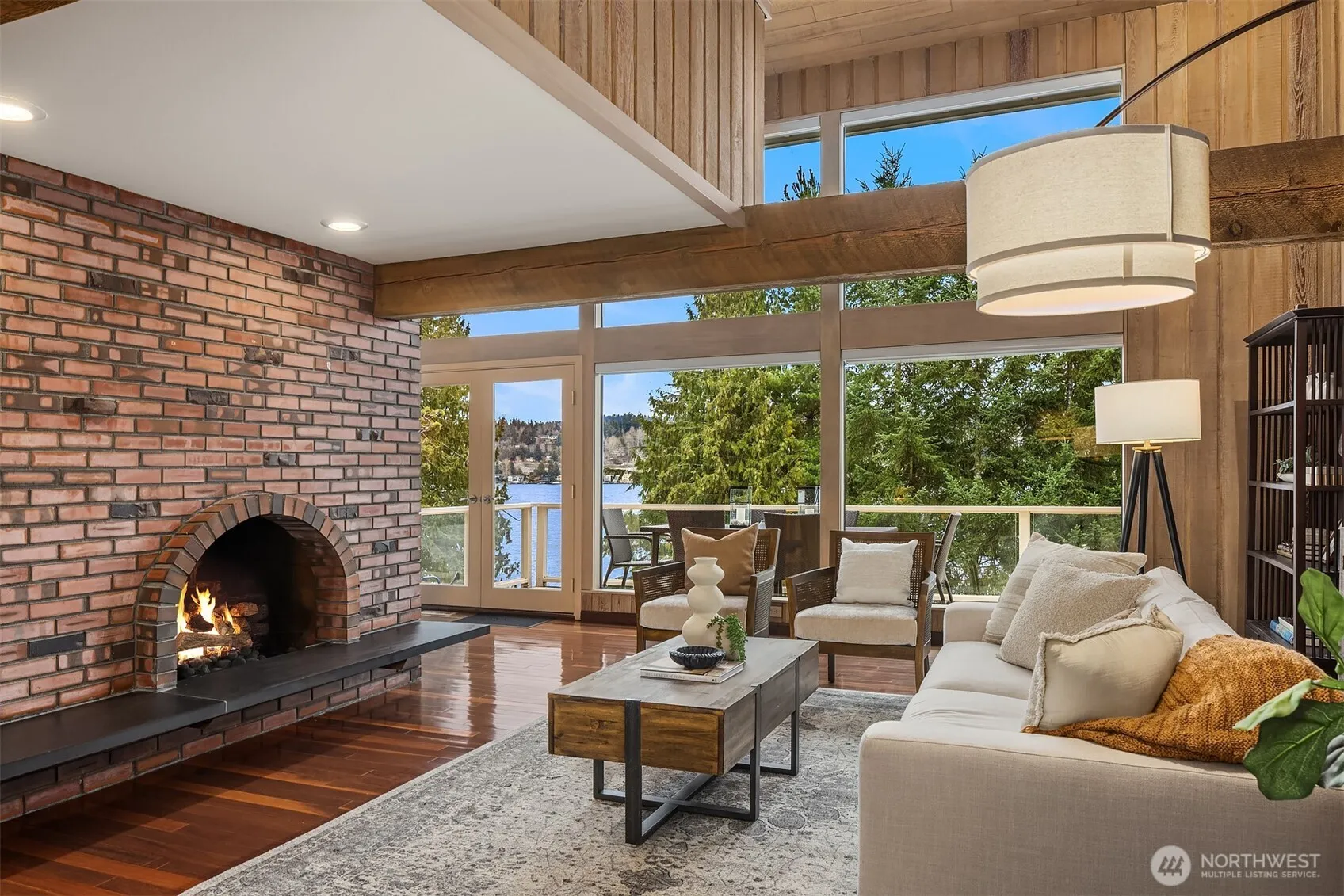 Awaken to sunrise over Lake Washington in this Pacific NW retreat, where architecture & nature unite. Nestled on the island’s eastside, this home blends vertical cedar, rustic beams & soaring ceilings, with walls of glass framing breathtaking lake views. A dramatic two-story entry leads to the great room, where a cozy fireplace adds warmth and charm. The kitchen seamlessly connects to the dining and living areas, opening to a spacious deck for alfresco dining. Upstairs, the primary suite offers stunning views, an ensuite bath, office + walk-in closet. The lower level features a rec room, two bedrooms + access to a yard with a patio, grassy play area and hot tub. Minutes from top schools, trails, parks, and shopping—PNW living at its finest