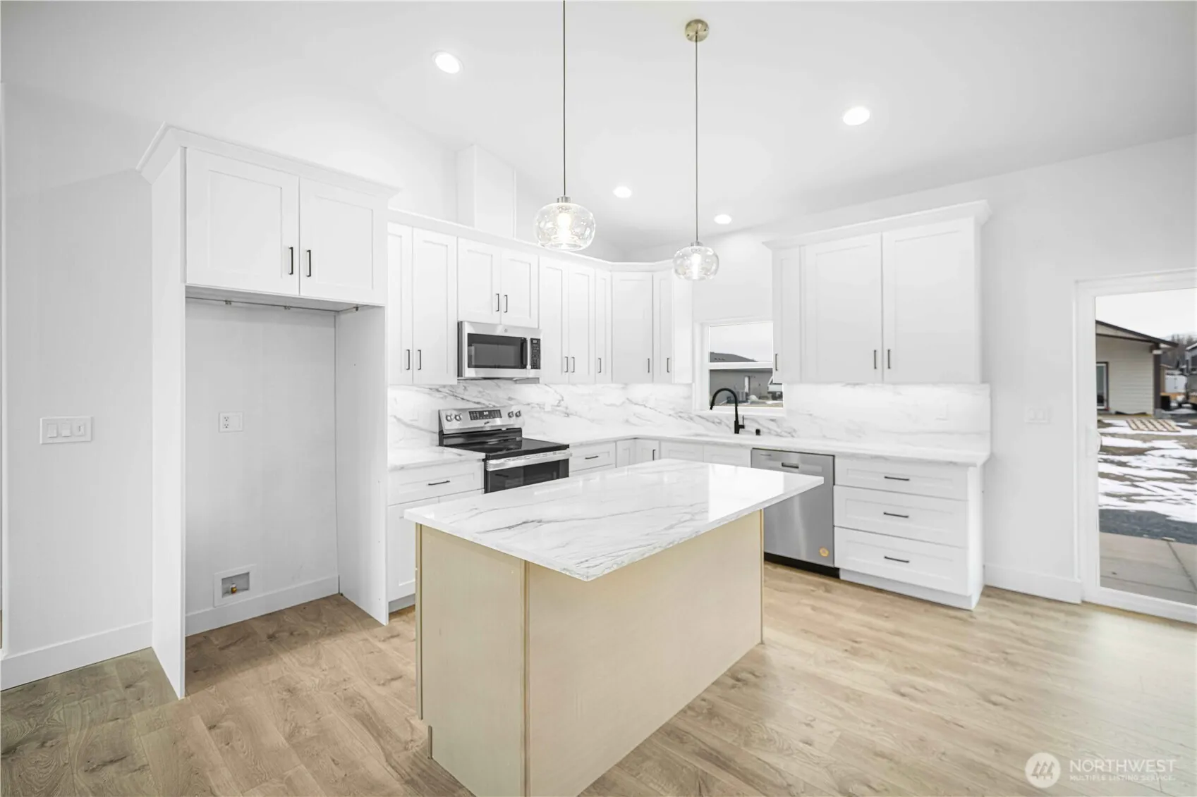 Nestled on a spacious lot, this beautifully customized 3-bed, 2-bath home offers style & functionality. The open great room with vaulted ceilings enhances the design, making the home feel even larger. The kitchen boasts quartz countertops, a full quartz backsplash, soft-close cabinets, under-cab lighting, & a walk-in pantry. The primary bedroom boasts a walk-in closet that opens with a barn door & also comes with an ensuite bath that features a fully tiled custom shower with a bench & extra towel storage. The home comes with a nice-sized laundry room. Outside, enjoy a large porch with beautiful wood finishes. Use the builder’s preferred lender to take advantage of a $2,500 credit towards closing costs, or a new fence! Brand new landscaping!