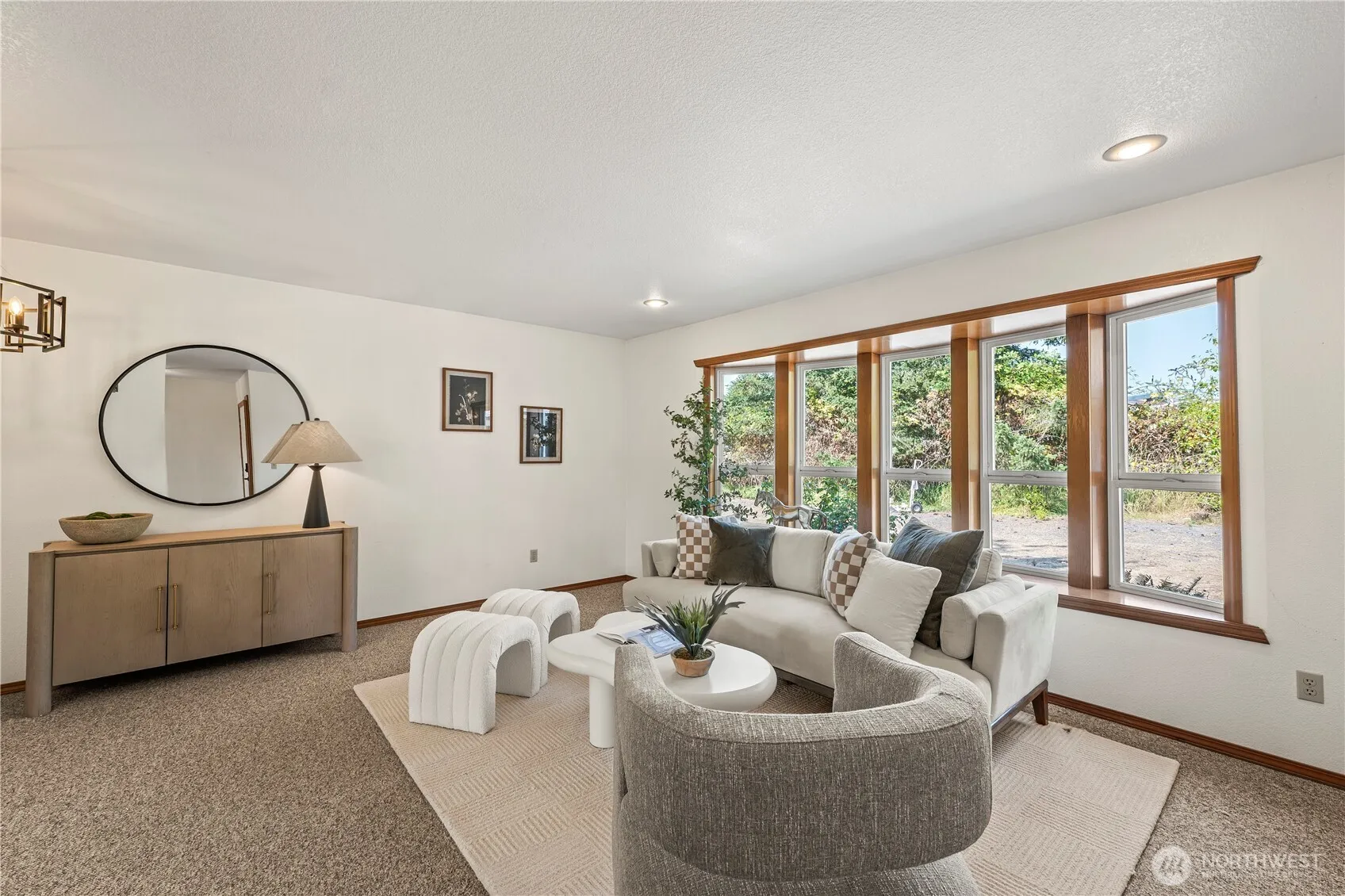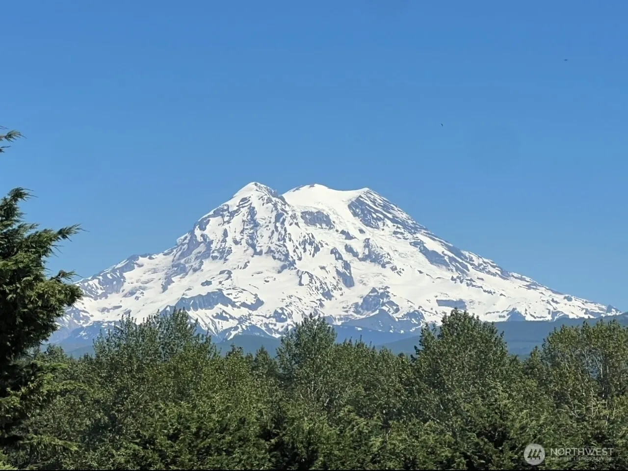 Escape to 5.65 acres of breathtaking Mt. Rainier views! This beautifully updated 1,763 sq. ft. rambler features 3 bedrooms, 1 ¾ baths, and an attached 2-car garage. Modern farmhouse charm shines throughout with hardwood floors, quartz countertops, new stainless steel appliances, skylights, French doors, and a cozy wood-burning stove. The open living space and primary suite seamlessly connect to an expansive wrap-around deck, perfect for indoor-outdoor living. With fruit trees and ample space for pets, this private retreat offers the ideal balance of comfort and tranquility. Don’t miss this rare opportunity!