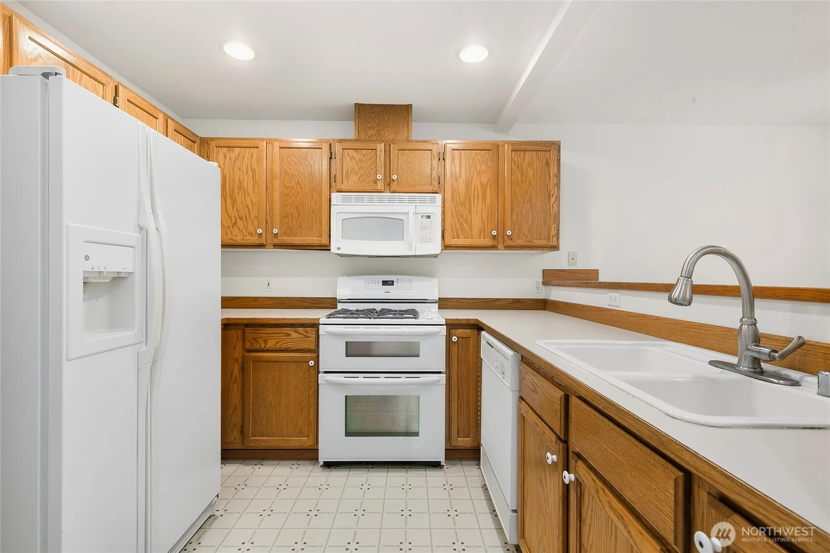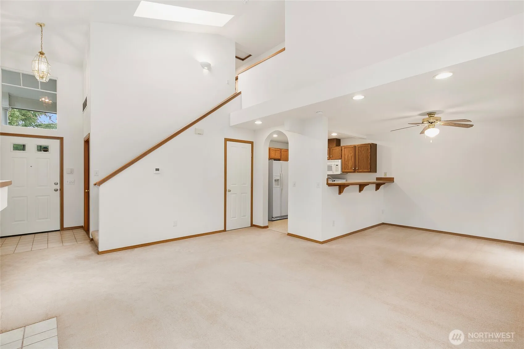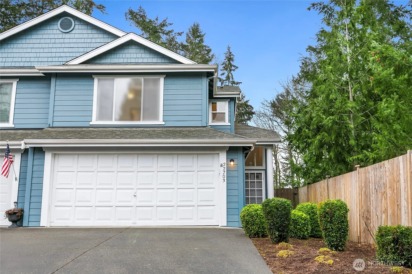Peaceful and private end-unit near Lake Wilderness, bordered by greenbelt on three sides with no neighbors to the north, east, or west. Lot extends down a wooded slope for added privacy and natural views—greenbelt ownership enhances the secluded feel. West-facing floor-to-ceiling windows in the main living area overlook the greenbelt. Features include a gas fireplace, skylight, white panel doors, and ceiling fans in both bedrooms and dining area. Laundry conveniently located upstairs. Full-length covered patio (8 ft wide) with cedar and plexiglass cover, plus gas line for BBQ or fire pit. Attached 2-car garage with opener and security system. Just a 10-min walk to Lake Wilderness trails. Crystal Mountain Resort less than 50 miles away.