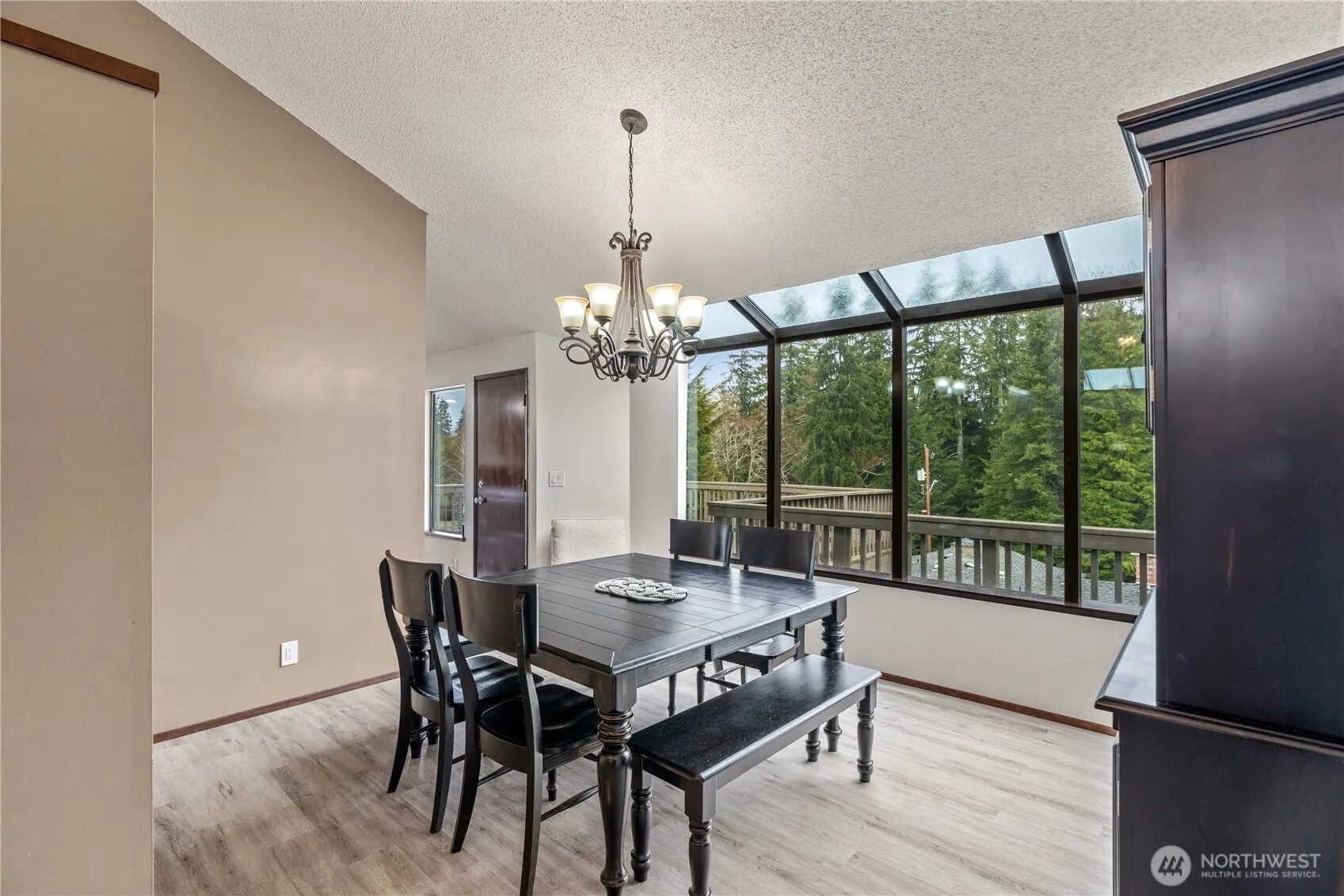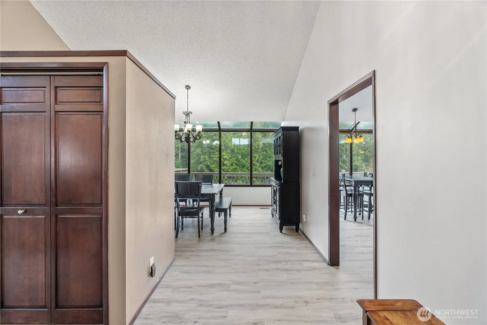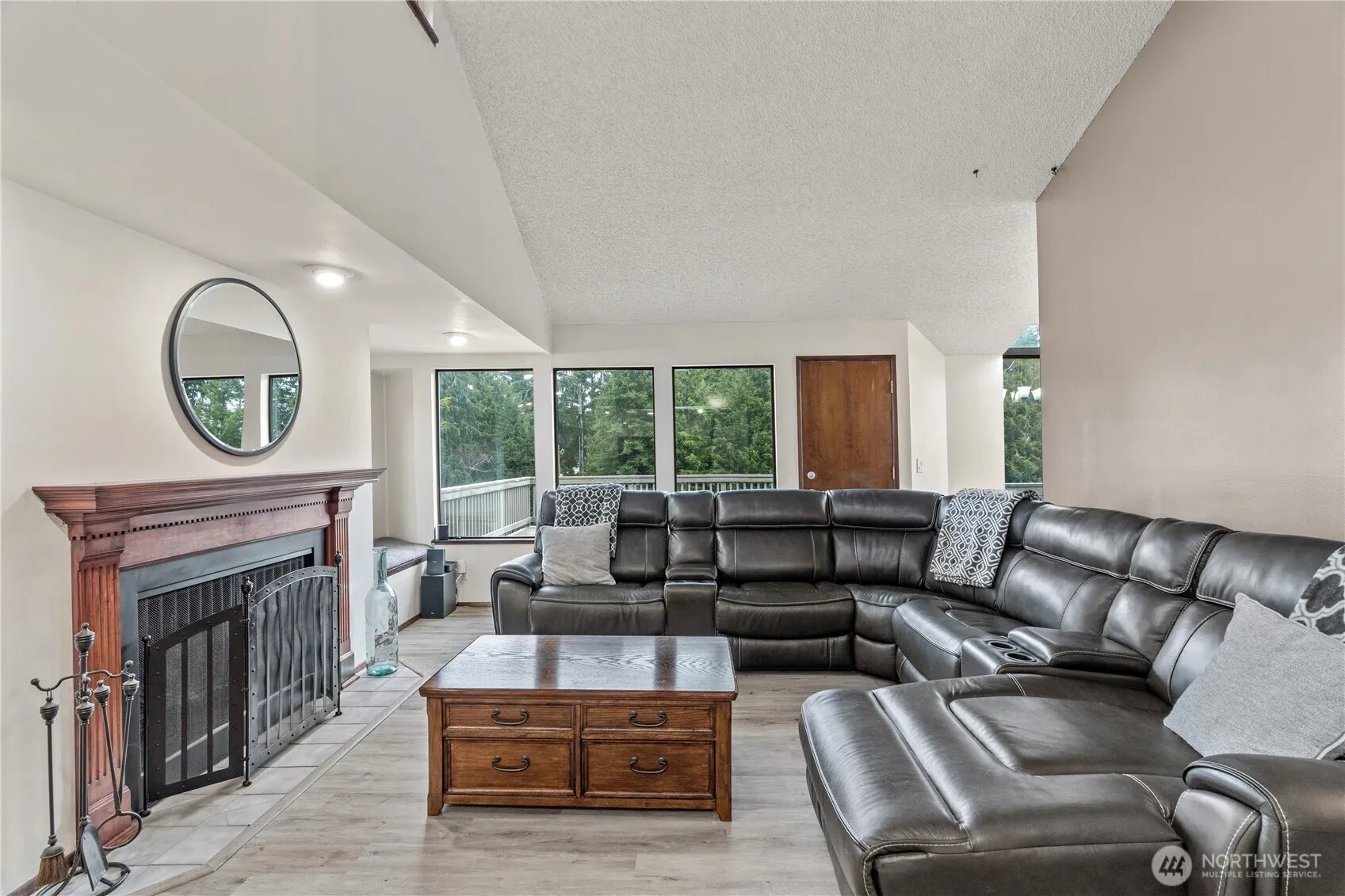 Spanning 2,551 sq. ft., this 3-bed, 2.5-bath home offers versatile living with stunning open ceilings and abundant natural light. The main-level primary suite features a walk-in closet and ensuite bath. Upstairs, enjoy a spacious kitchen, guest half-bath, and cozy fireplace. Downstairs boasts two bedrooms, a full bath, large rec room (or 4th bedroom), plus ample storage—could be a perfect mother-in-law suite. Entertain outdoors on the 692 sq. ft. deck, fenced yard, patio, and a hot tub. Two-car garage with finished storage above. Skylights, two fireplaces, new carpet, and LVP flooring complete this inviting home!