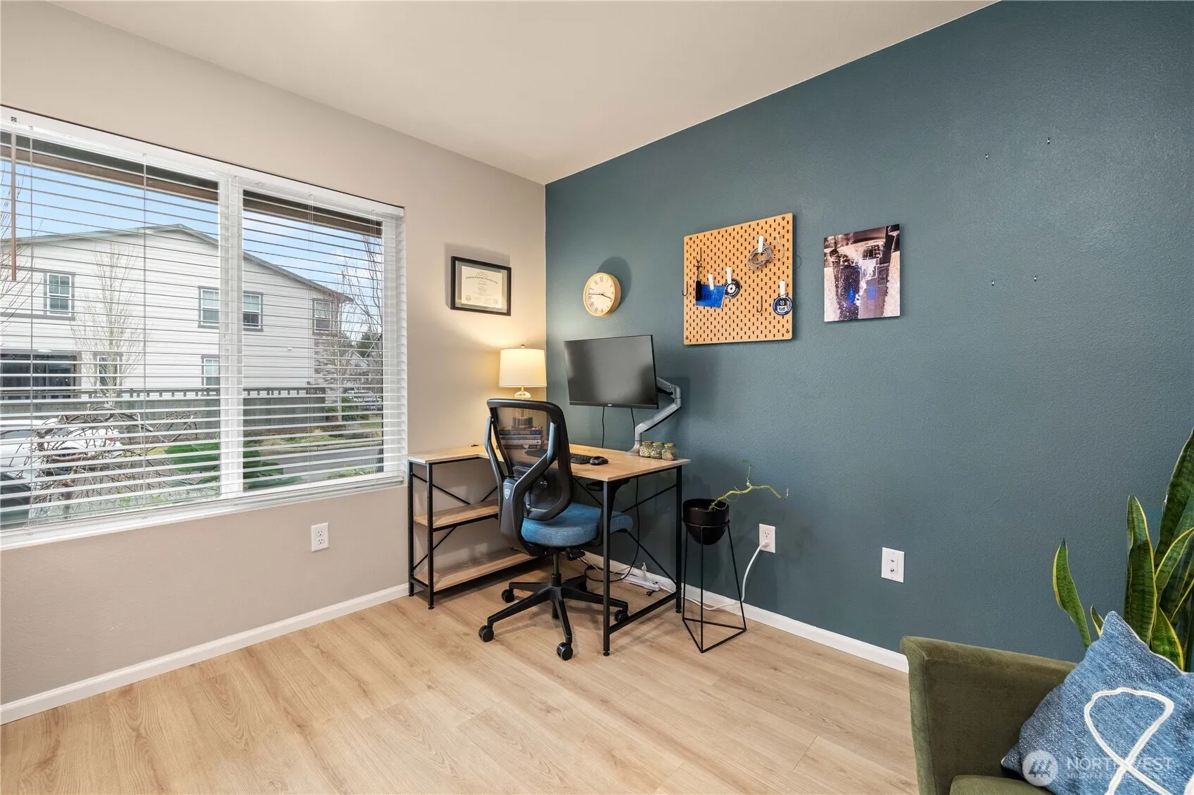 Lennar townhome resale, the perfect blend of comfort & sophistication. Lower level entry warmly welcomes you w/a versatile space ideal for WFH or as an additional living area, catering to modern lifestyle needs. Head up the stairs to the kitchen that radiates elegance, boasting quartz countertops, a generously sized walk-in pantry, & stainless steel appliances that all convey. The kitchen seamlessly transitions into a spacious living room w/access to private balcony with Mount Rainier views! On the upper level find two large bedrooms including primary suite complemented by a convenient utility room for practical living. Community amenities abound, including a sport court, dog park, park, & scenic trails! Bonus, 2 Car garage! Pre Inspected.