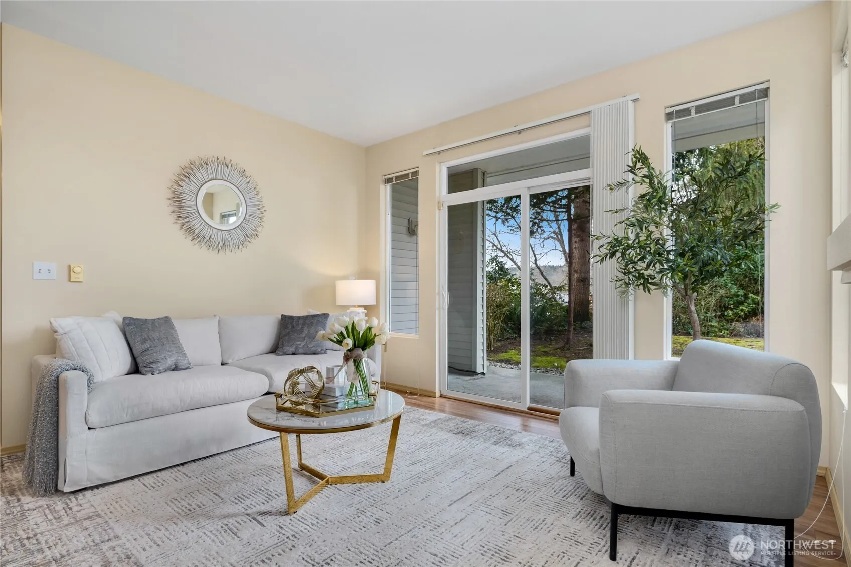 Clean! Clean! Clean! Beautiful Lg SINGLE LEVEL condo with 3 bedrooms (or 2+office), 2 baths, OVERSIZED single garage (approx 12’x20′). High 9′ ceilings and lots of windows for light open ambiance. Light neutral colors, recent paint, new carpet. Spacious living room w/gas fireplace & sliders off to patio & territorial views of Snoqualmie Valley & foothills across the valley. Stable HOA w/reasonable dues that include sewer & water. A great value!! Spacious kitchen w/breakfast bar. Adj dining rm. Roomy primary bedroom w/HUGE walk-in closet, & sliders off to private covered patio. No rental cap, majority of units are owner occupied. Pets allowed subject to CC&R’s. Close to town & services. Riverview schools.
