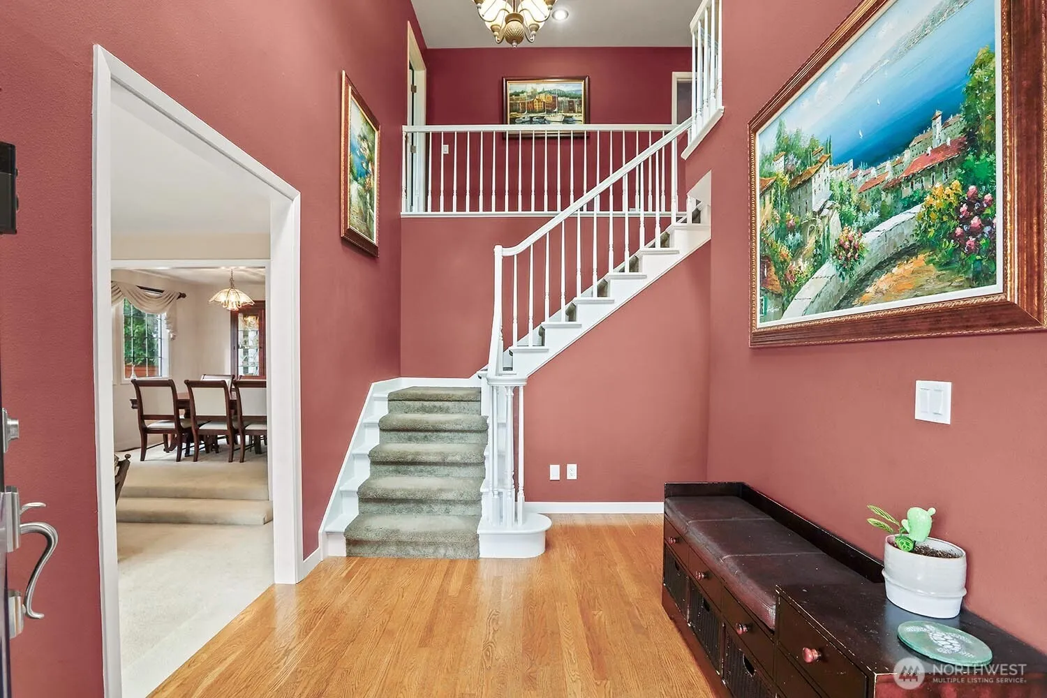 Charming & spacious Mukilteo home w/ lovely Puget Sound, mountain & territorial views on a quiet dead-end street! Inside is a light & bright floor plan boasting a grand entry w/ soaring ceilings, oak hardwoods throughout, & designer kitchen boasting updated appliances, breakfast bar & quartz countertops. Enjoy 2 versatile living spaces, formal & informal dining options, a cozy gas fireplace & wall of windows w/ wooded views. Head upstairs to 4 generous bedrooms, including the relaxing primary suite w/ private deck, beautifully-updated full bath, walk-in closet & work out area. Entertain year-round on the expansive partially-covered deck & private backyard. 2-car garage & convenient location near local parks, Mukilteo schools, & Paine Field.