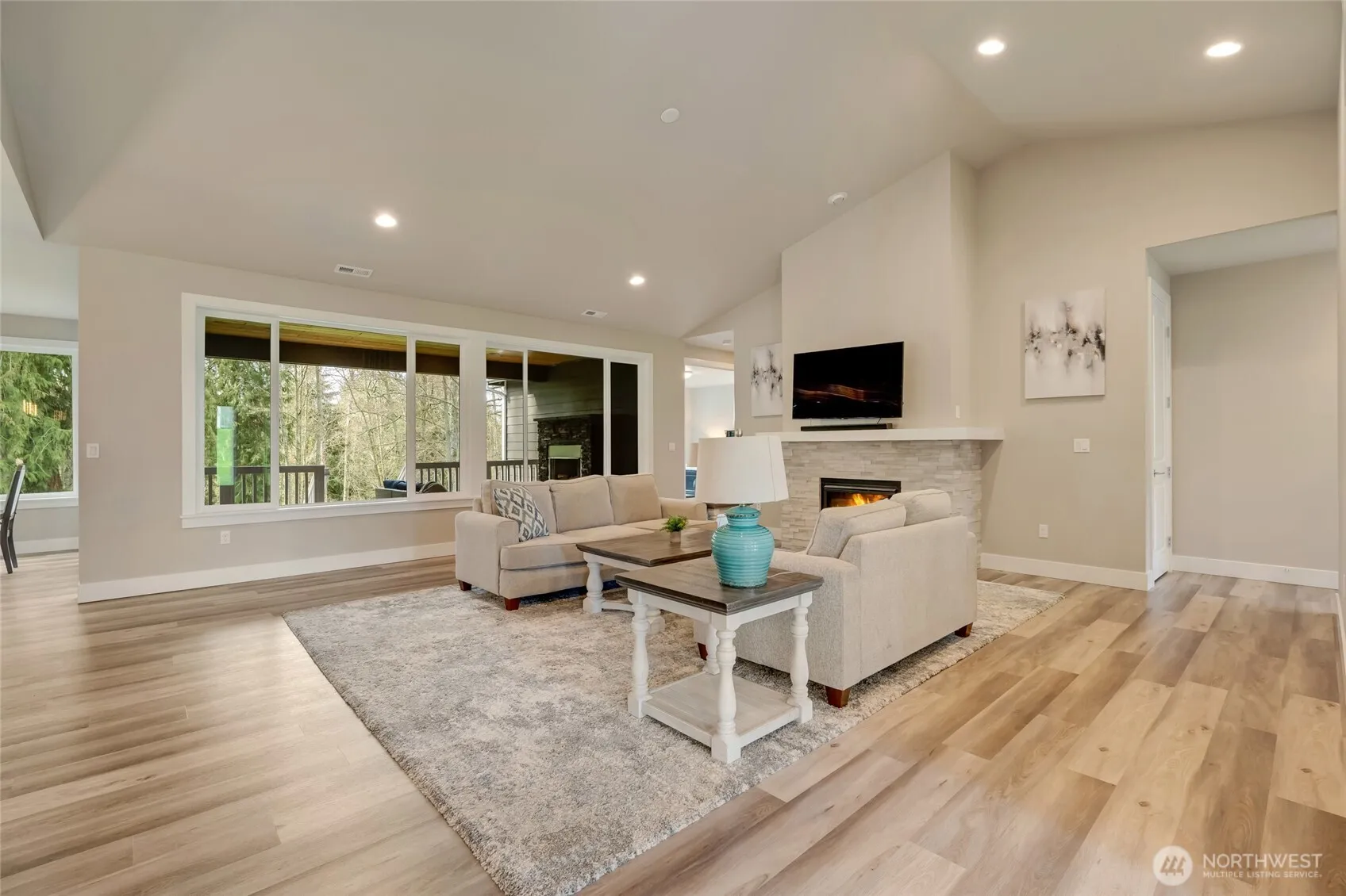 Stunning one-level home in an exclusive gated community of just nine other homes. Step inside to a versatile floor plan—ideal for a formal living & dining room or a relaxed sitting area & home office. The open-concept design showcases a chef’s island kitchen w/quartz counters, stainless appliances, a butler’s pantry, & a walk-in pantry. The vaulted living room w/fireplace invites relaxation. The primary suite is a private oasis w/space for king-sized furniture & a sitting area, while the spa-like 5-piece ensuite boasts a huge walk-in shower & closet. Additional bedrooms are spacious & well-appointed. Enjoy year-round outdoor living on the covered deck w/fireplace, overlooking the serene, freshly landscaped one-acre lot backing to NGPA.