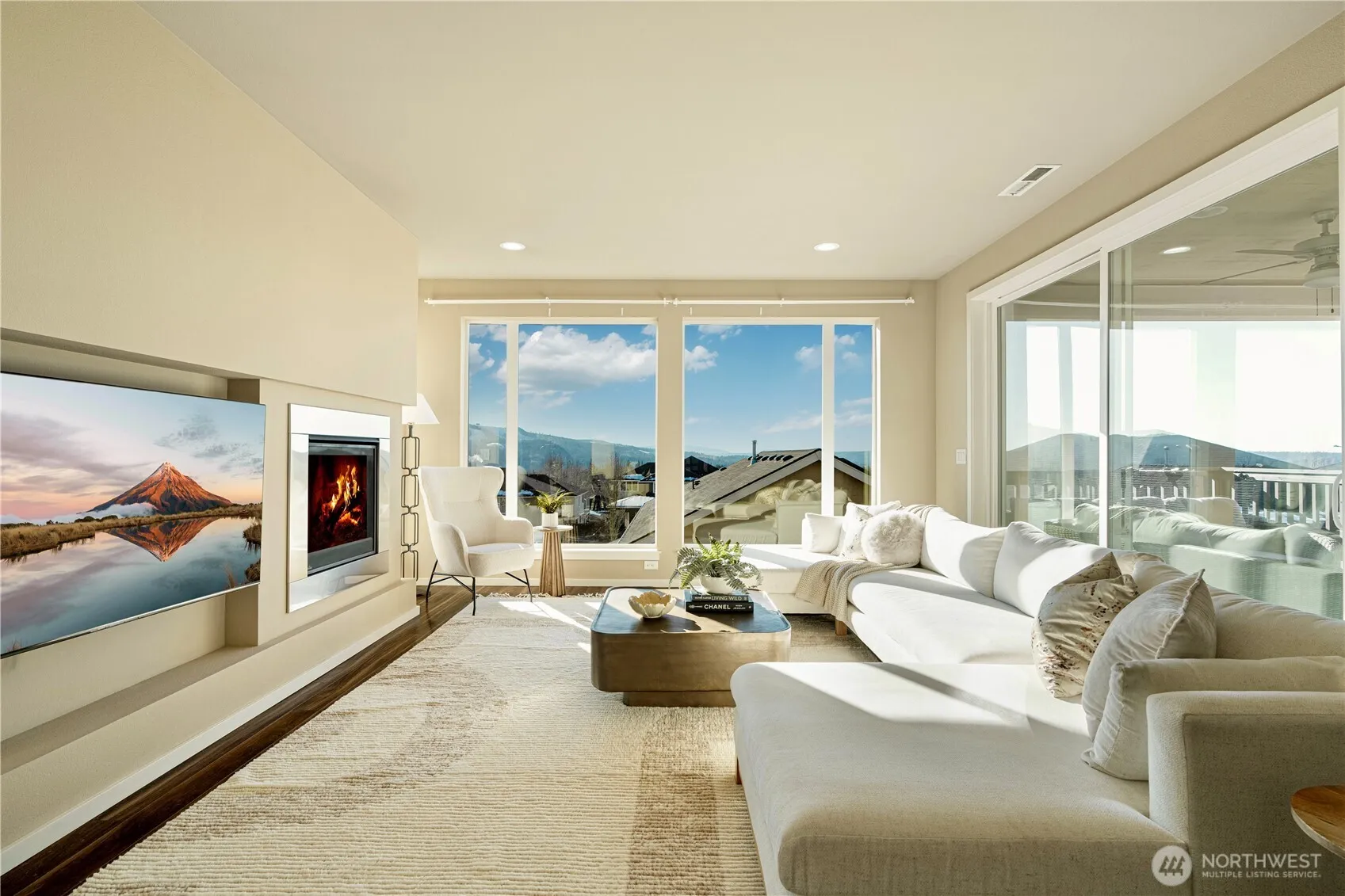 Welcome to Eaglemont, a MainVue community with scenic trails and parks. This modern home features soaring ceilings and expansive windows framing stunning western mountain views and golden sunsets. The open Great Room flows into a gourmet kitchen with gas cooking, quartz countertops, a spacious island, and an oversized pantry. Dual sliders open to a covered outdoor living area with a stacked-stone gas fireplace, perfect for year-round entertaining. Upstairs, the primary suite offers a soaking tub, a separate shower, and walk-in closets with breathtaking views. Three additional bedrooms and a versatile loft provide ample space. The main floor includes two dens/offices or bonus rooms with a separate ¾ bath.